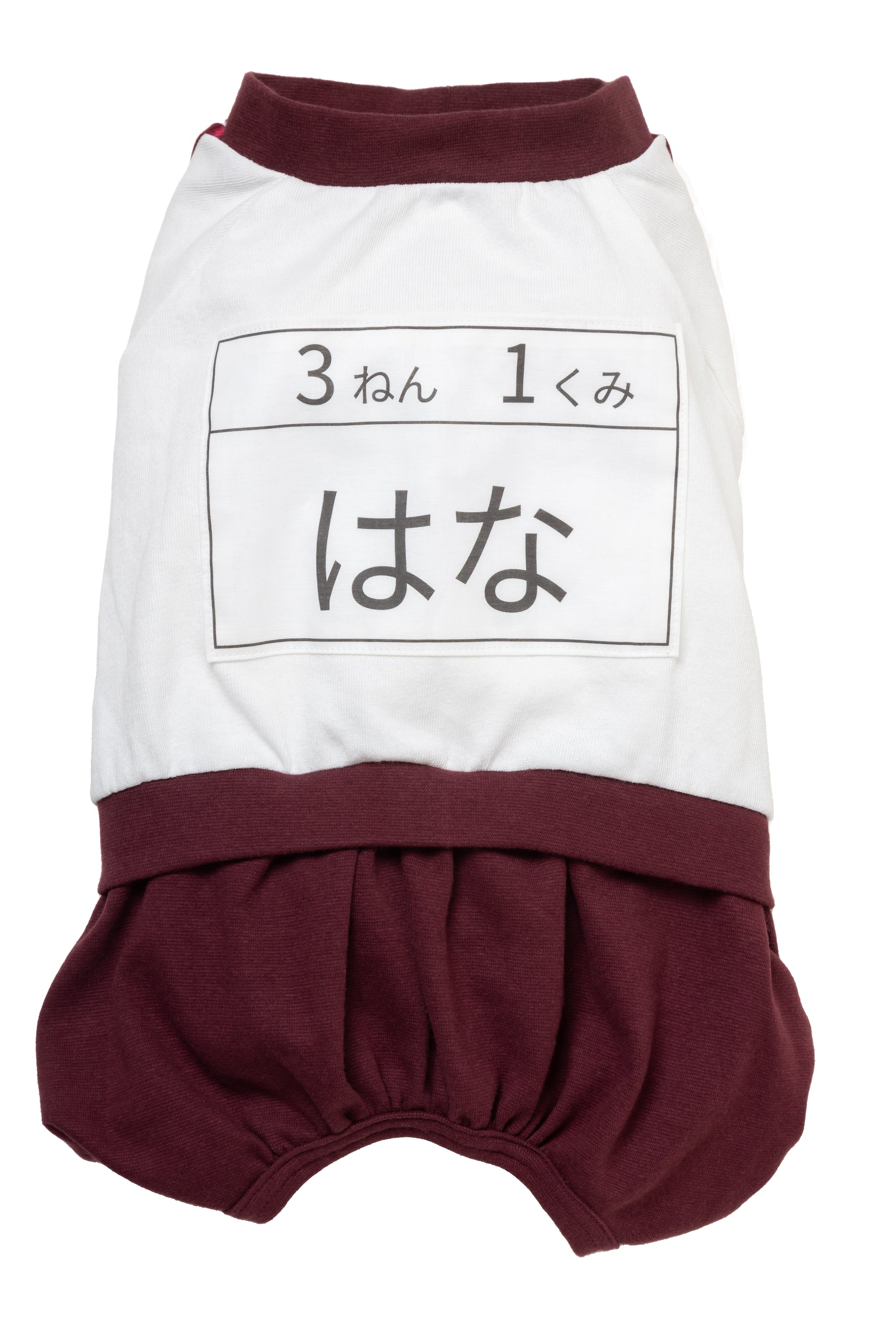 シンプルなデザインに背中のゼッケン、まるで愛する我が子を思い出させる最高にかわいい体操着。お尻のふりふりも可愛いポイント。我が子が小学校に入った時のような気持ちで、ゼッケンに