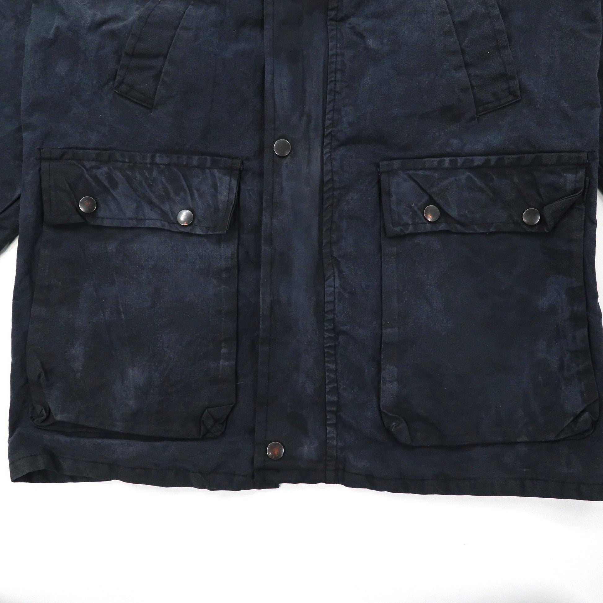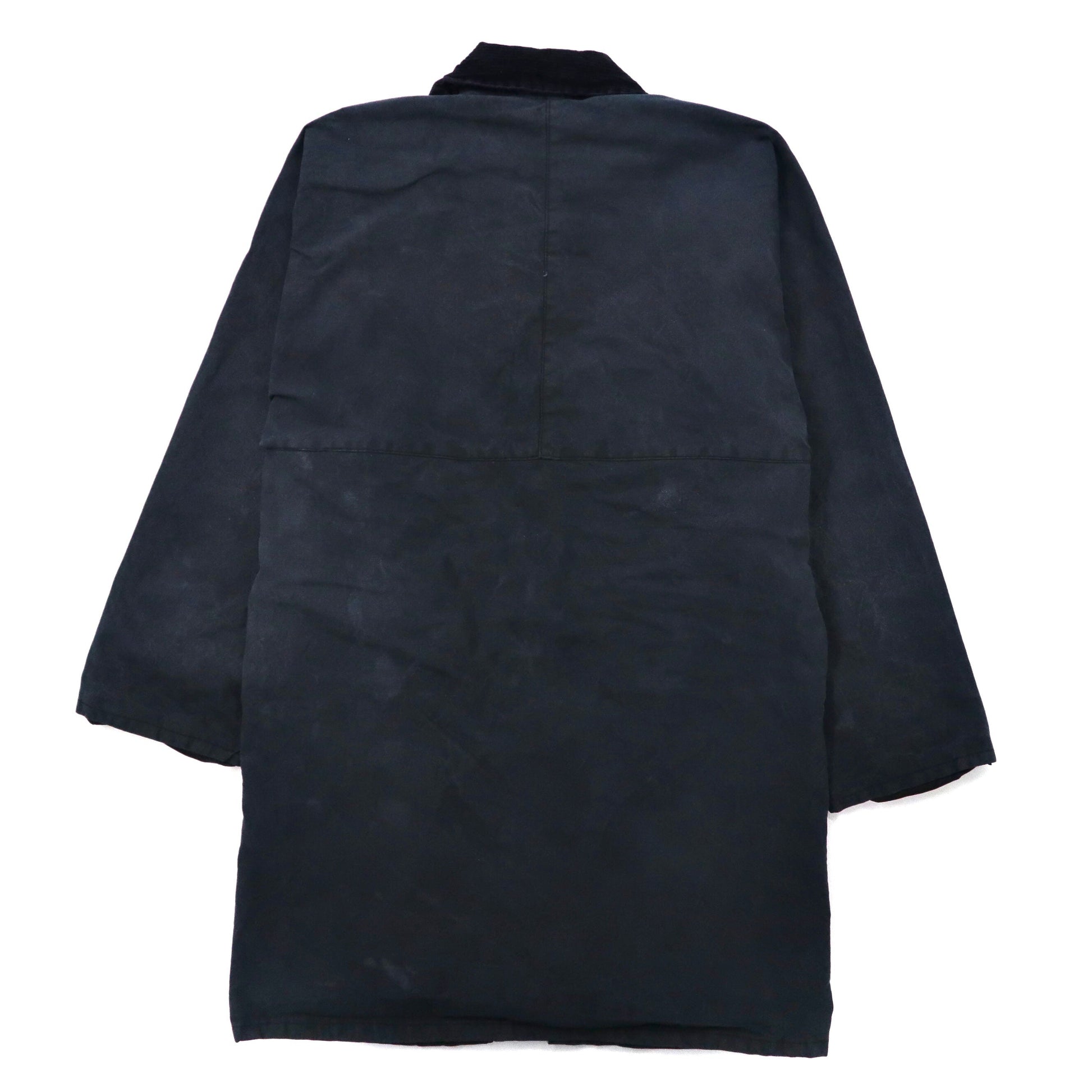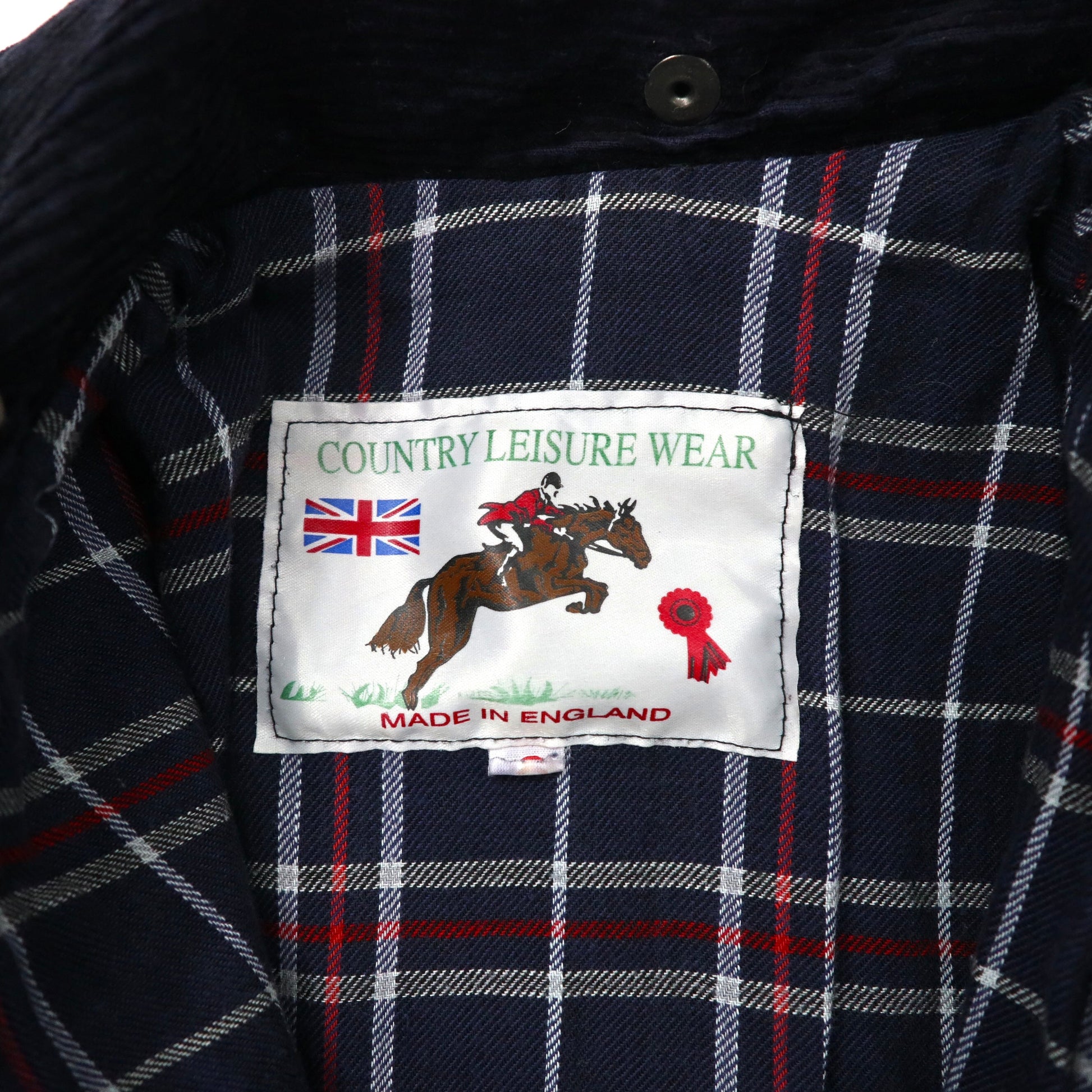 イングランド製 COUNTRY LEISURE WEAR オイルドジャケット S ネイビー コットン 裏地チェック 襟コーデュロイ