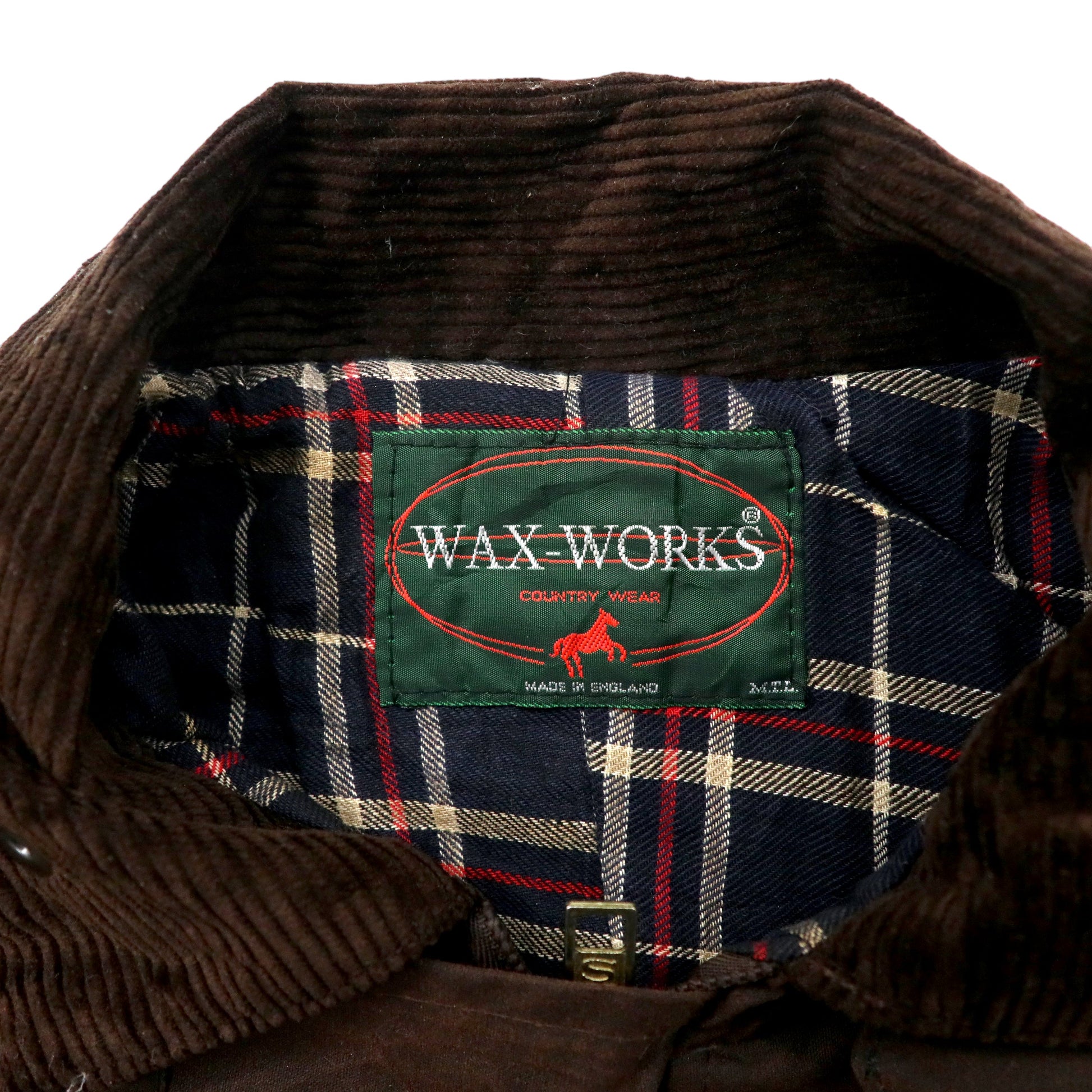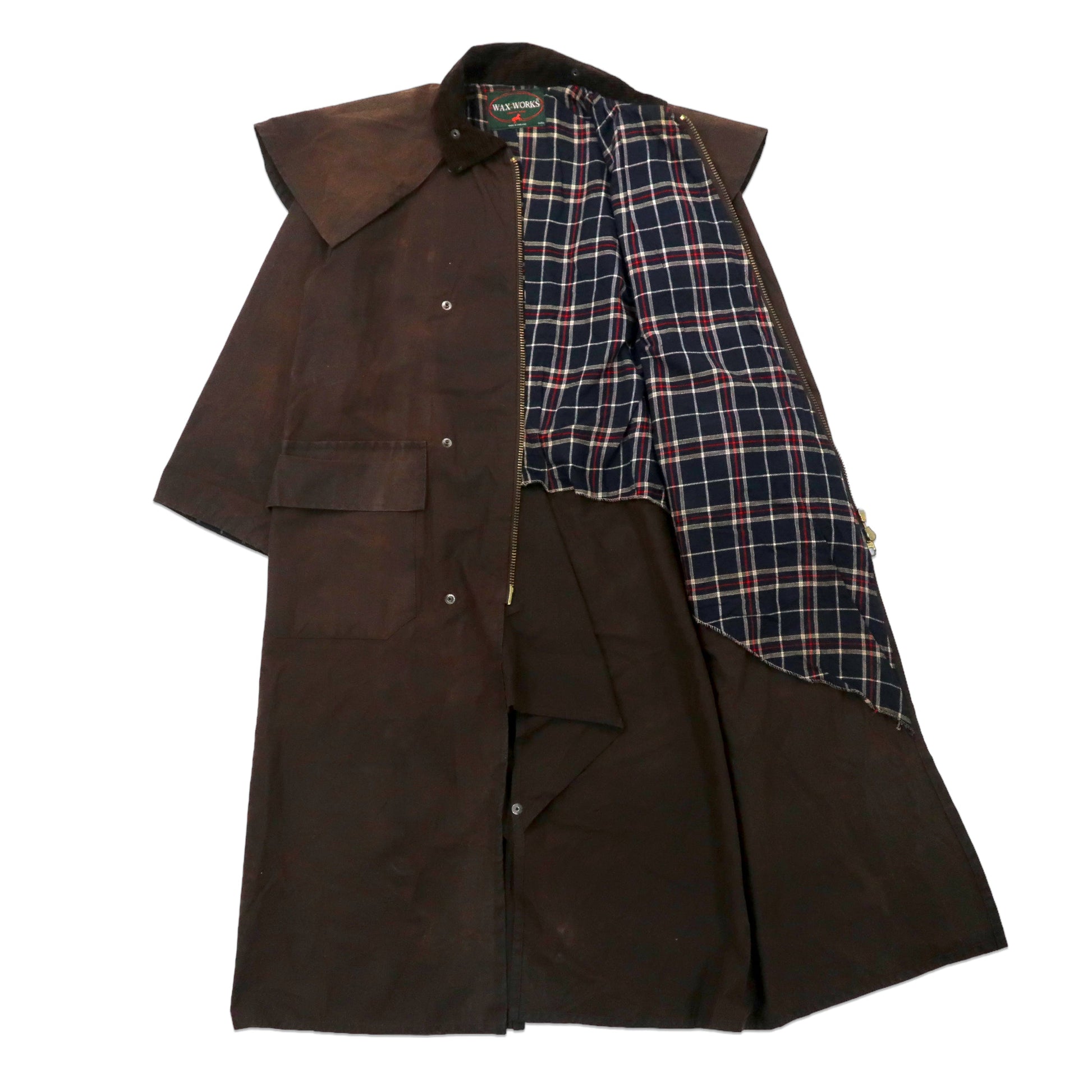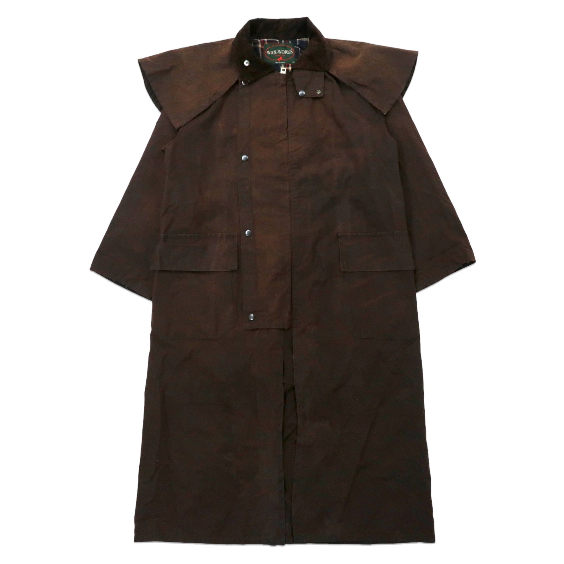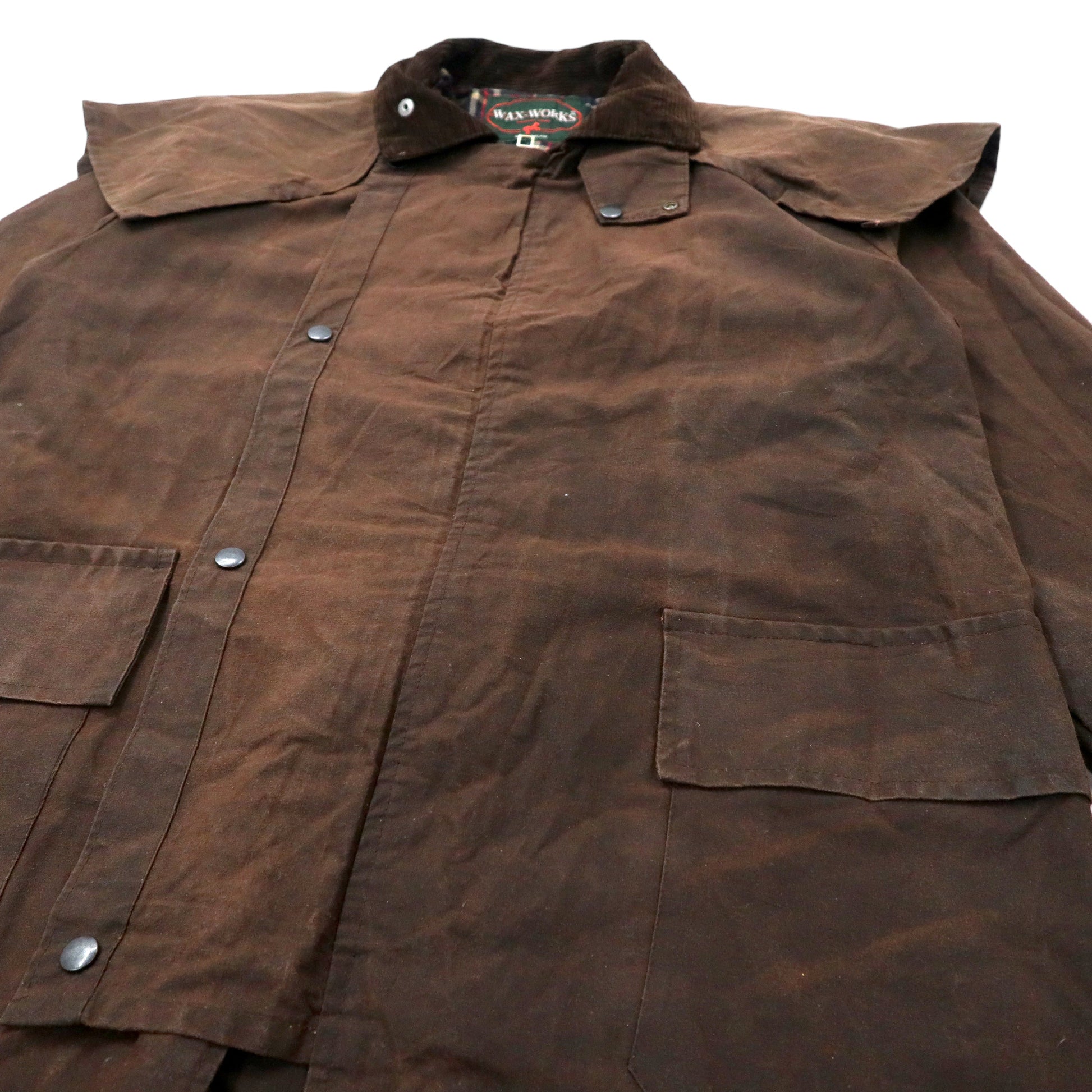 イングランド製 WAX WORKS オイルドジャケット コート L ブラウン コットン 襟コーデュロイ