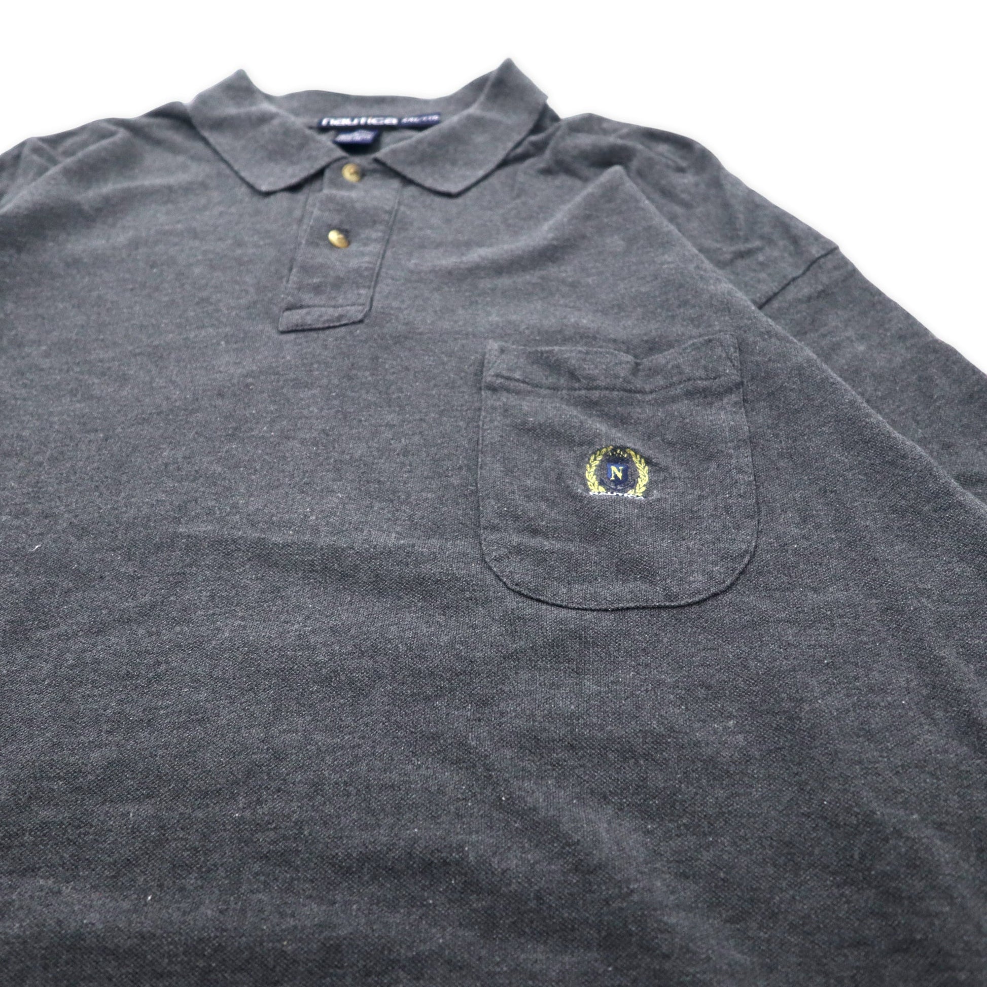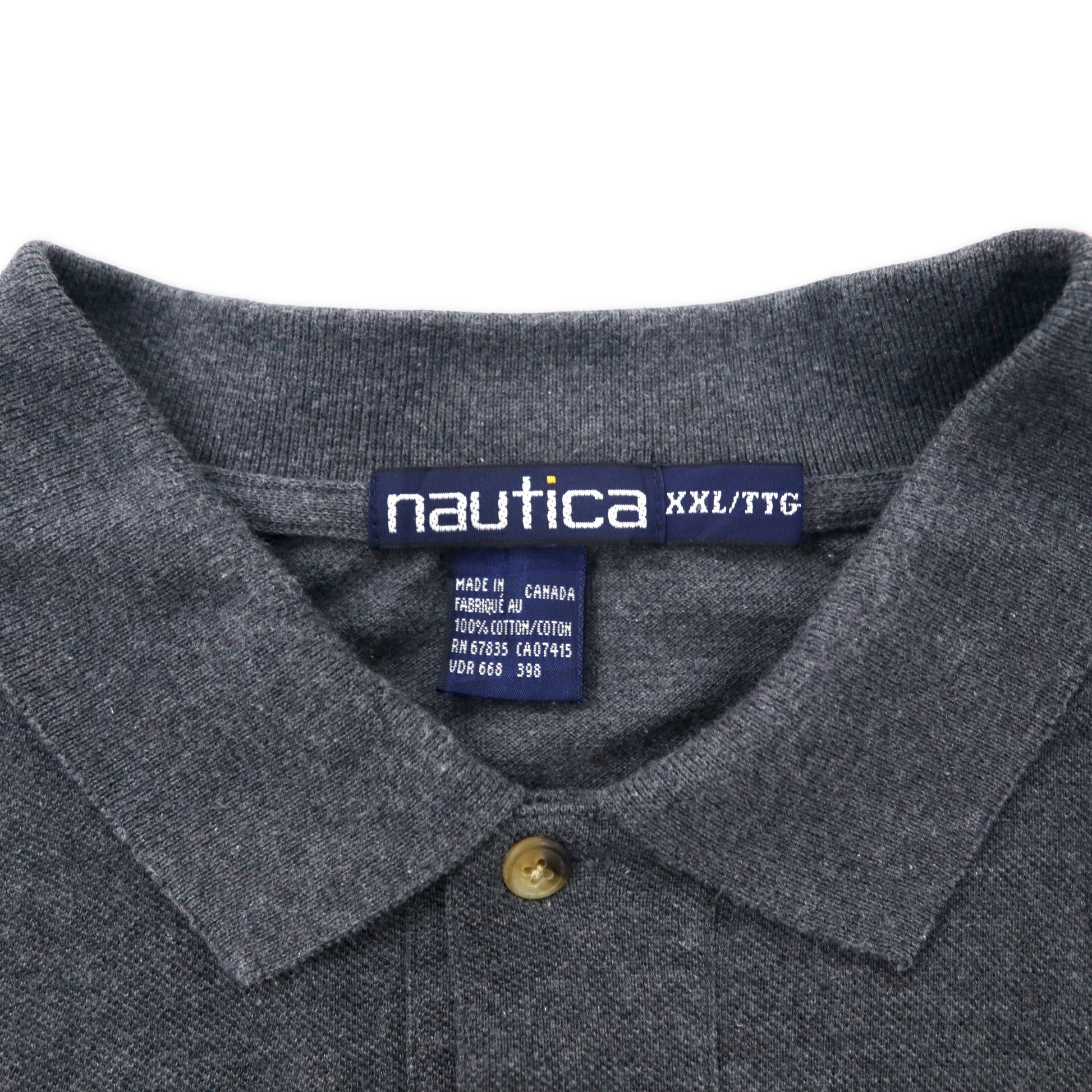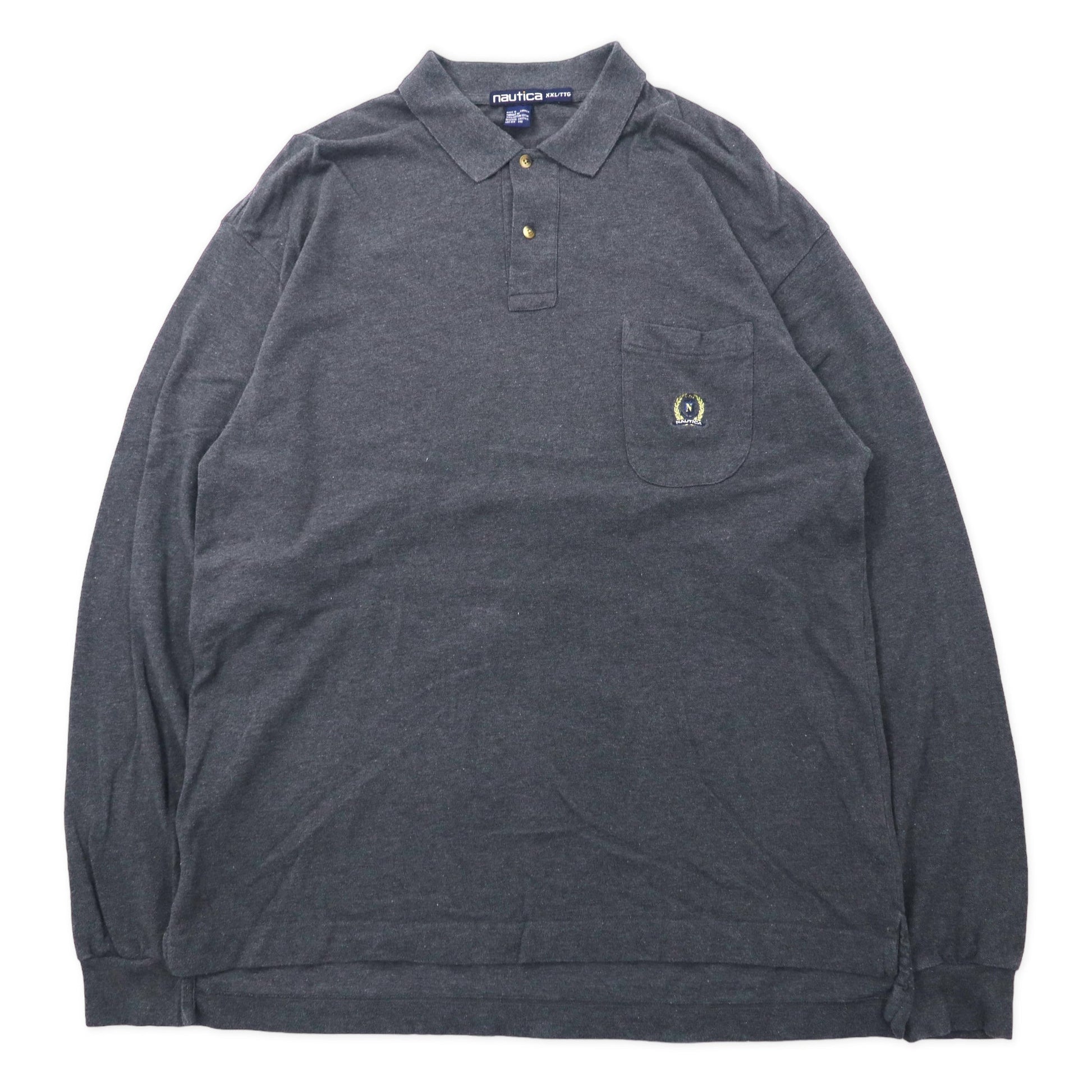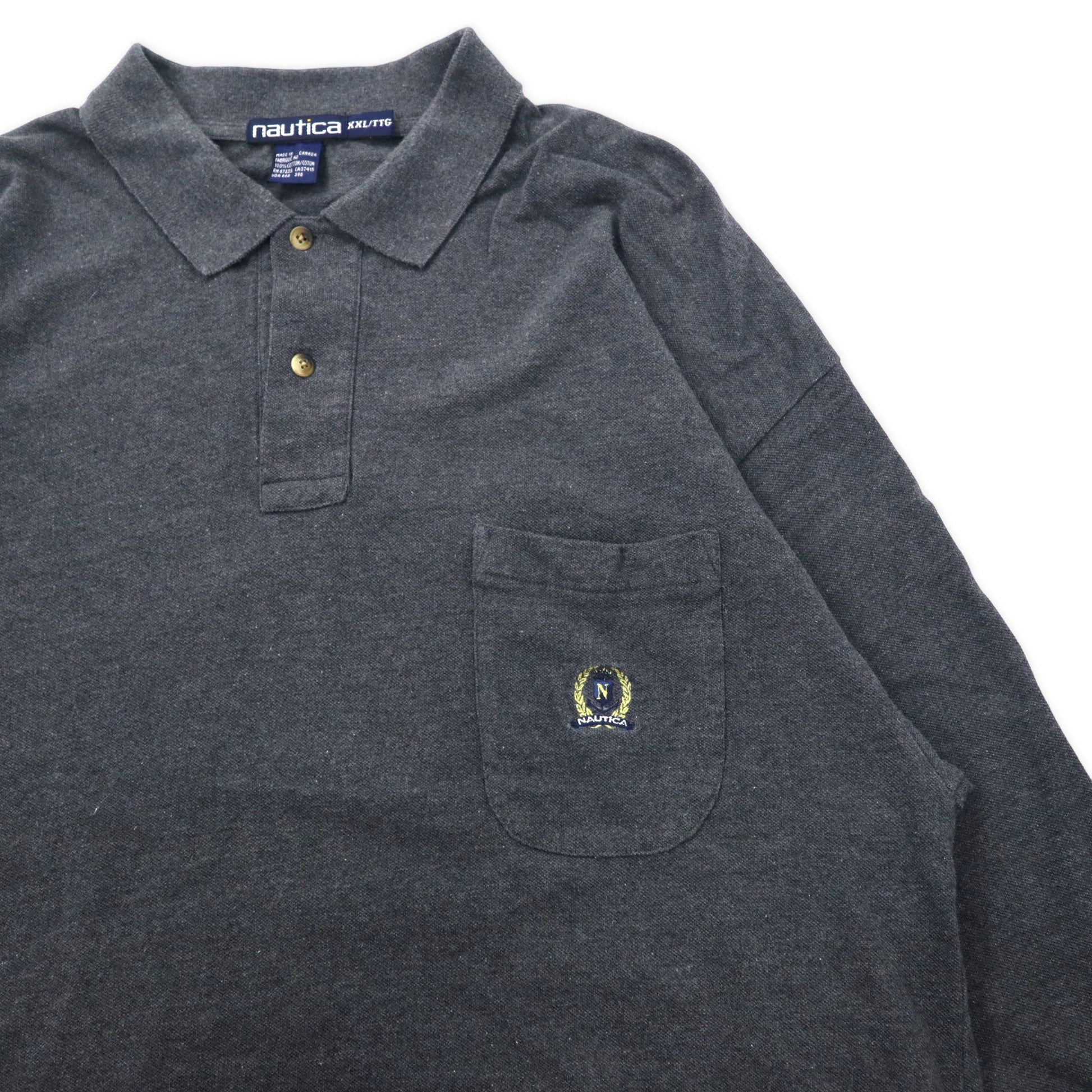 カナダ製 nautica 90年代 長袖ポロシャツ XXL グレー コットン ワンポイントロゴ刺繍 ビッグサイズ