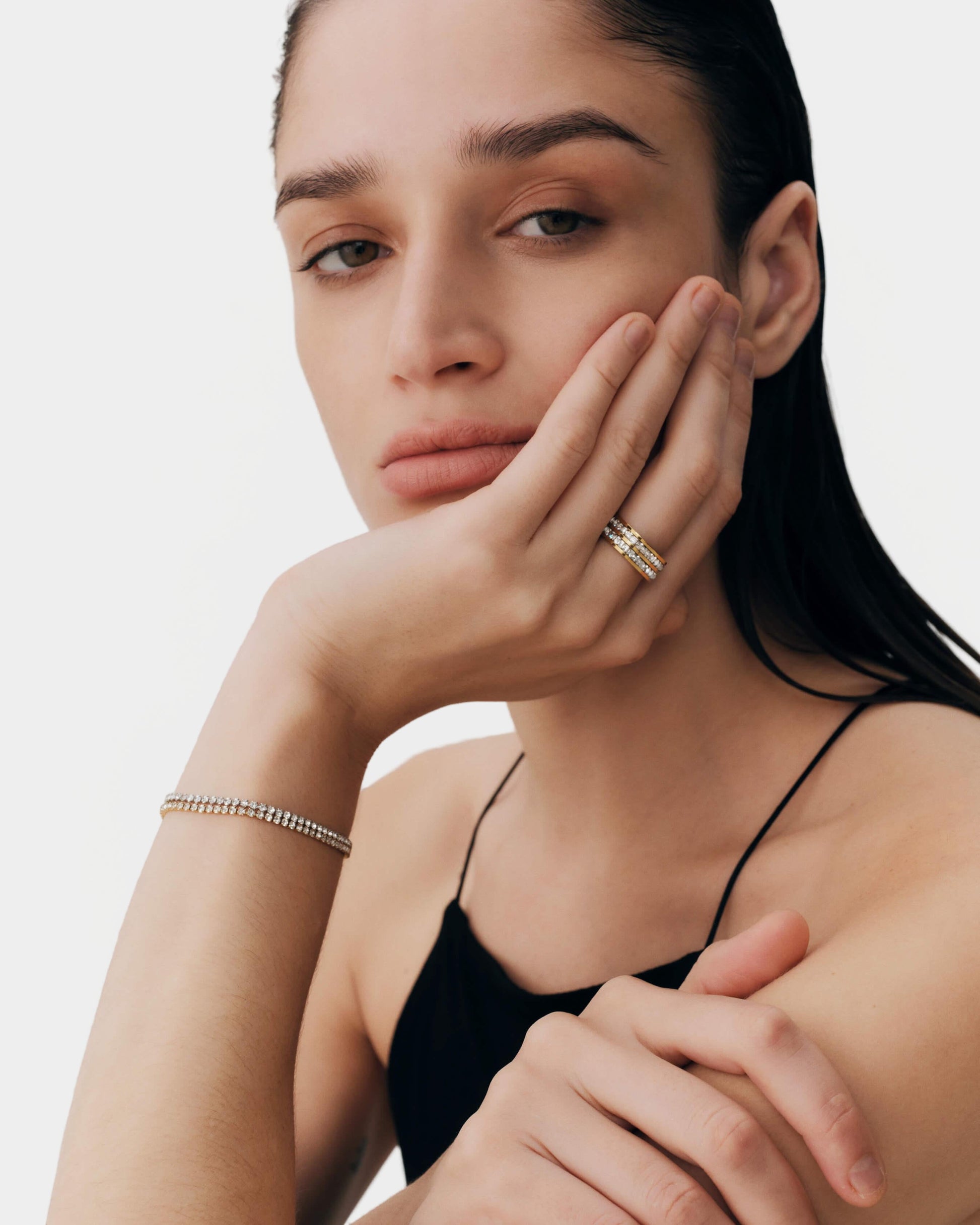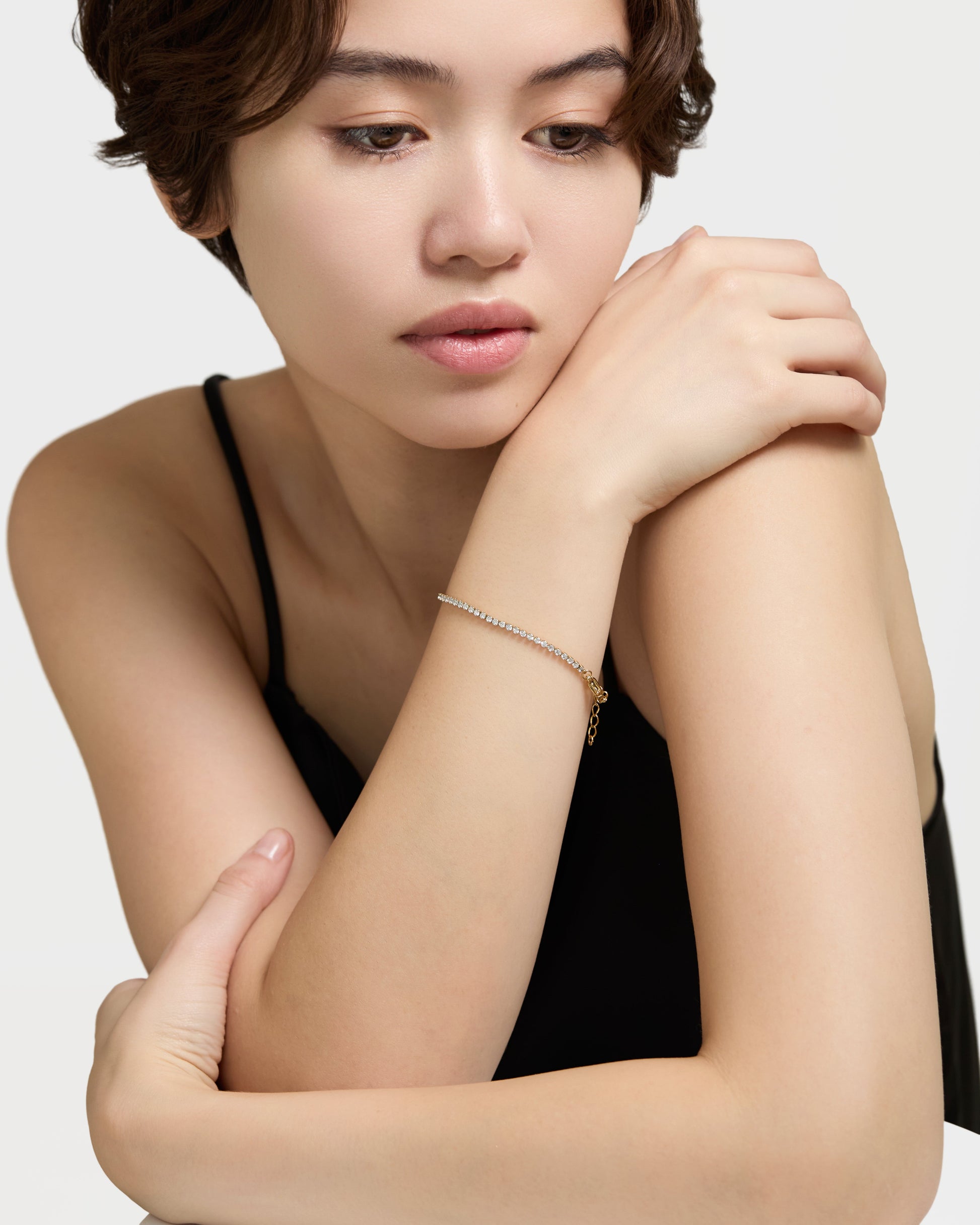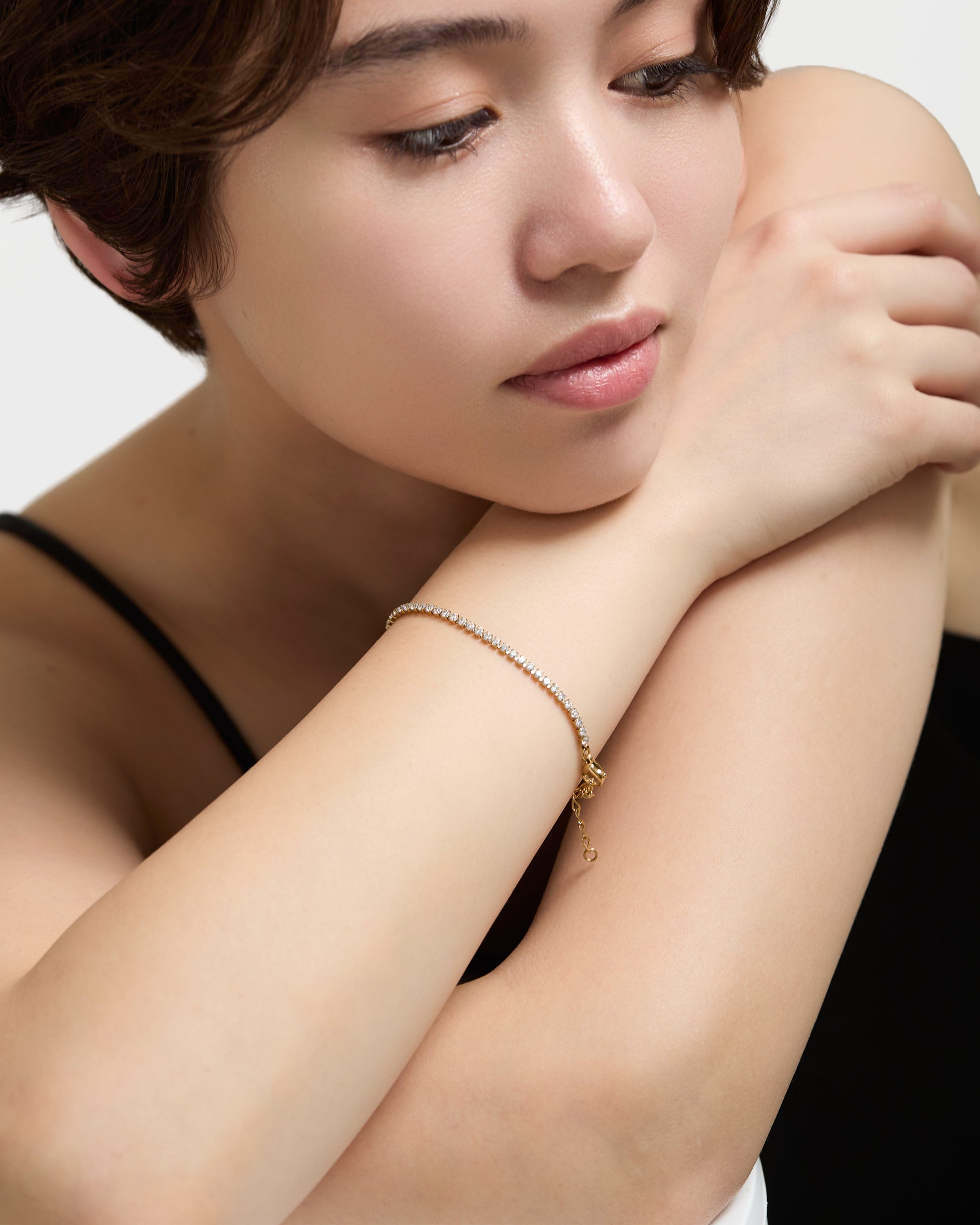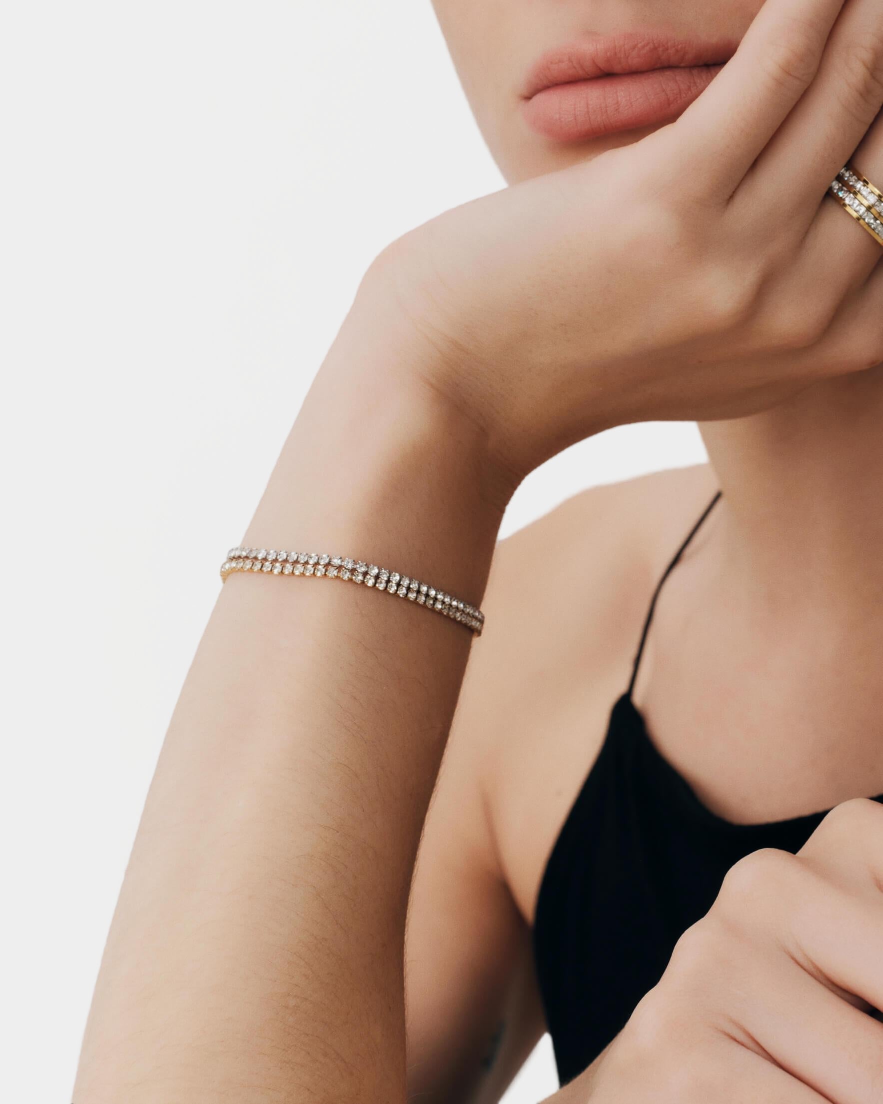 スポーティーなルーツを持つテニスブレスレットは動くたびにやわらかく光を集め、普段のコーディネートに“少しだけ華やかさ”を添えたい日にぴったり。