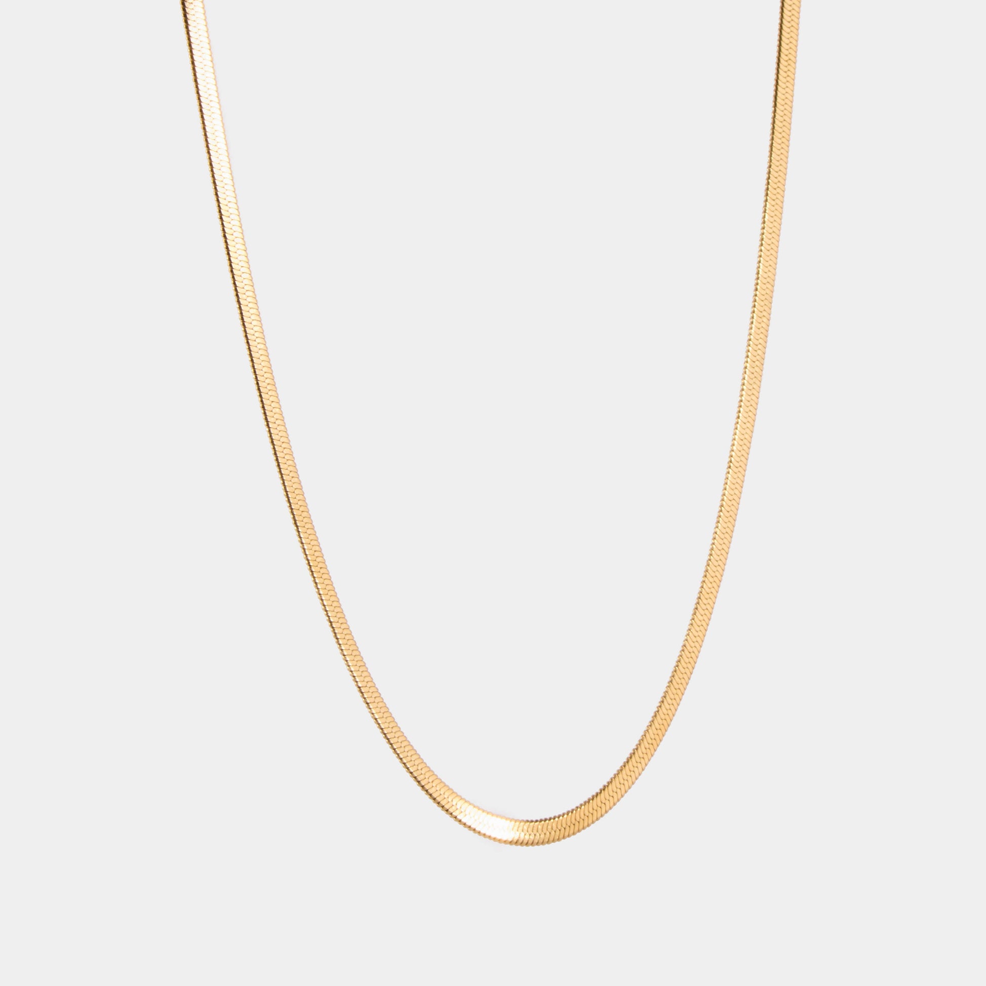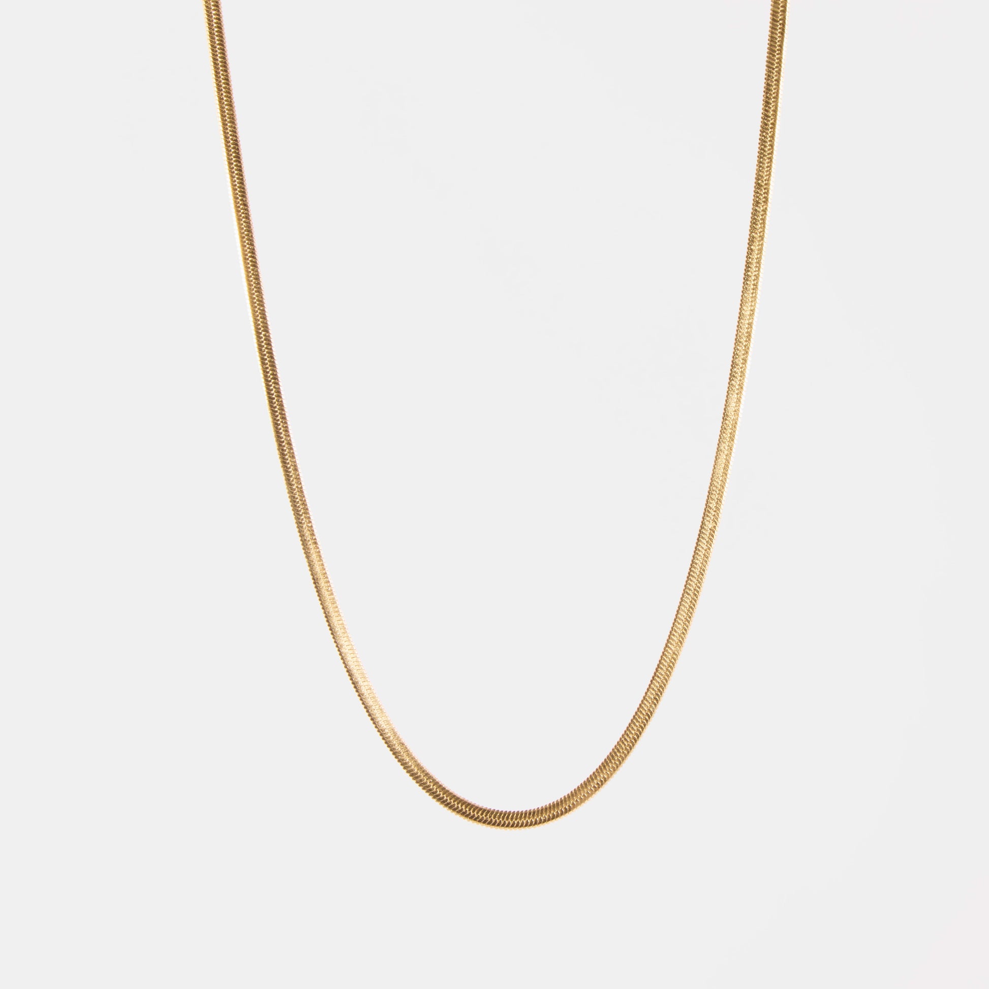 しなやかにフィットするフラットなチェーンは、肌あたりもなめらかでストレスのないつけ心地。
