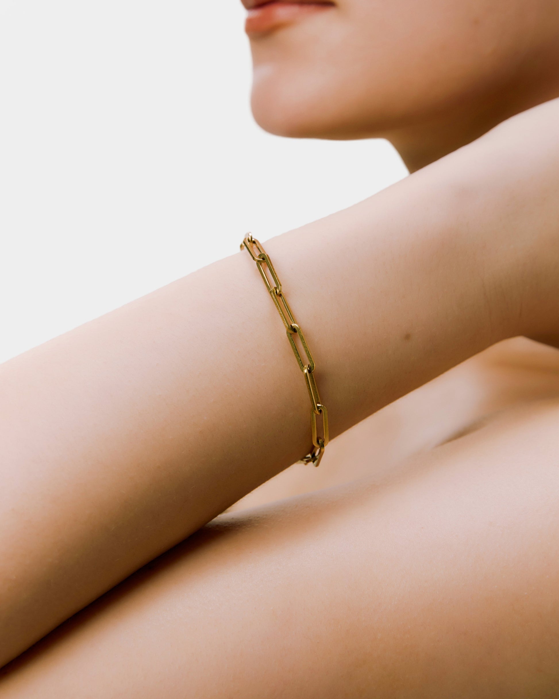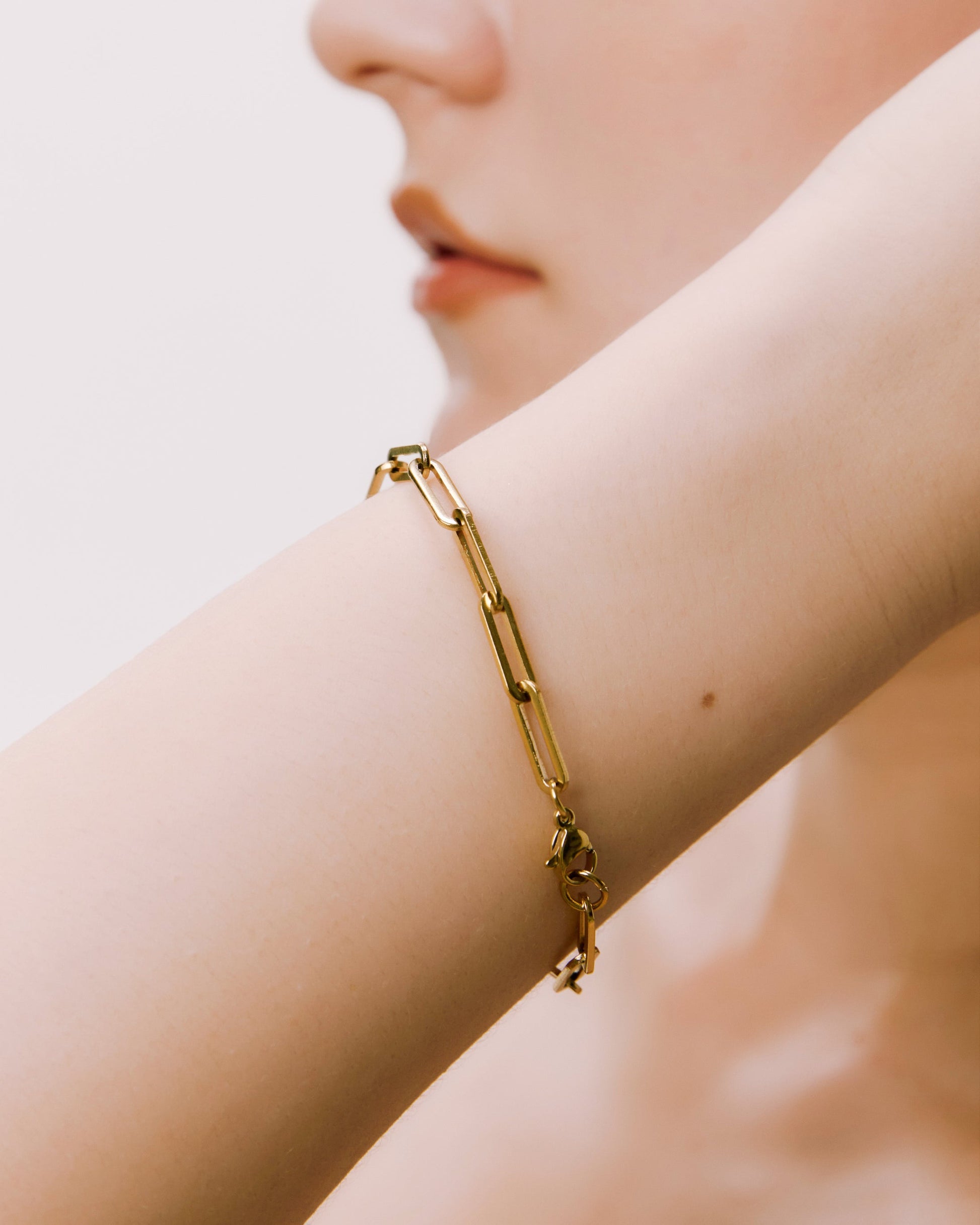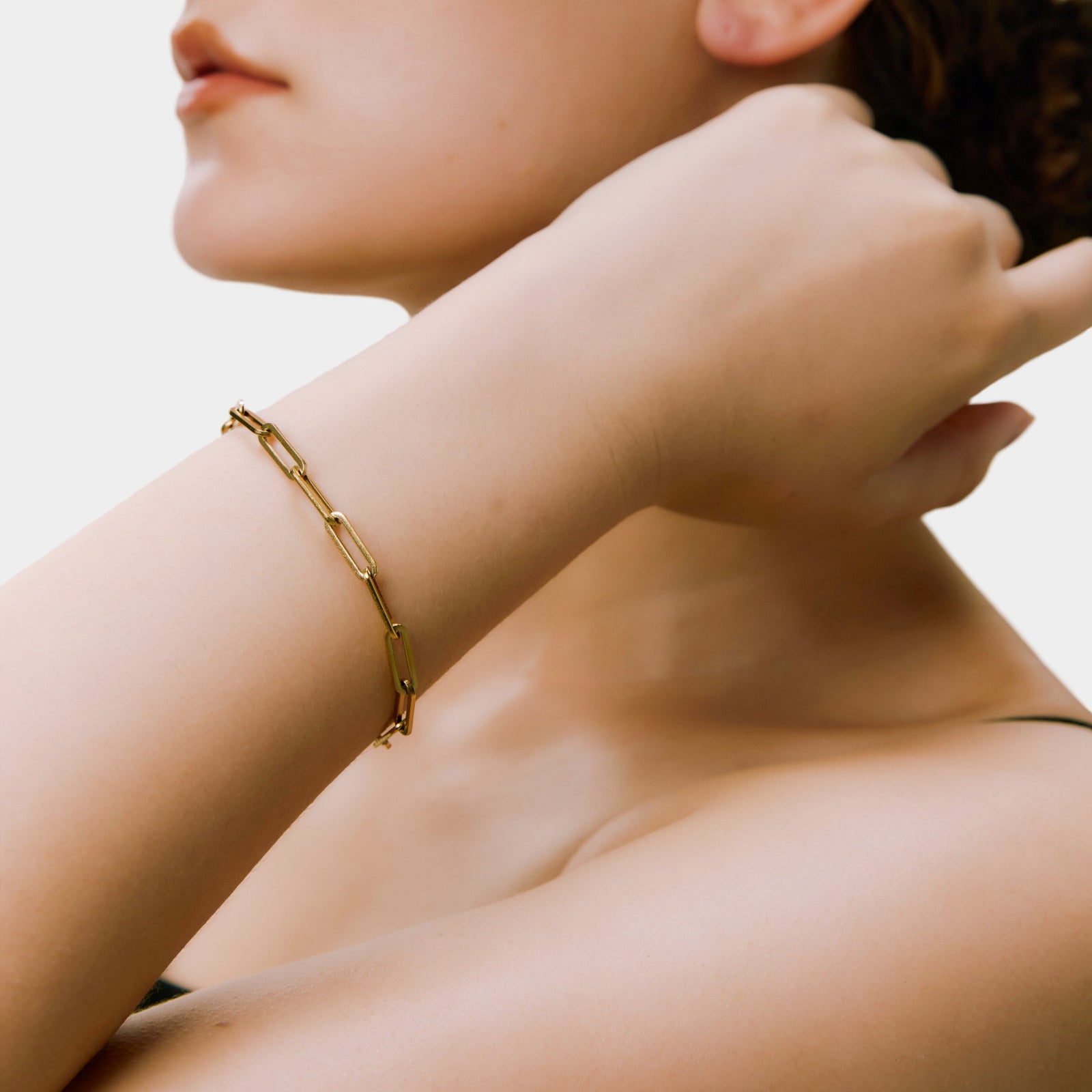 シンプルなリンクを連ねた、洗練されたデザインのペーパーチェーンのペーパーチェーンブレスレット。