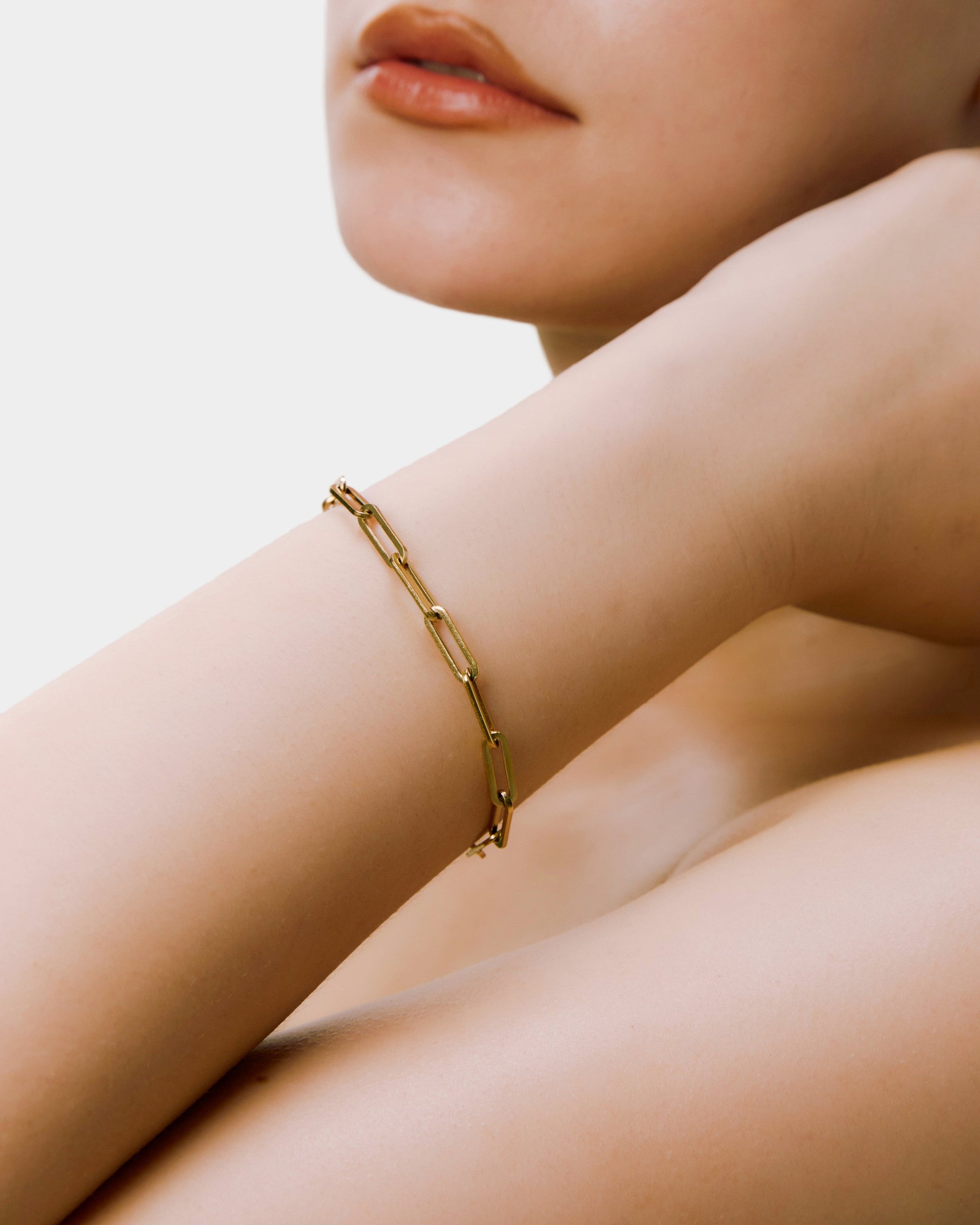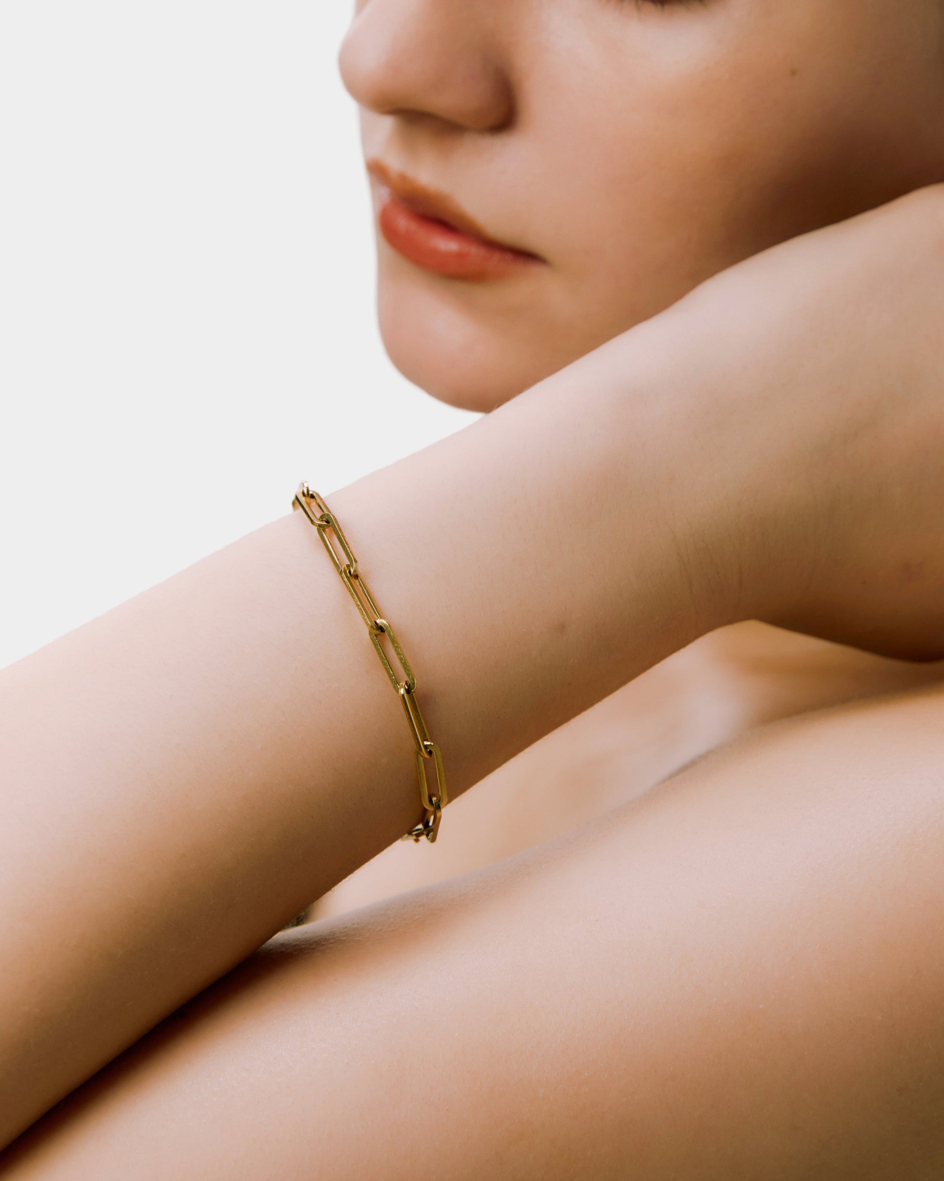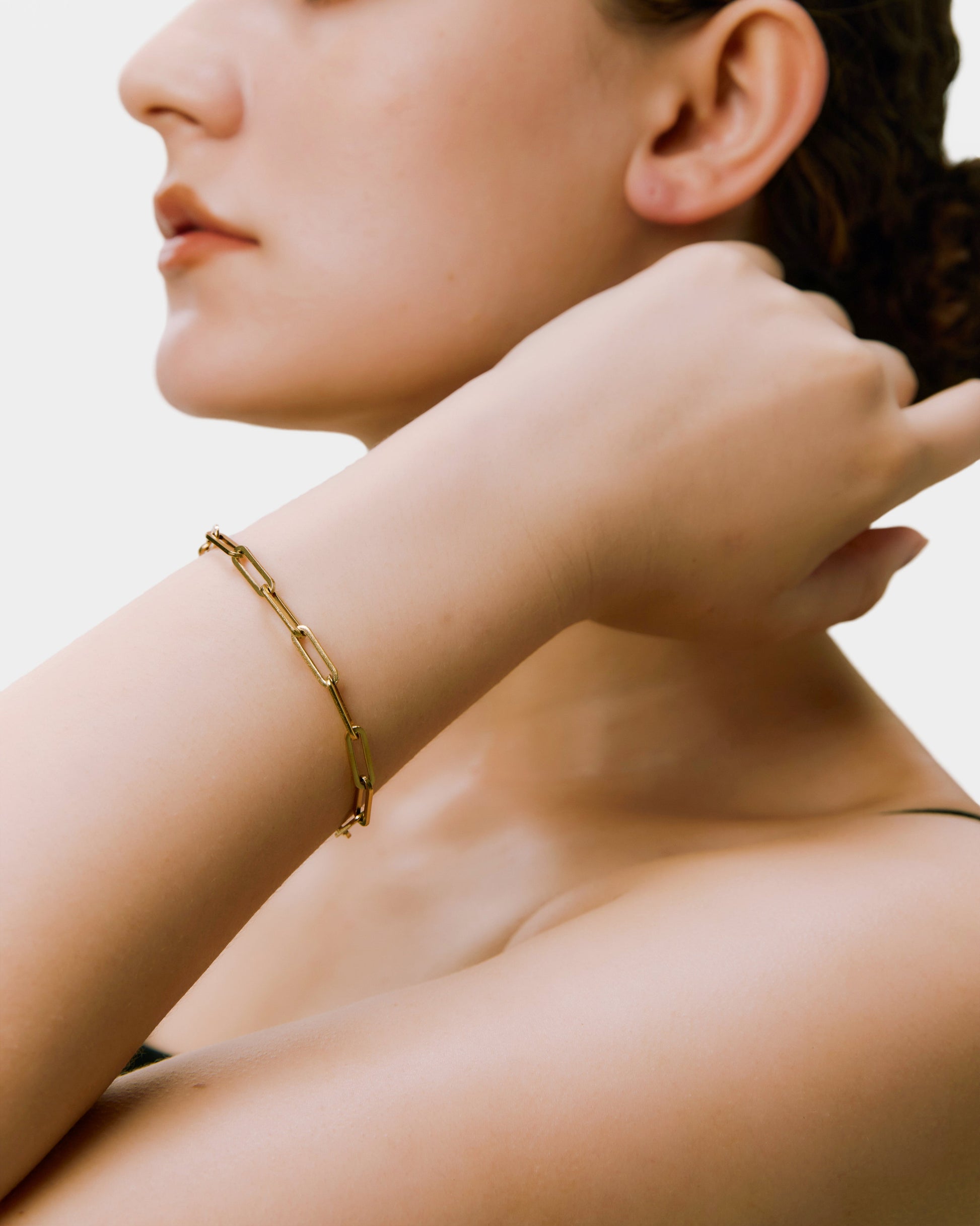 シンプルなリンクを連ねた、洗練されたデザインのペーパーチェーンのペーパーチェーンブレスレット。