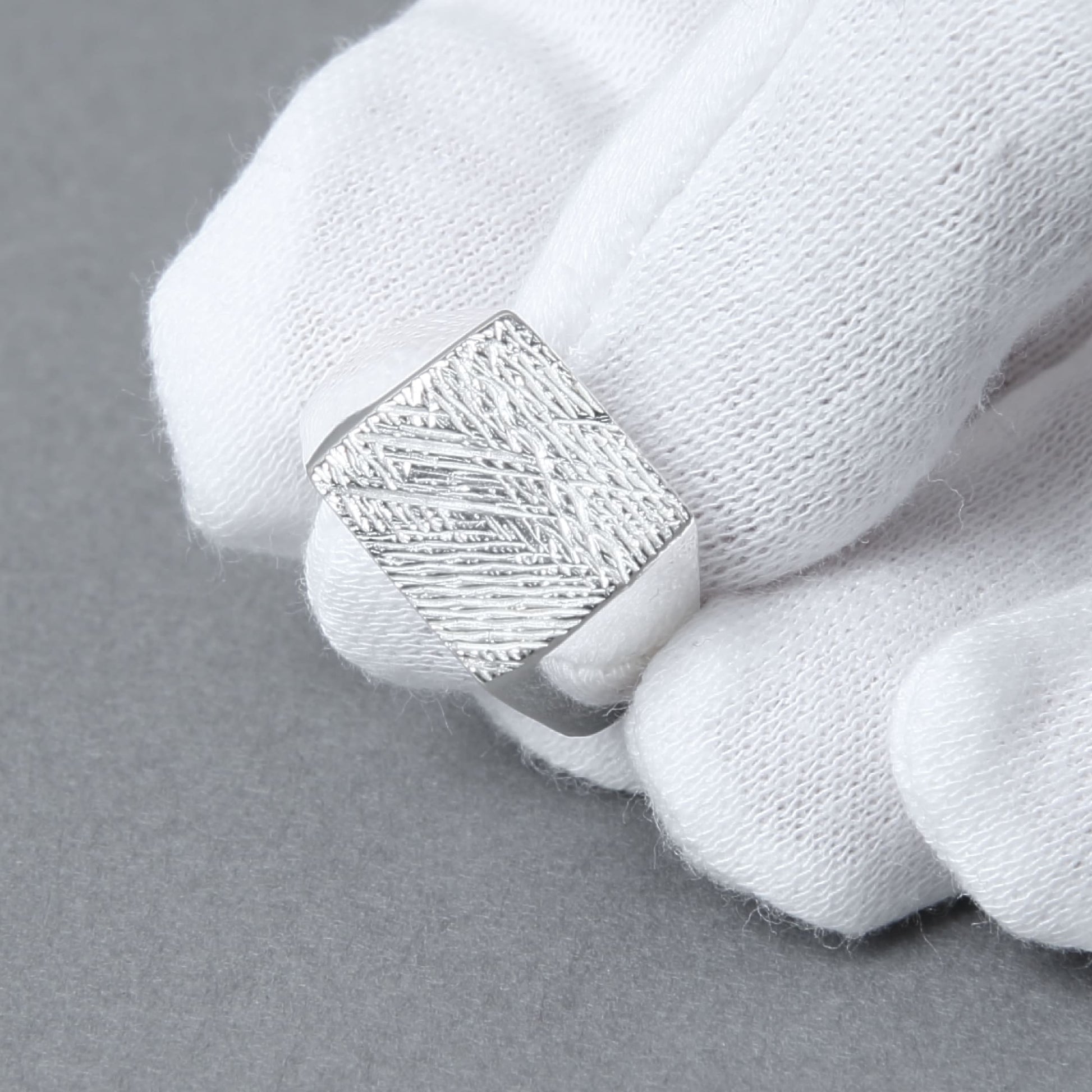 トップに木目をイメージした無数の傷のようなデザインを加えることで、時間が経つにつれ溝部分にのみ硫化によって起こる黒色の変色が残るようになります。