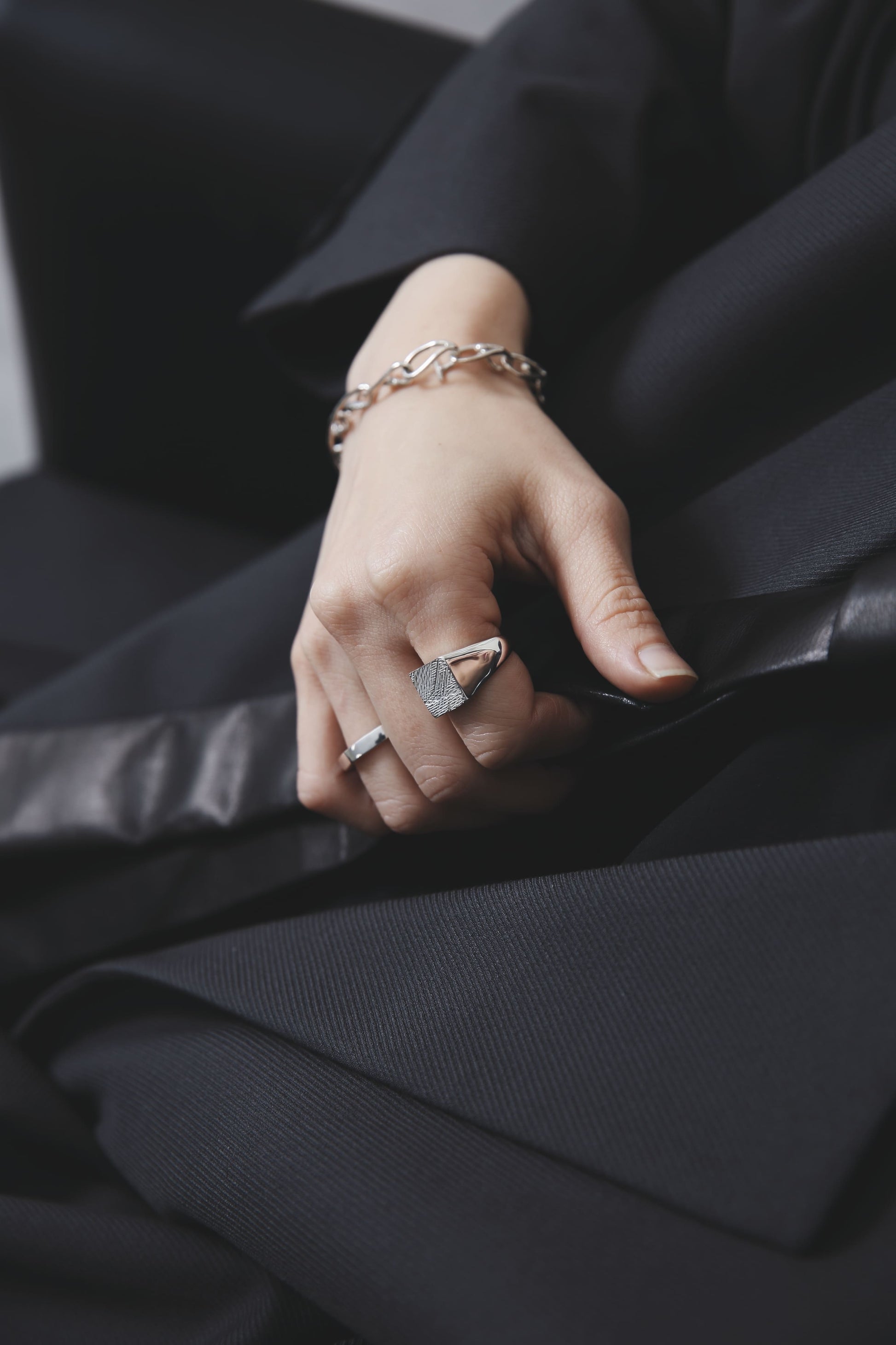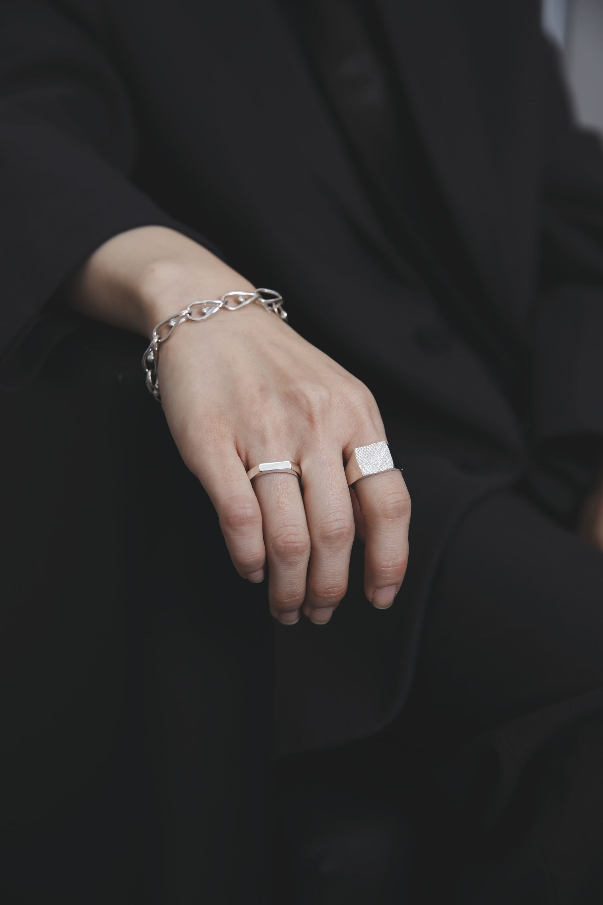 スターリングシルバー独特の重みや滑らかな手触りをお楽しみいただけるよう、裏抜きはせずしっかりと重量感を出しました。