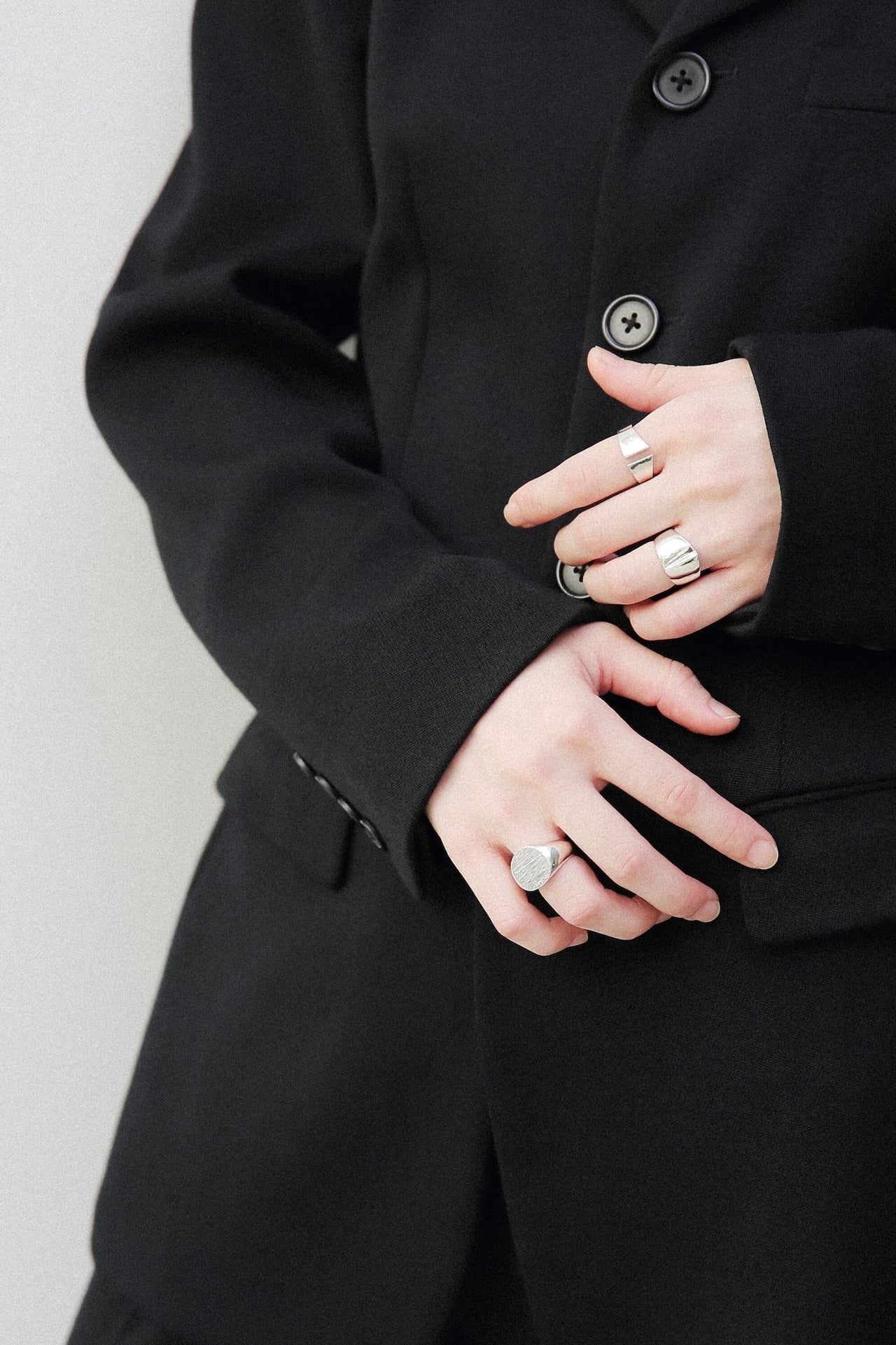 スターリングシルバー独特の重みや滑らかな手触りをお楽しみいただけるよう、裏抜きはせずしっかりと重量感を出しました。