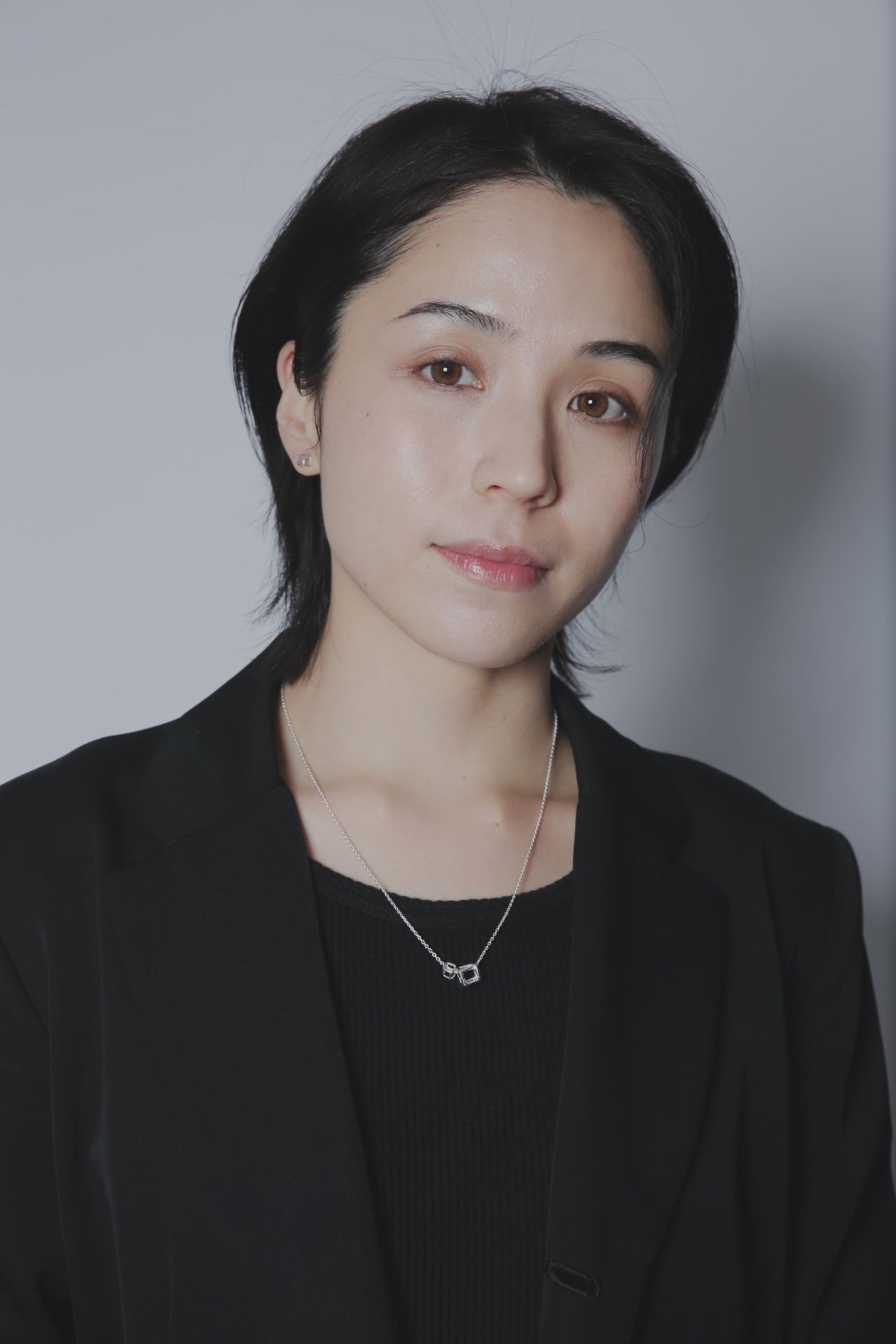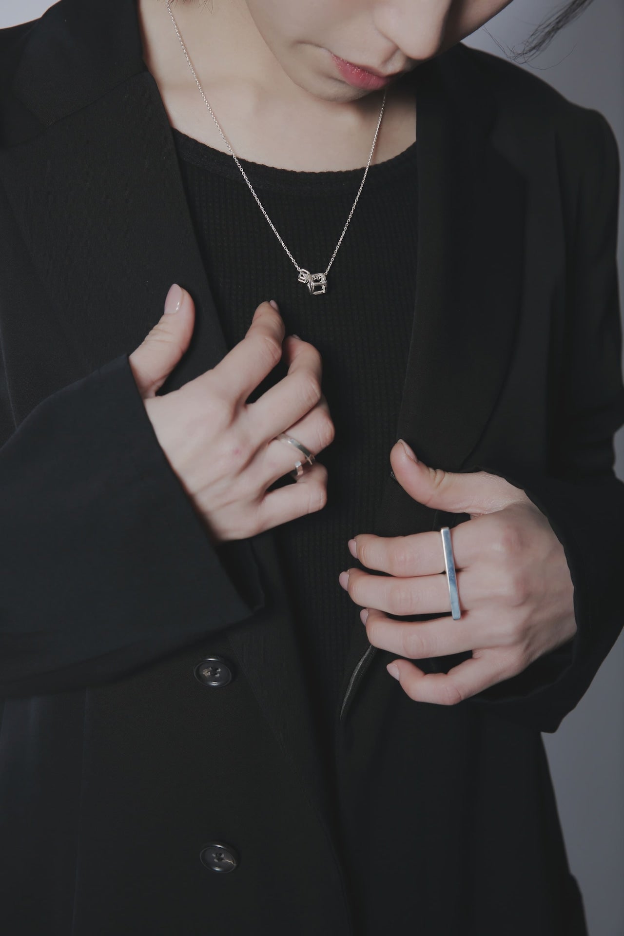 ころんと綺麗に輝く立方体が首元で転がって視線を集めます。