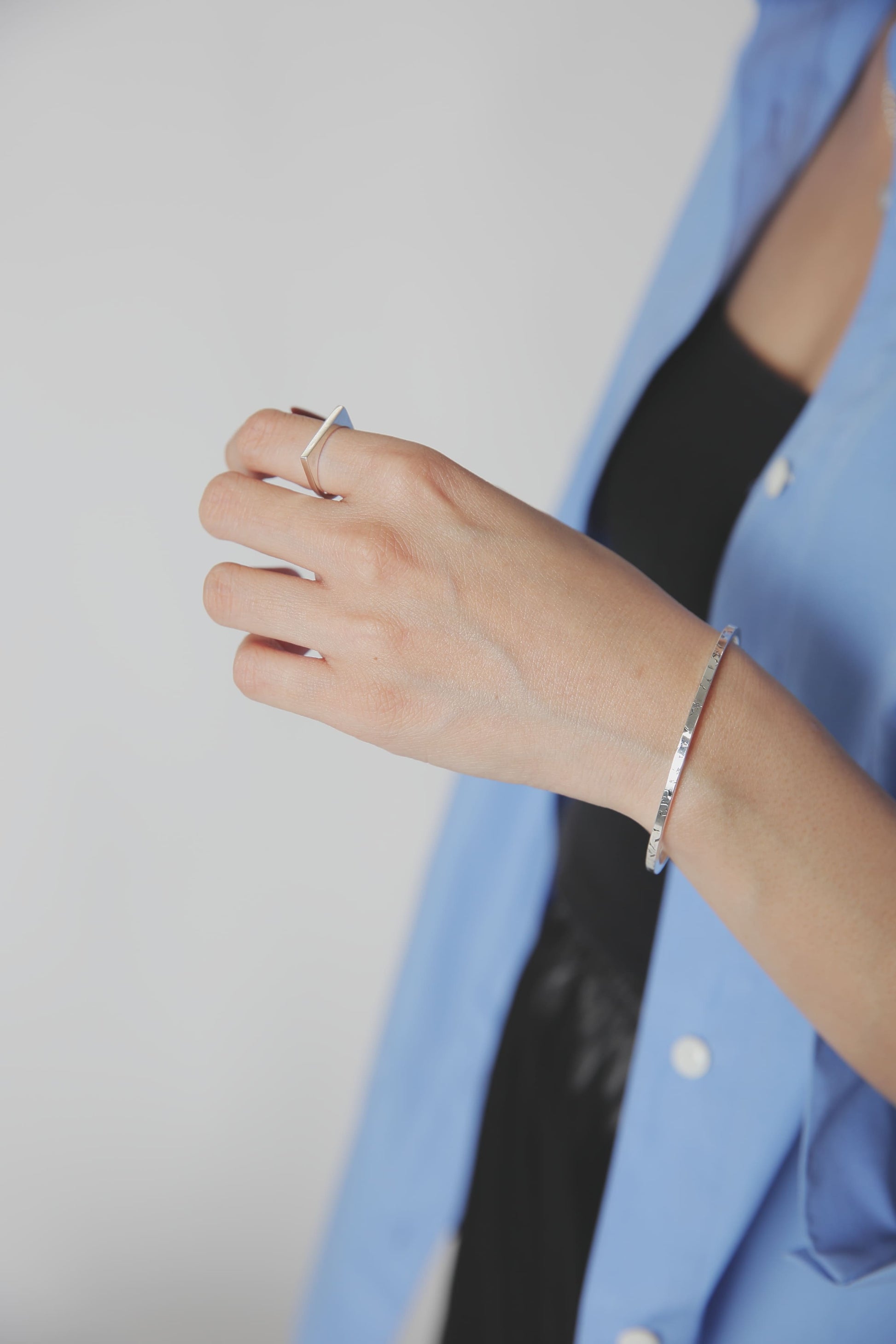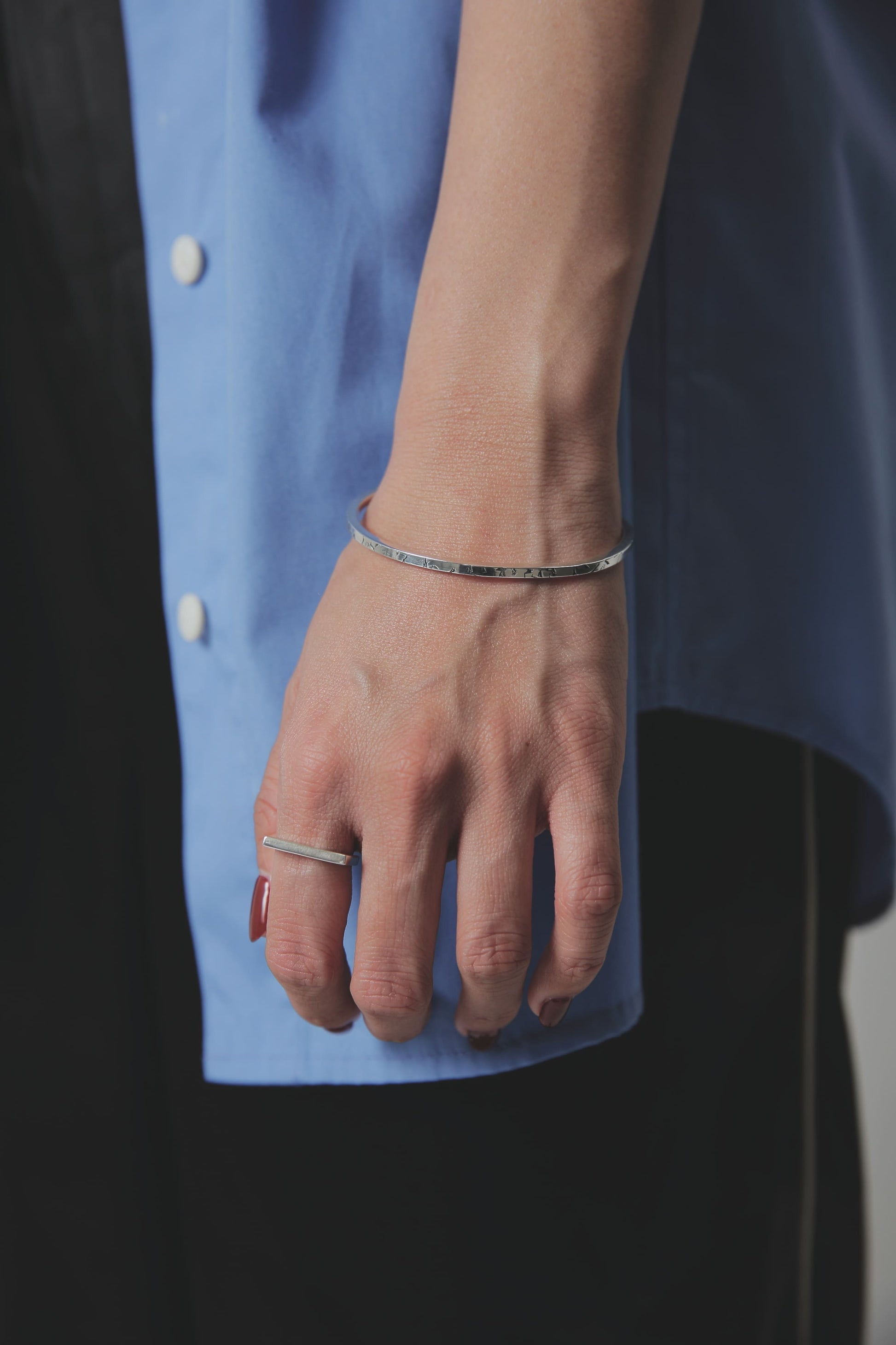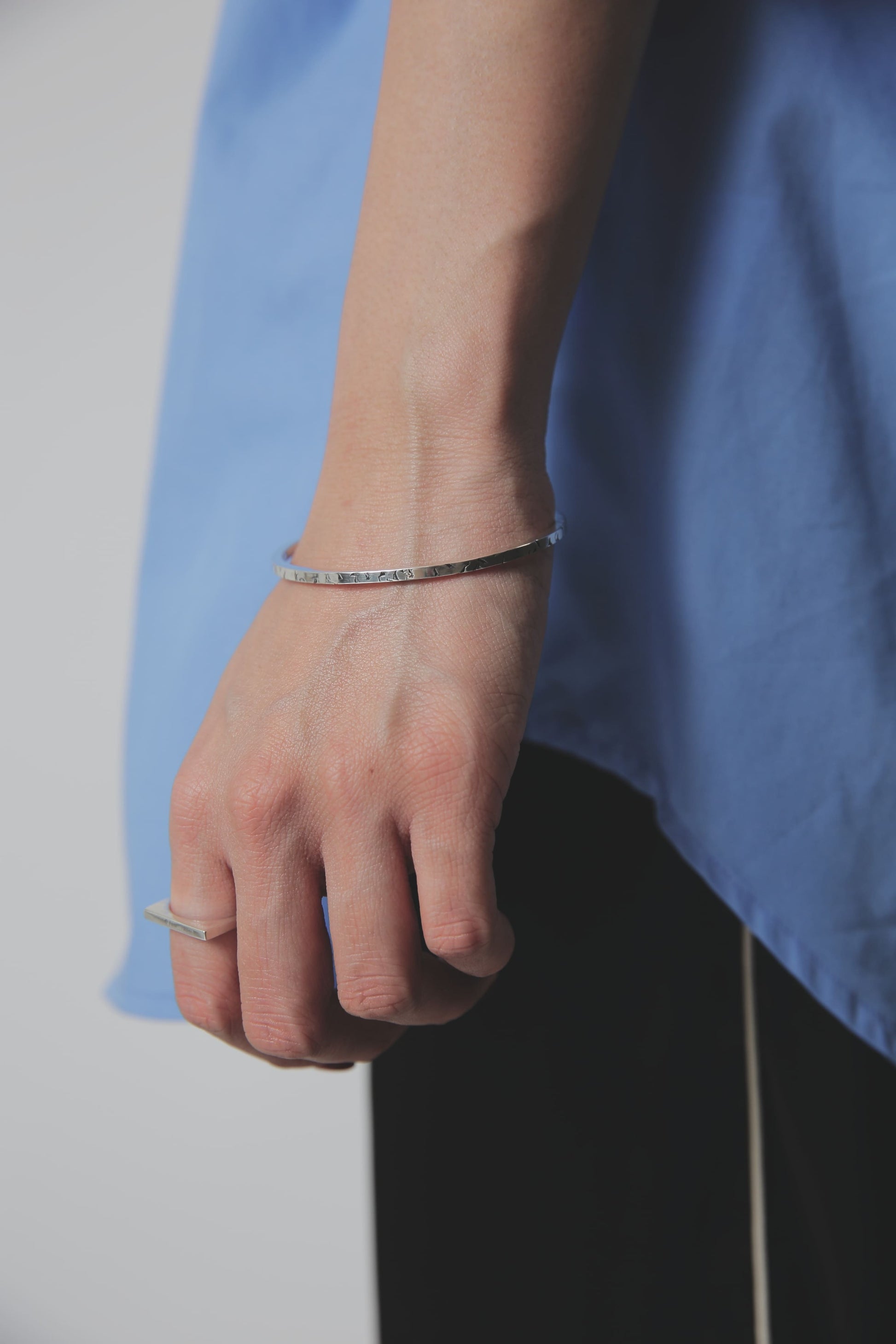 幅約2mmの細い角棒を使用し、華奢なデザインに仕上げたバングルです。