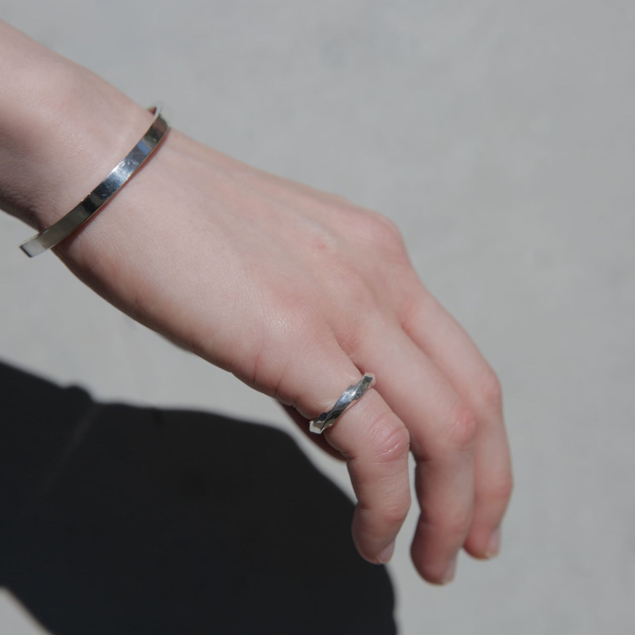 全体的にねじりを加えることで様々な角度に面ができ、あらゆる方向の光を反射させる美しいデザインです。