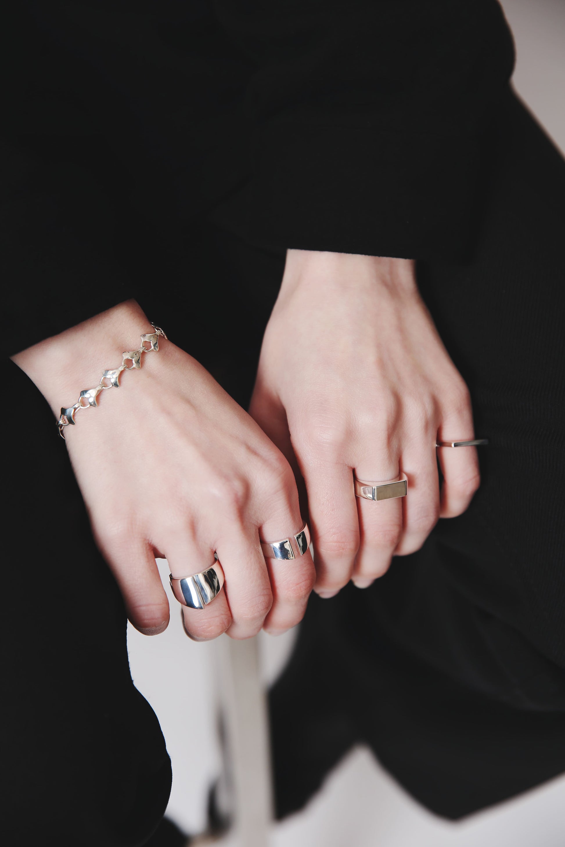 程良いボリュームなのでお洋服のスタイリングの雰囲気を壊さずスマ トにアシストし、デイリ 使いにもお出かけシ ンにも使いやすいリングです。