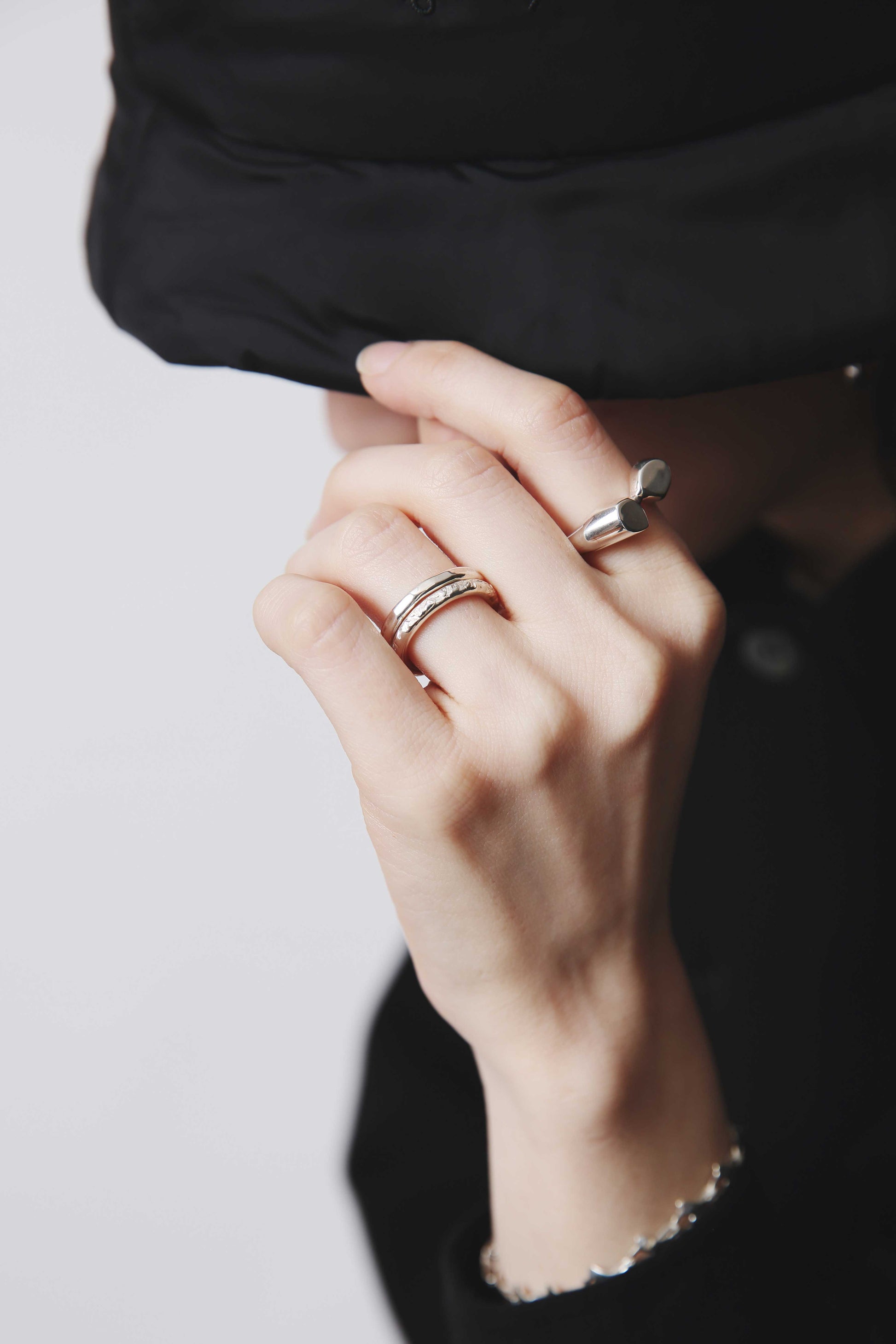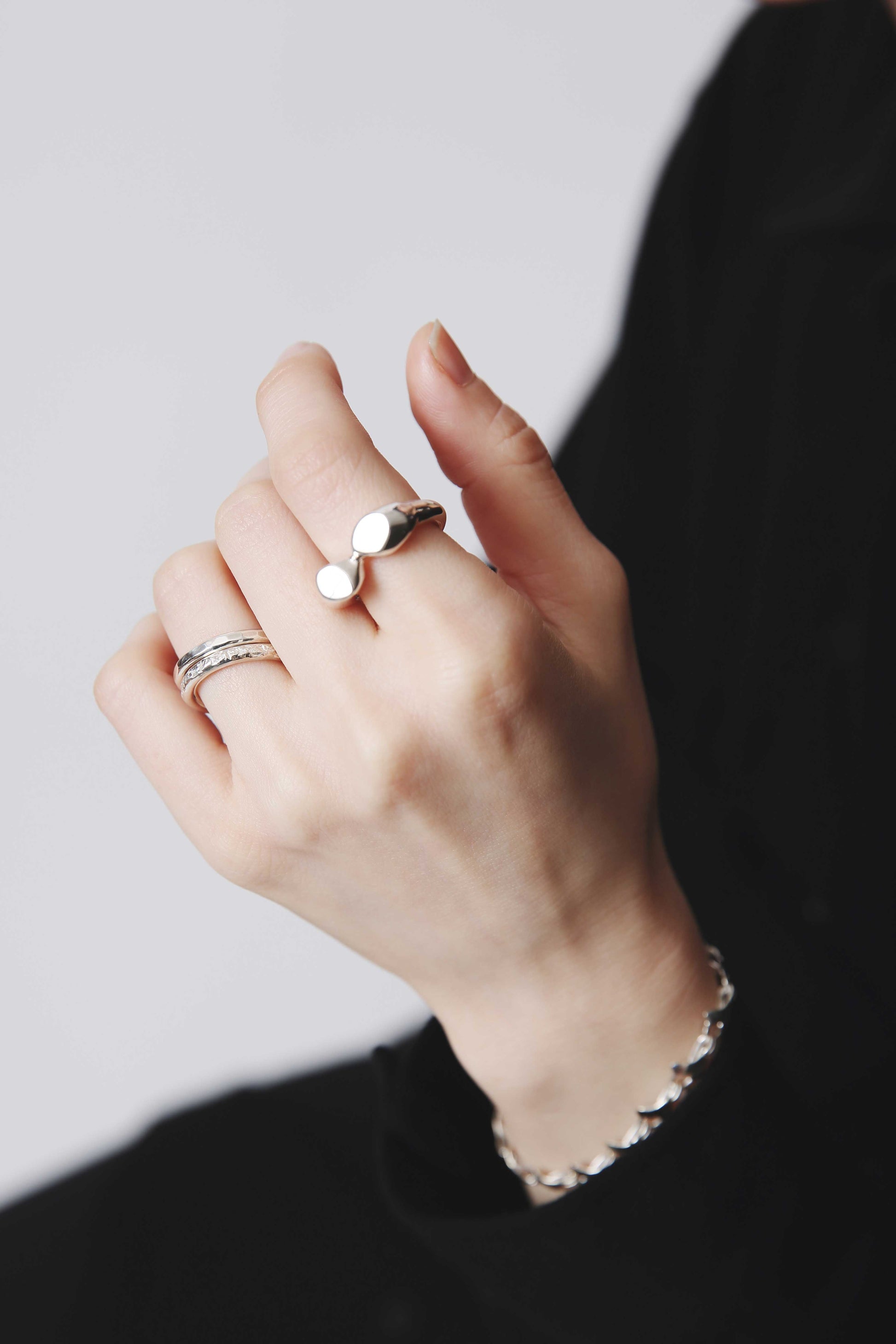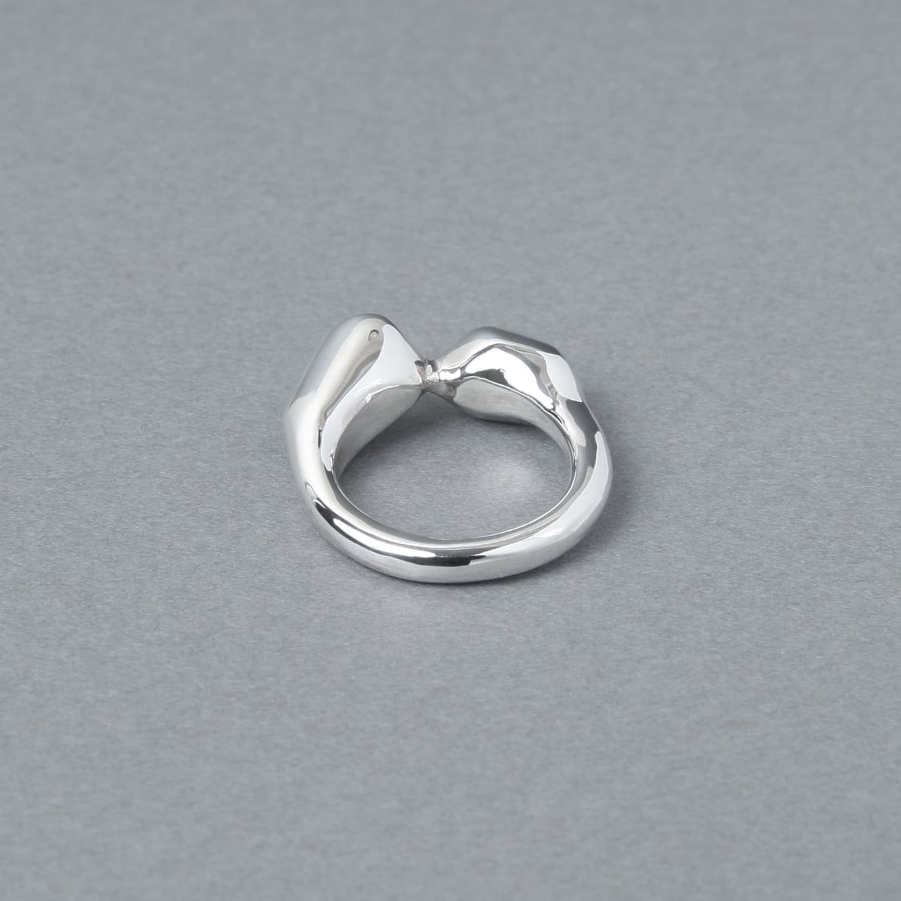 いびつなフォルムとスターリングシルバー(シルバー925)の掛け合わせで、そこにあるとつい手に取りたくなる不思議なフォルムのリングです。