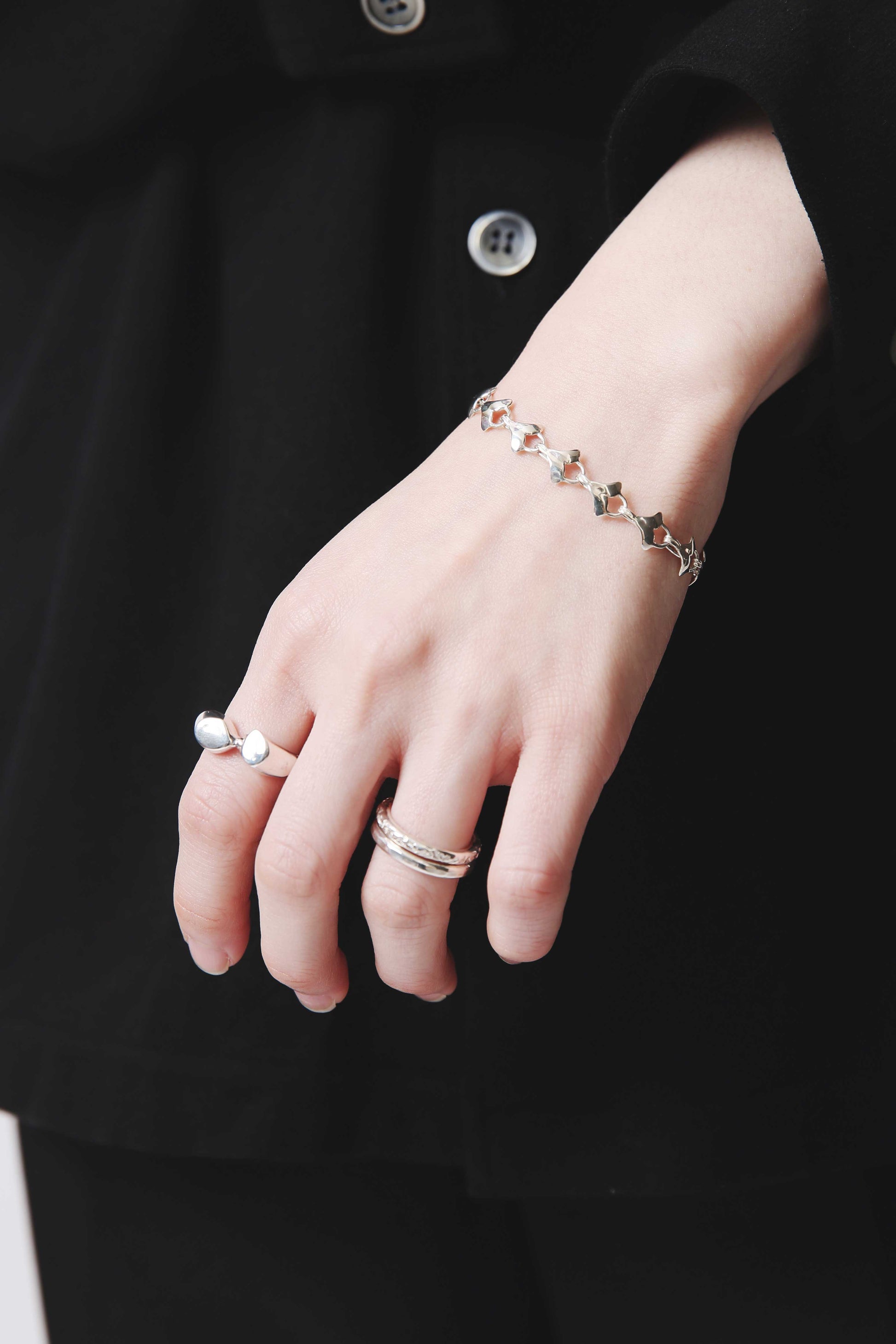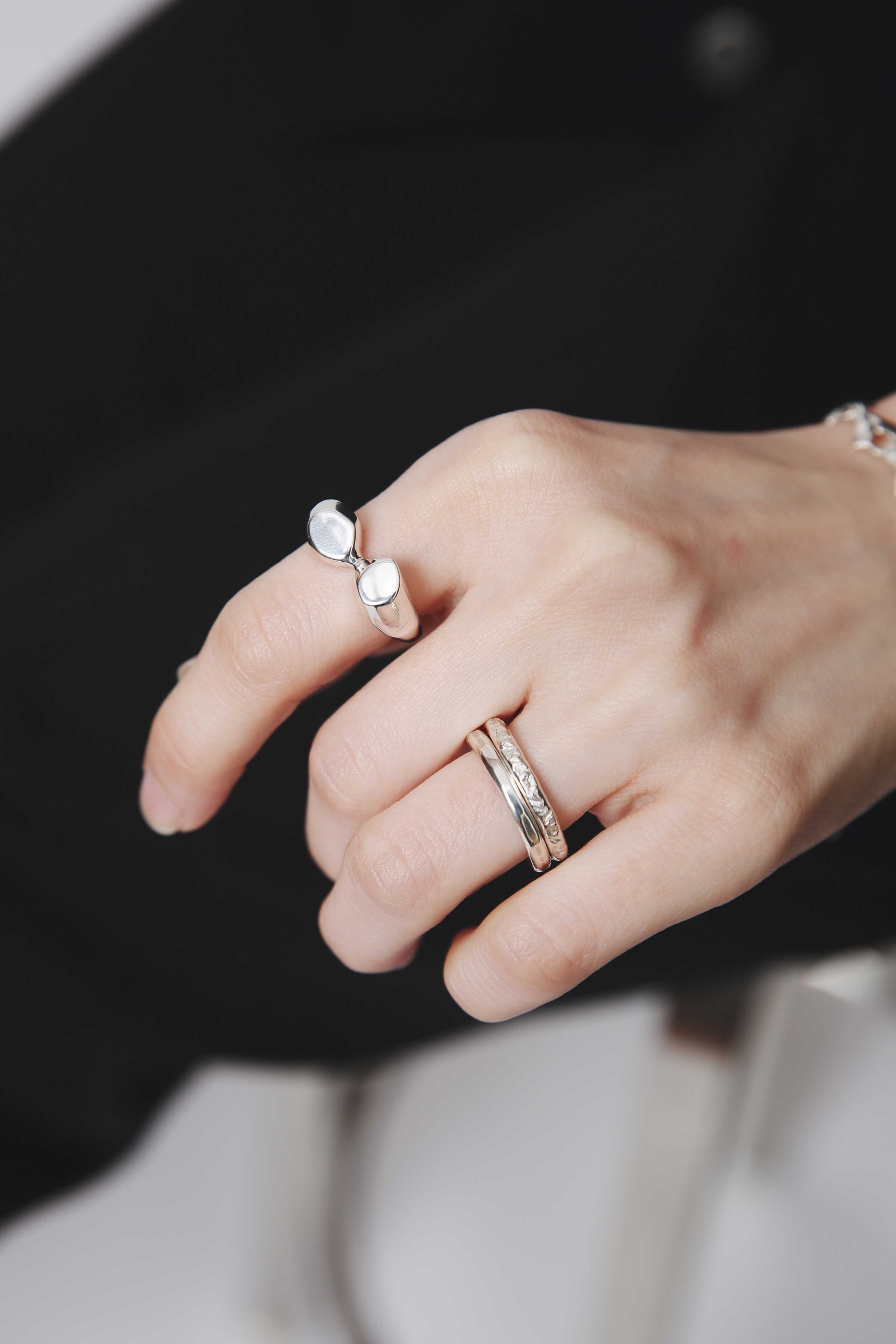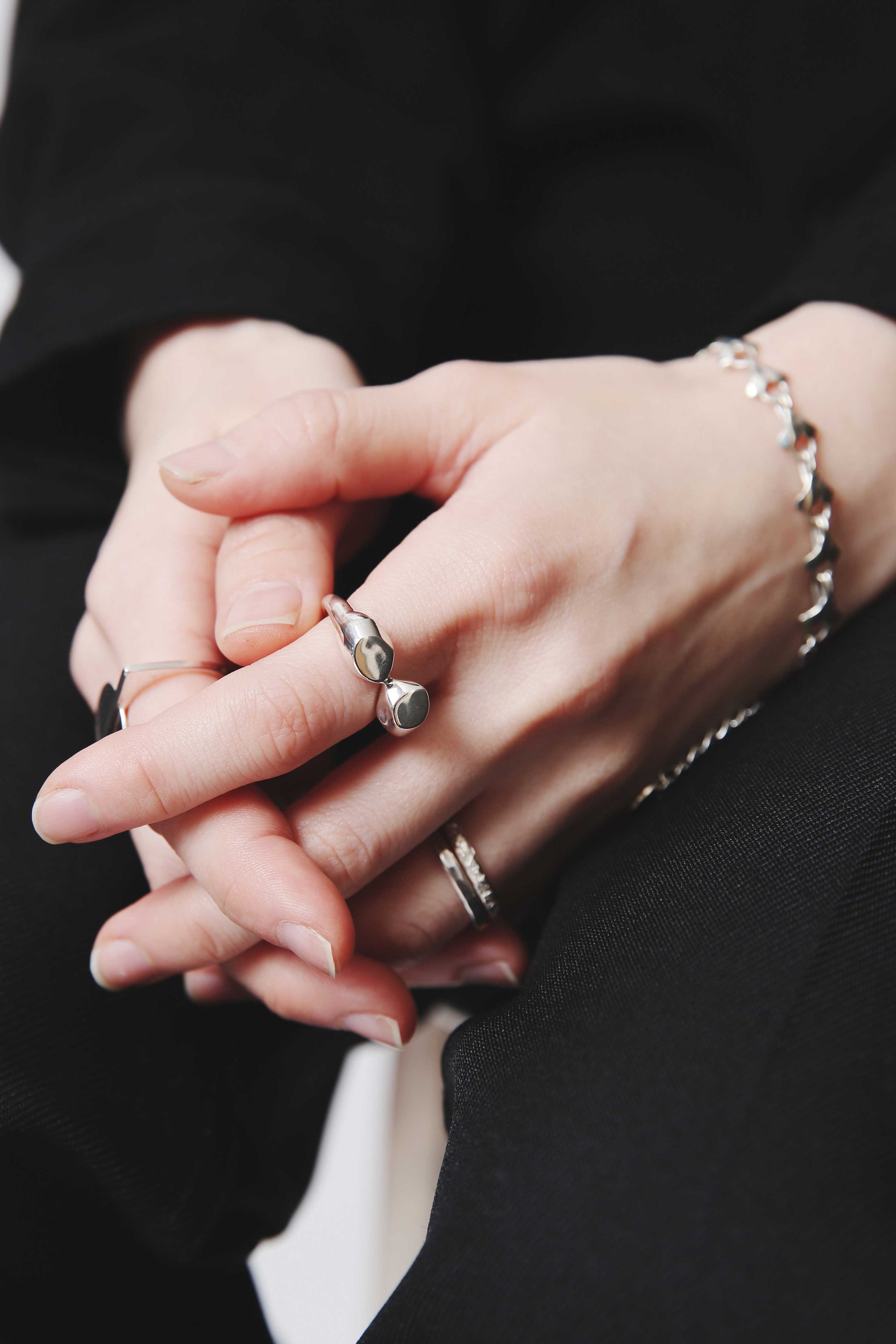 いびつなフォルムとスターリングシルバー(シルバー925)の掛け合わせで、そこにあるとつい手に取りたくなる不思議なフォルムのリングです。
