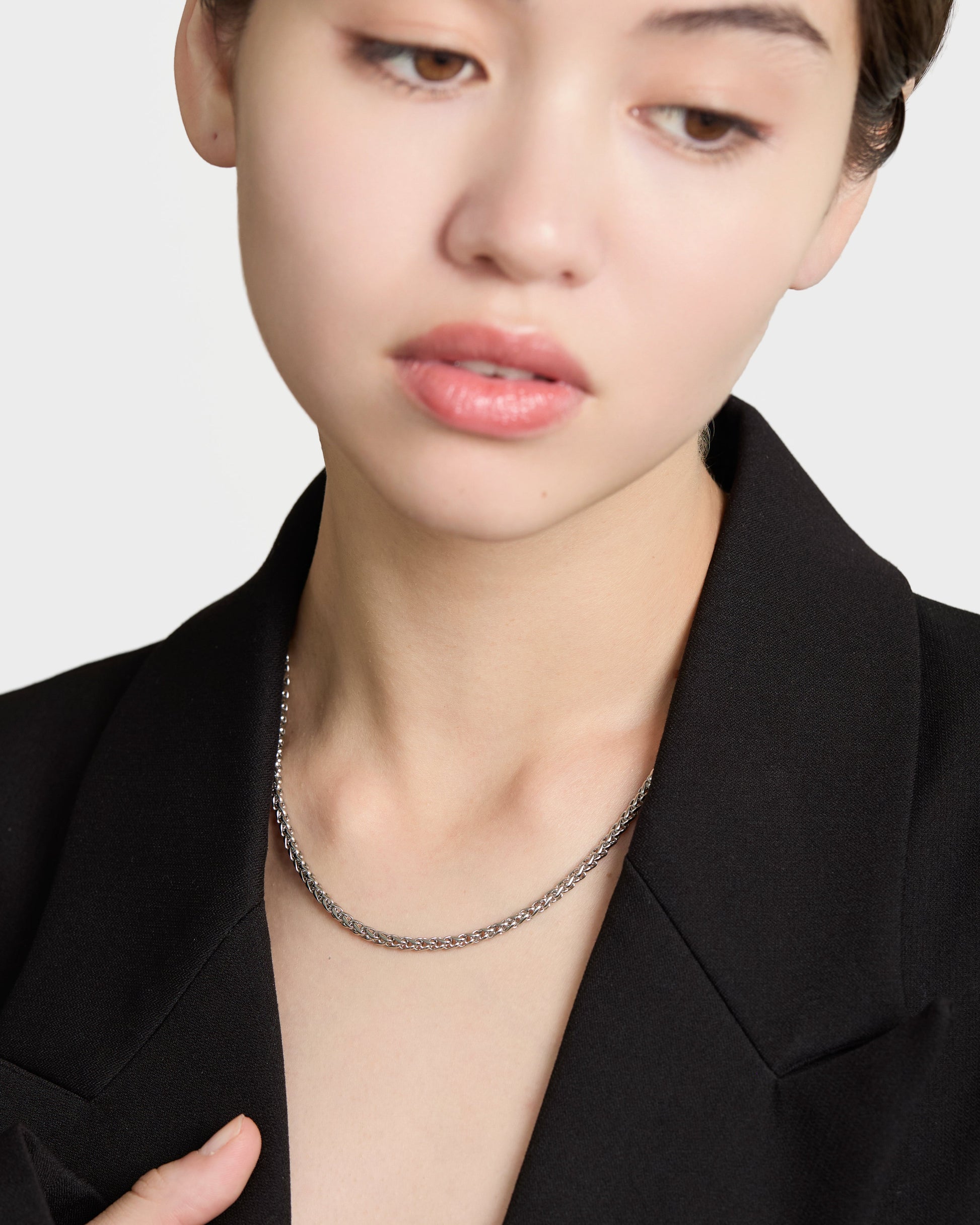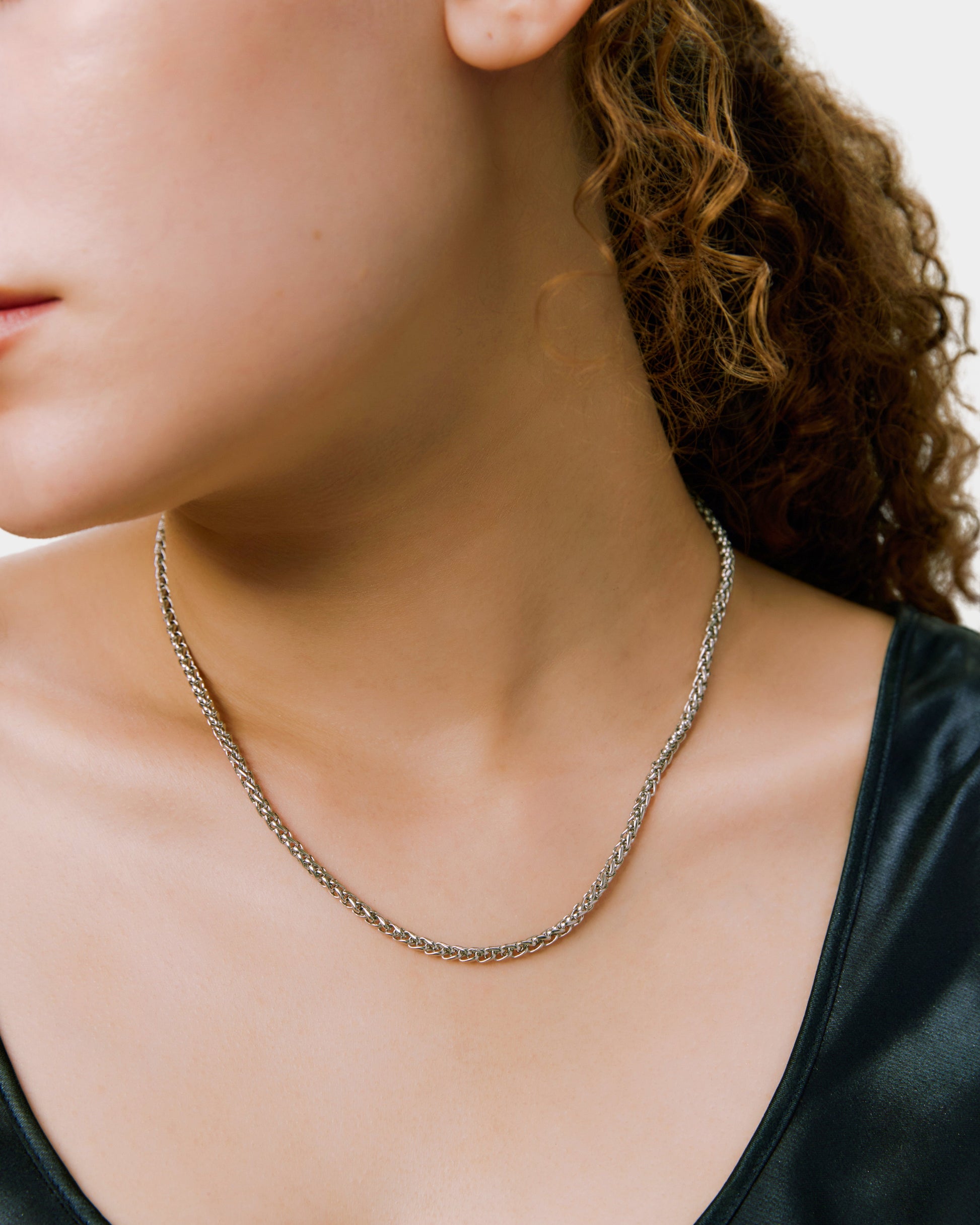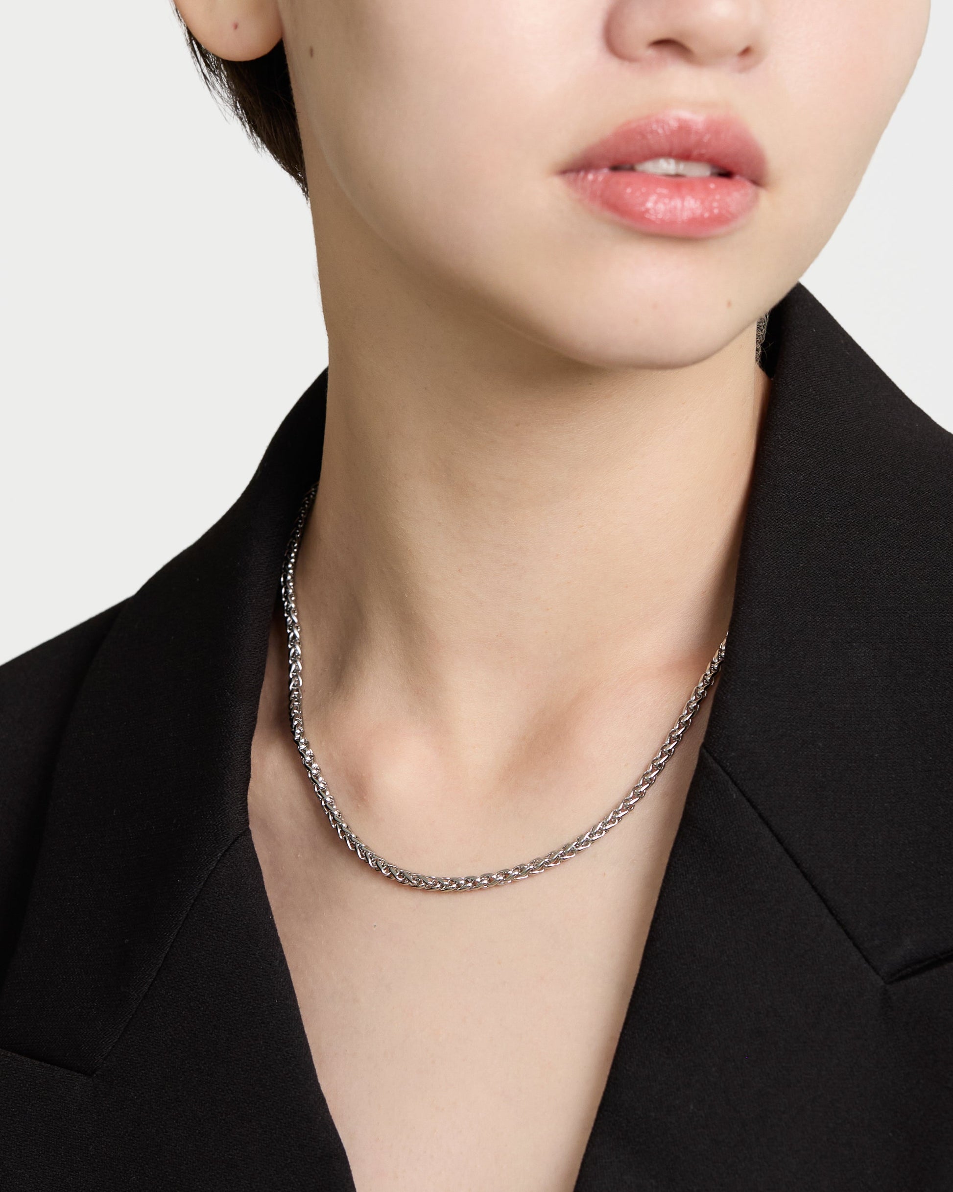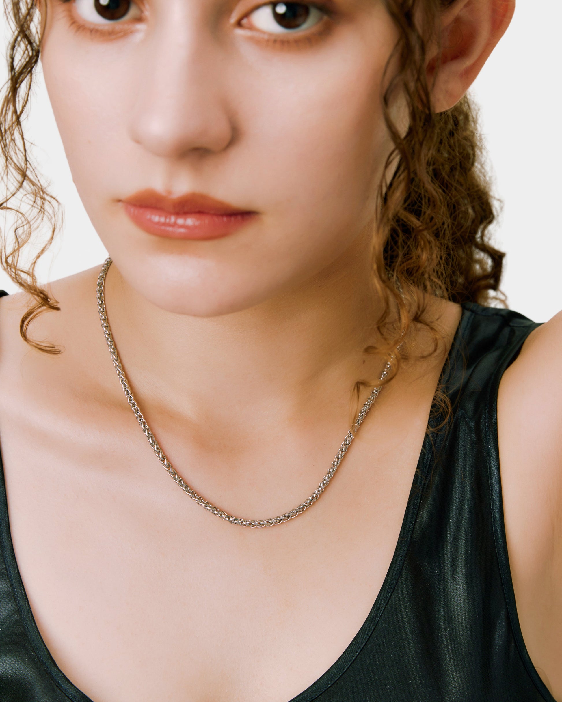 編み込んだような立体的なラインが特徴のスパイクチェーンネックレス。