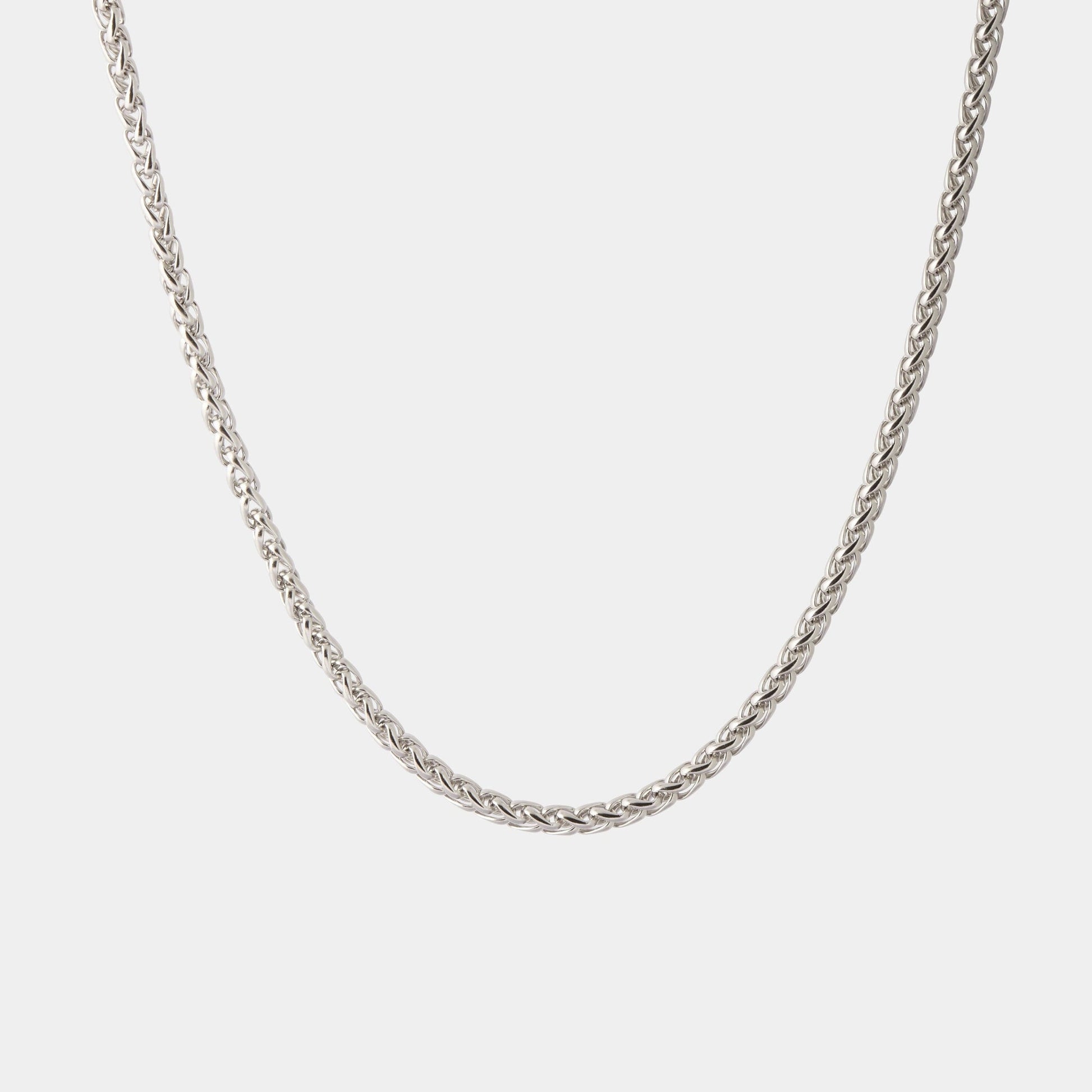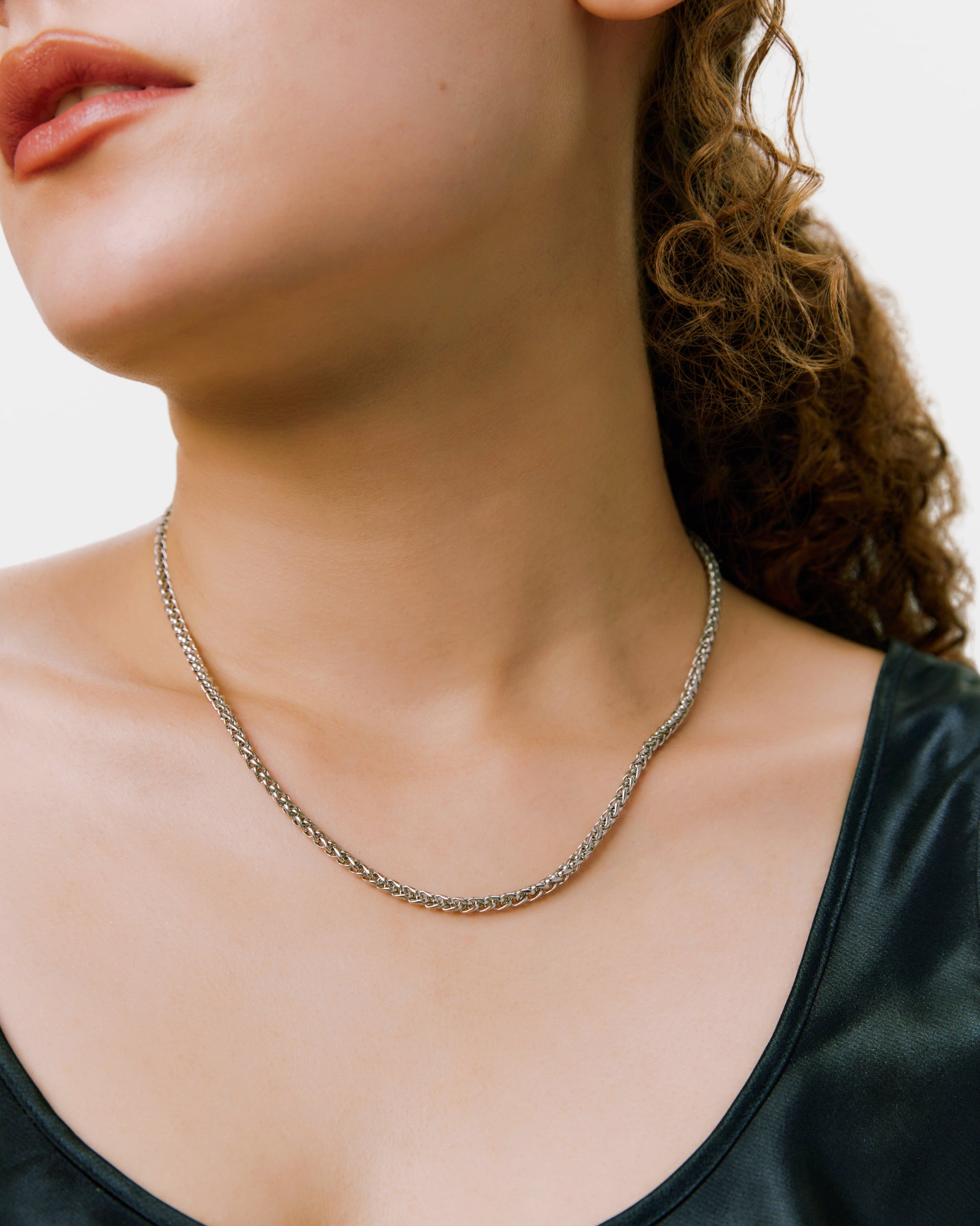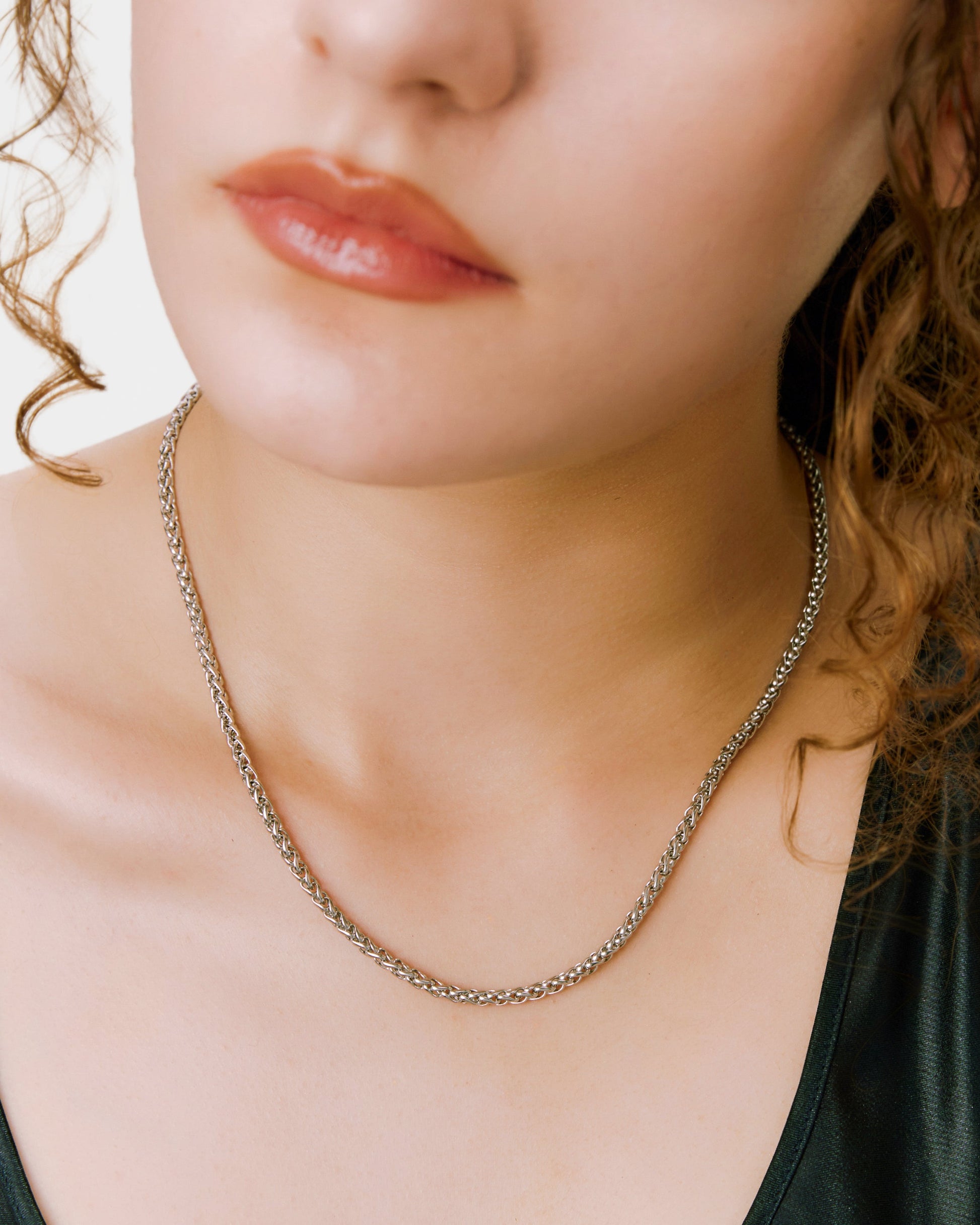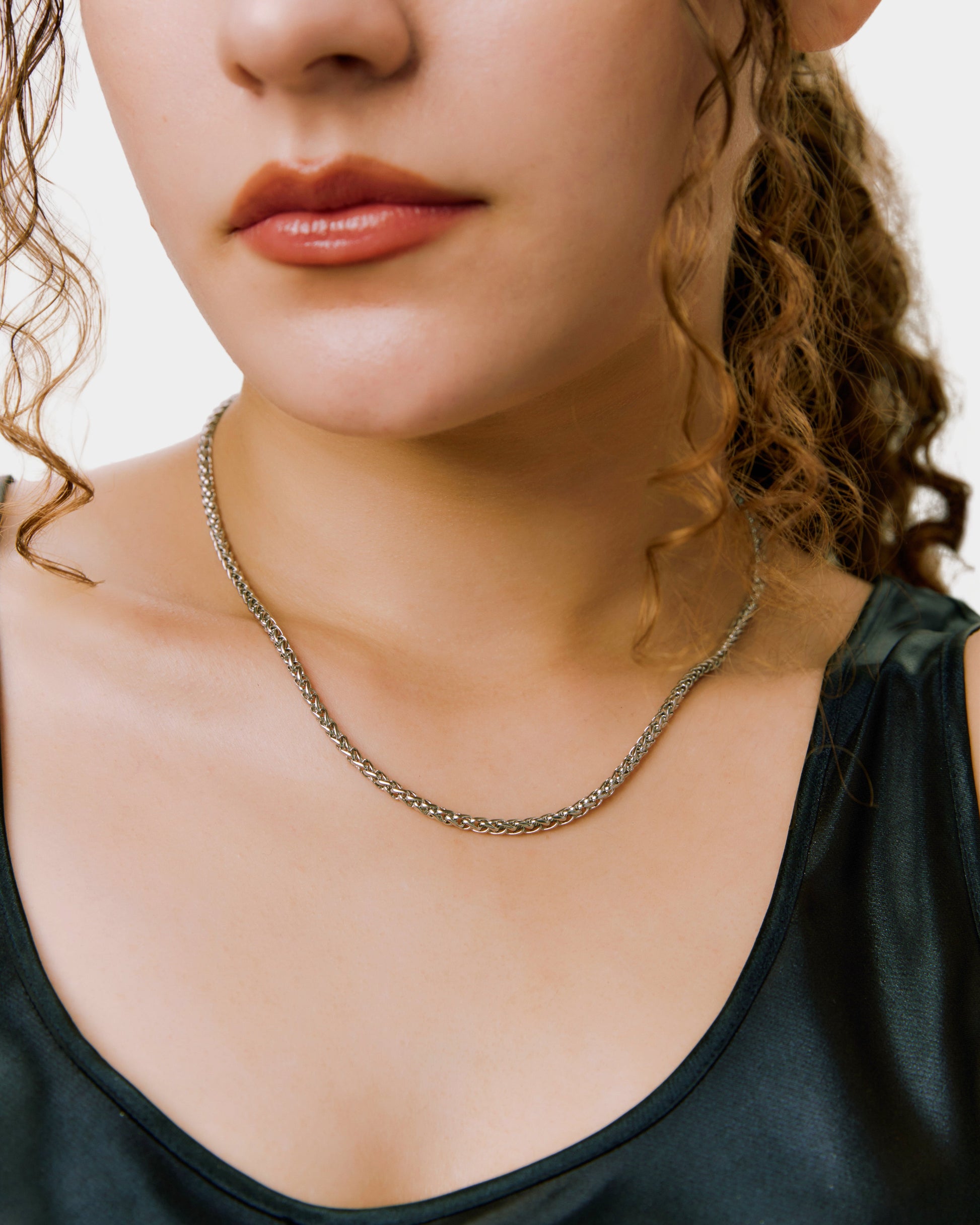 編み込んだような立体的なラインが特徴のスパイクチェーンネックレス。