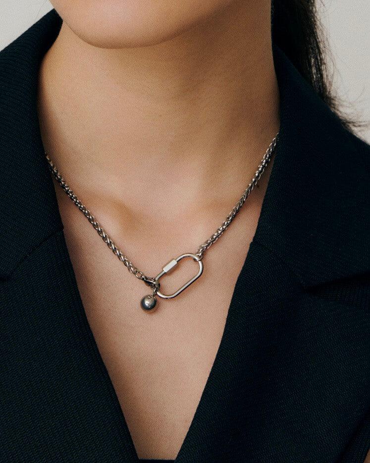 ほどよい重量感と個性的なチェーンフォルムで、モード・ストリート・カジュアルなど、どんなスタイルにも“エッジ”を加えたいときに活躍。
