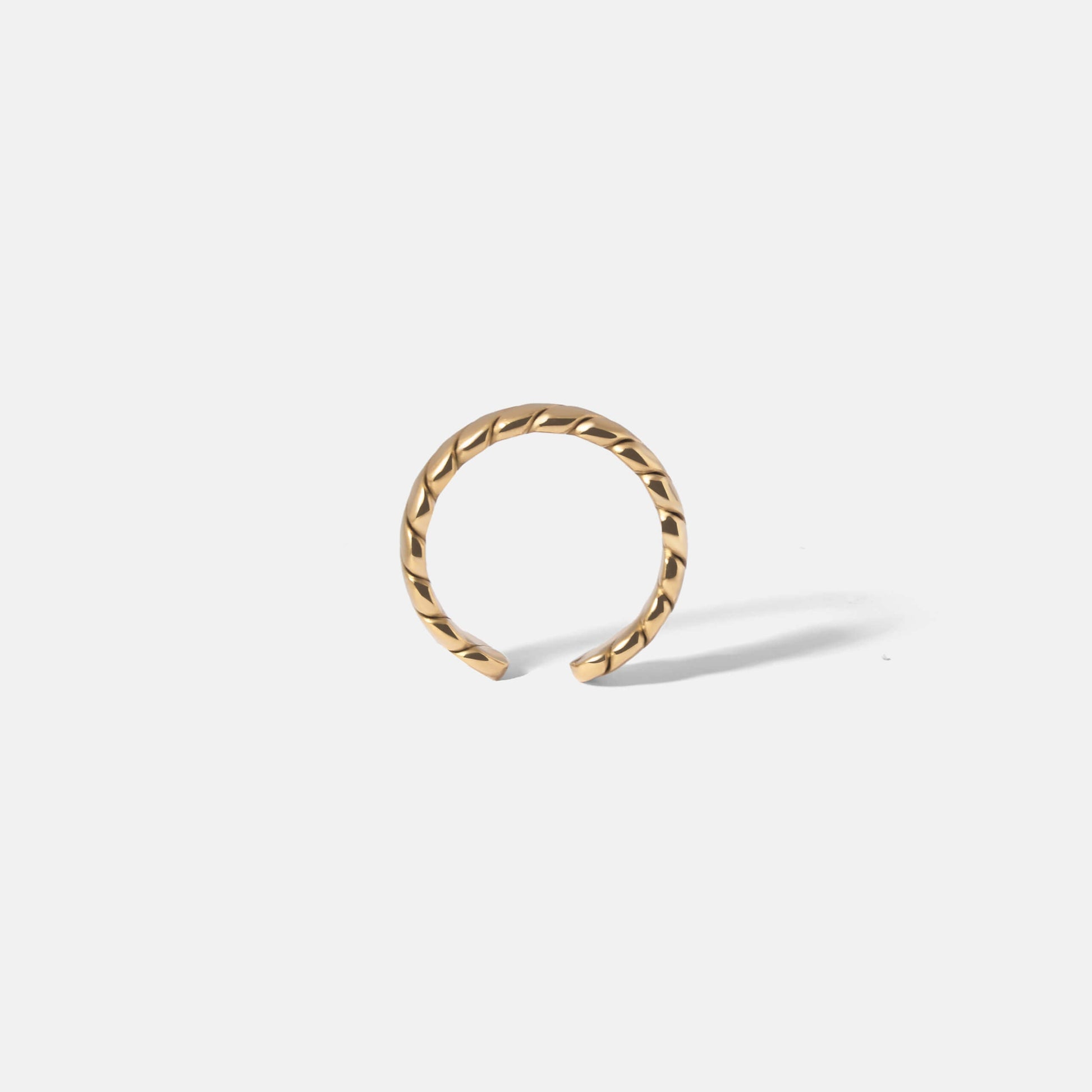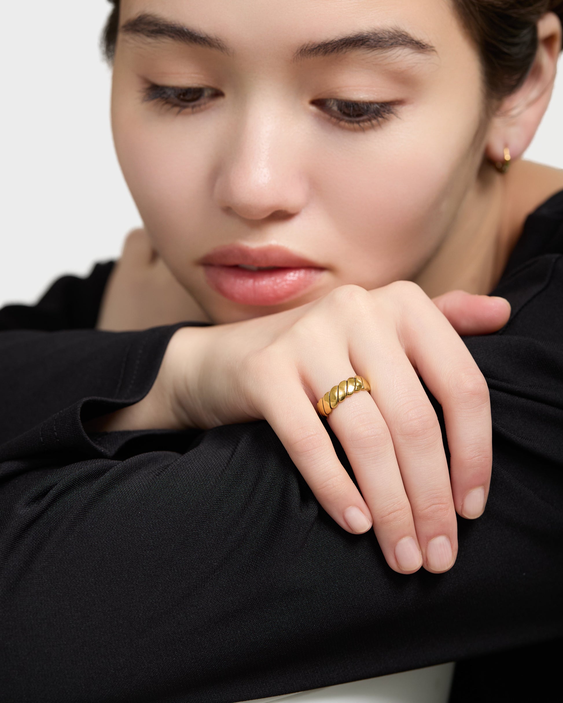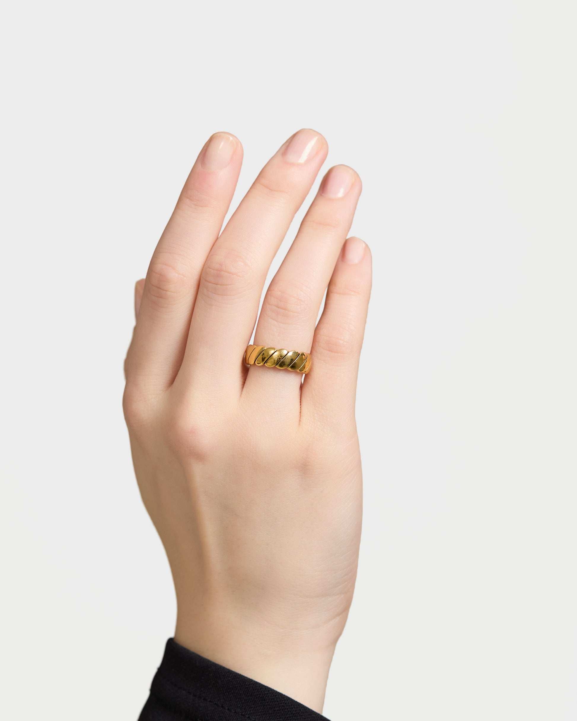 なめらかなカッティングが施された立体的なフォルムが印象的なタイムレスリング。