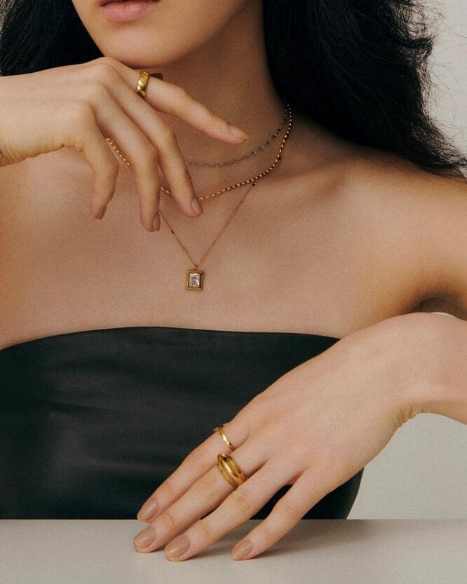光を受けて自然にきらめくカーブが、指先にリズムと存在感をもたらします。