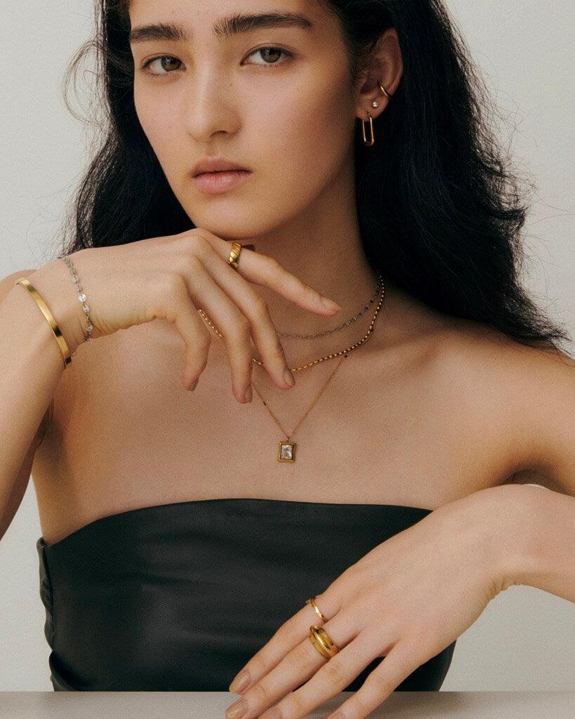 シンプルなスタイリングにひとさじのエッジを加えたい方におすすめ。