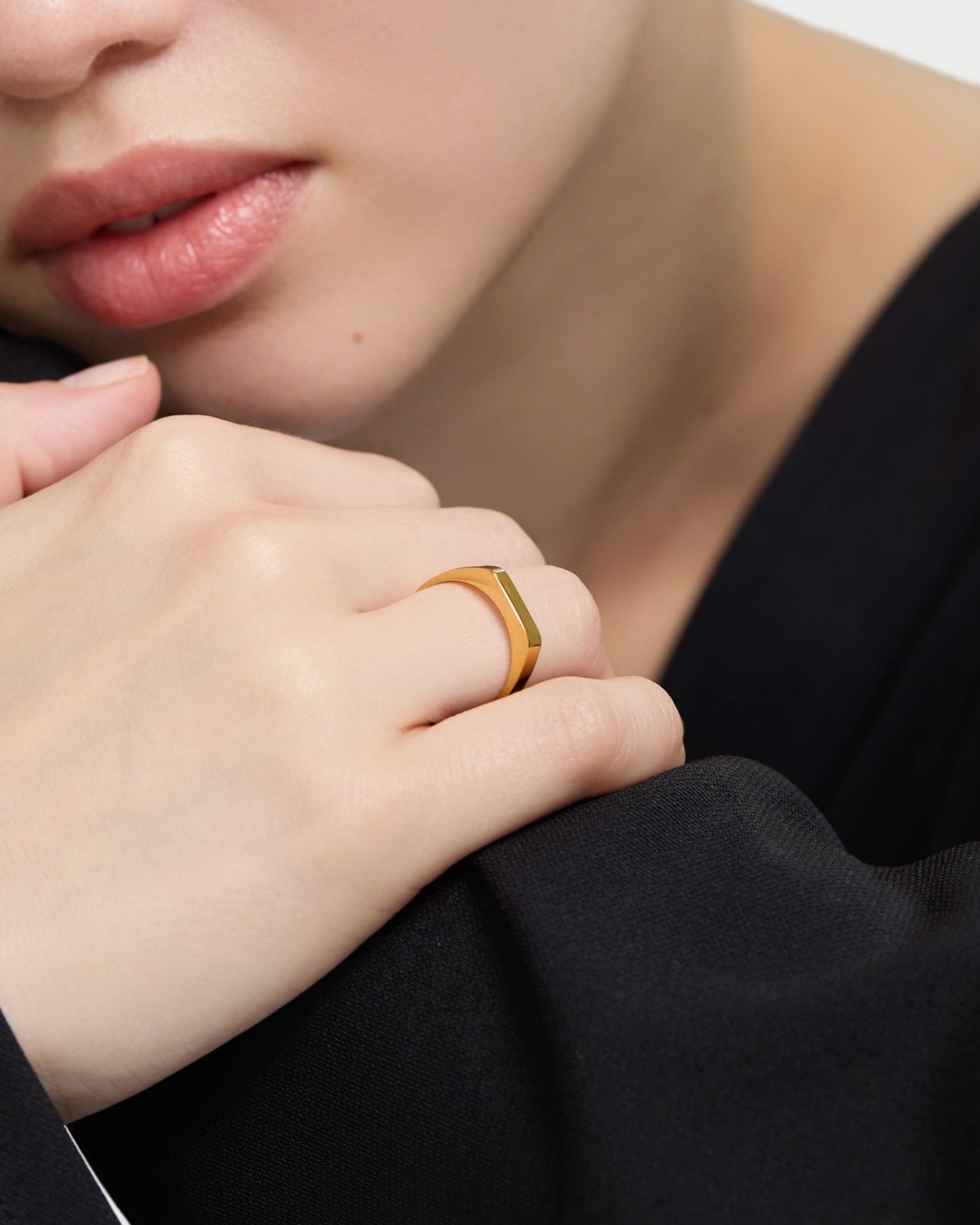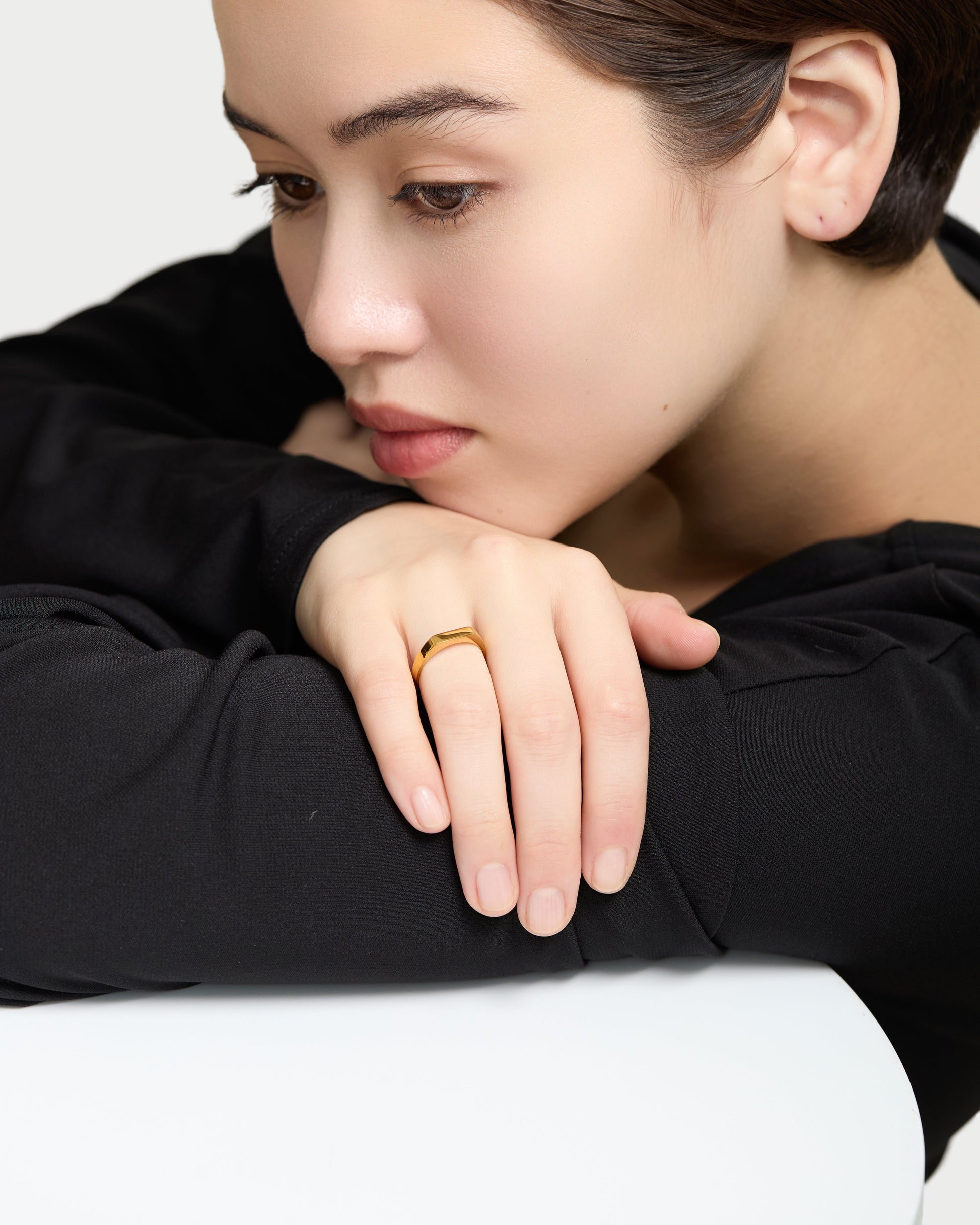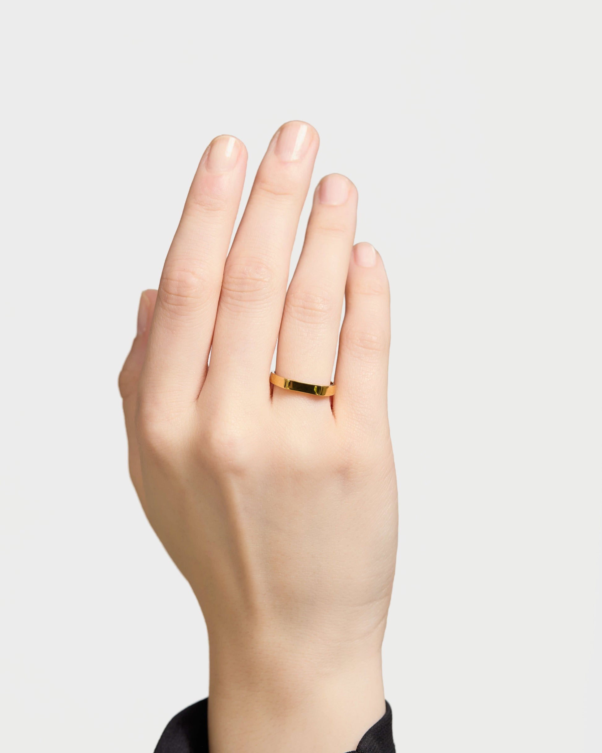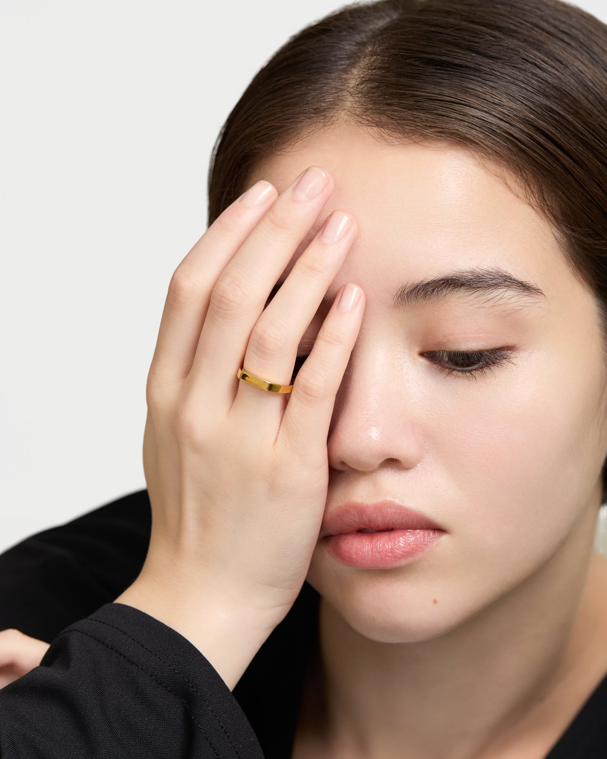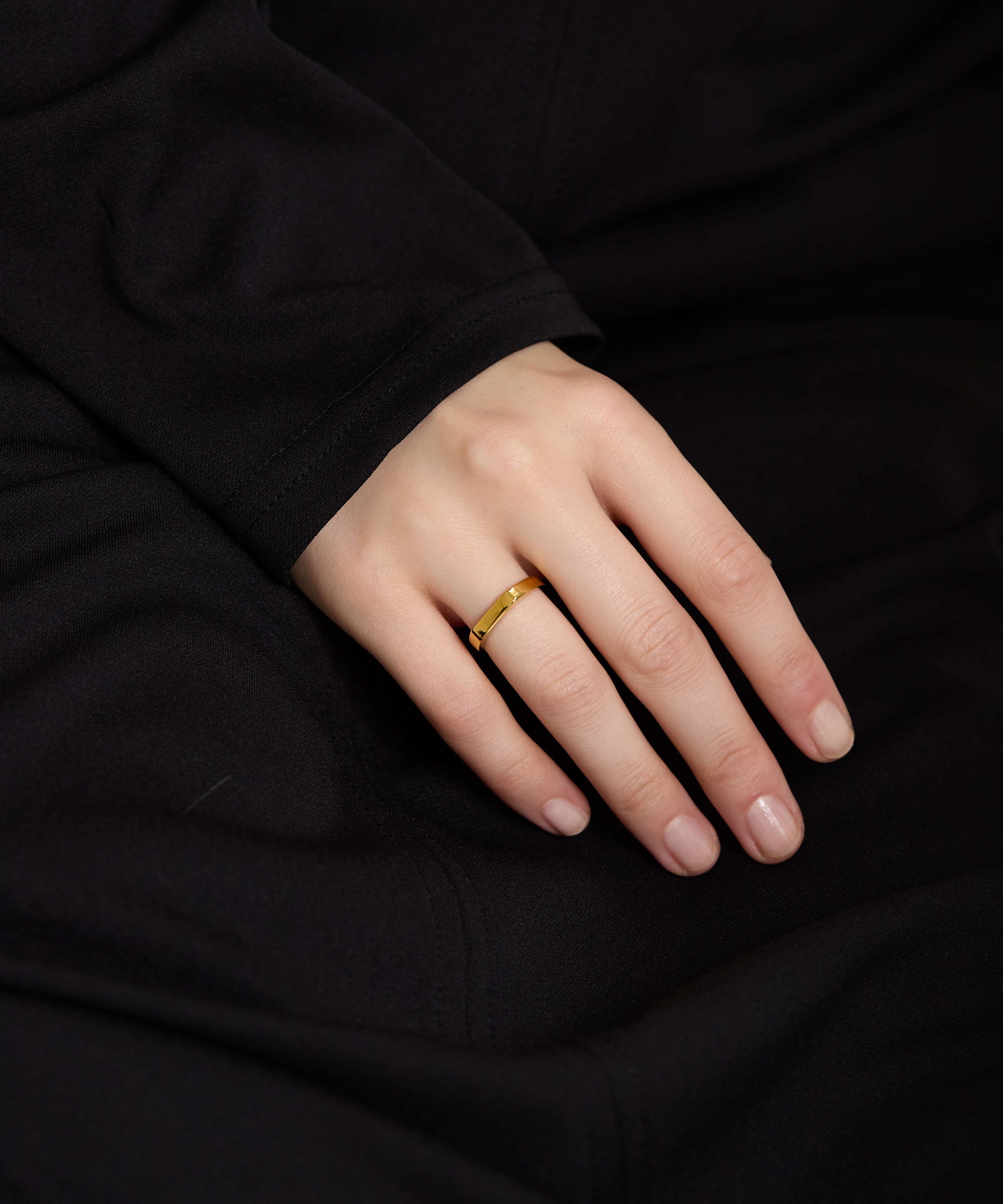 艶やかな表面と直線的なトップラインが印象的なフラットラインリング。