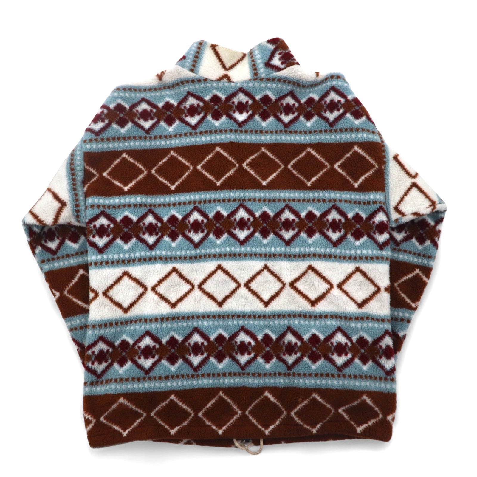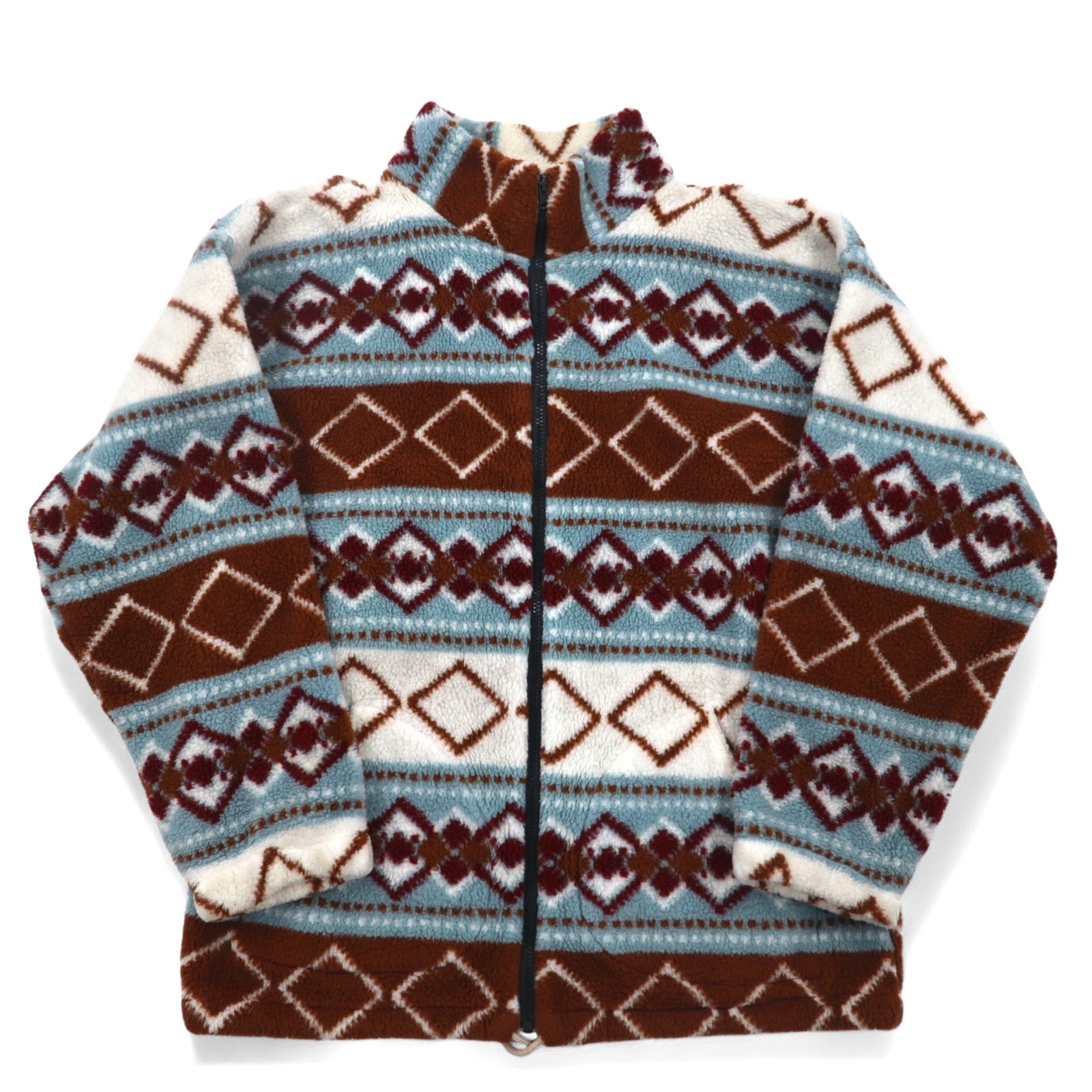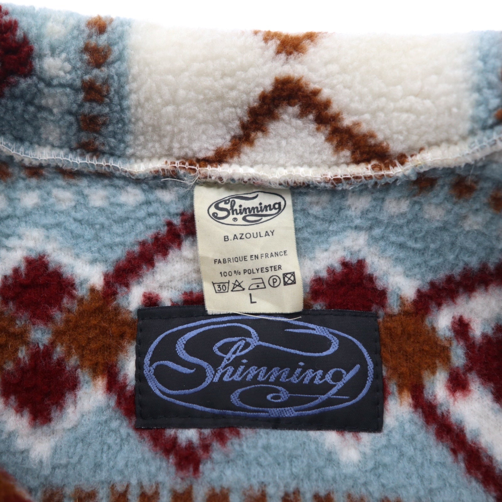 フランス製 90年代 Shinning 総柄 フリースジャケット L ブラウン ブルー B.AZOULAY