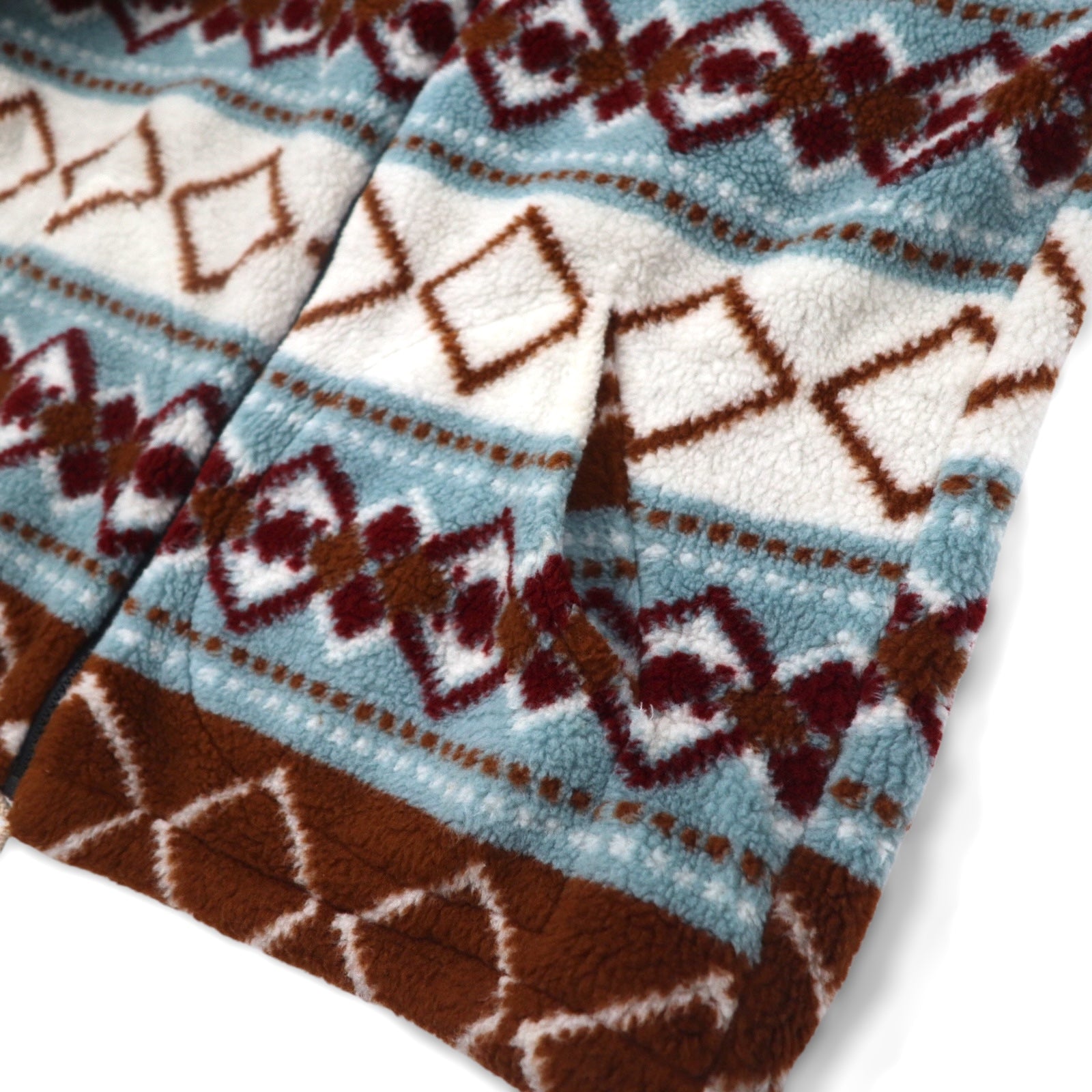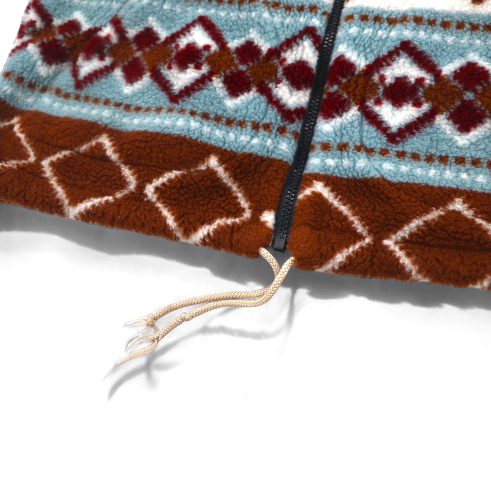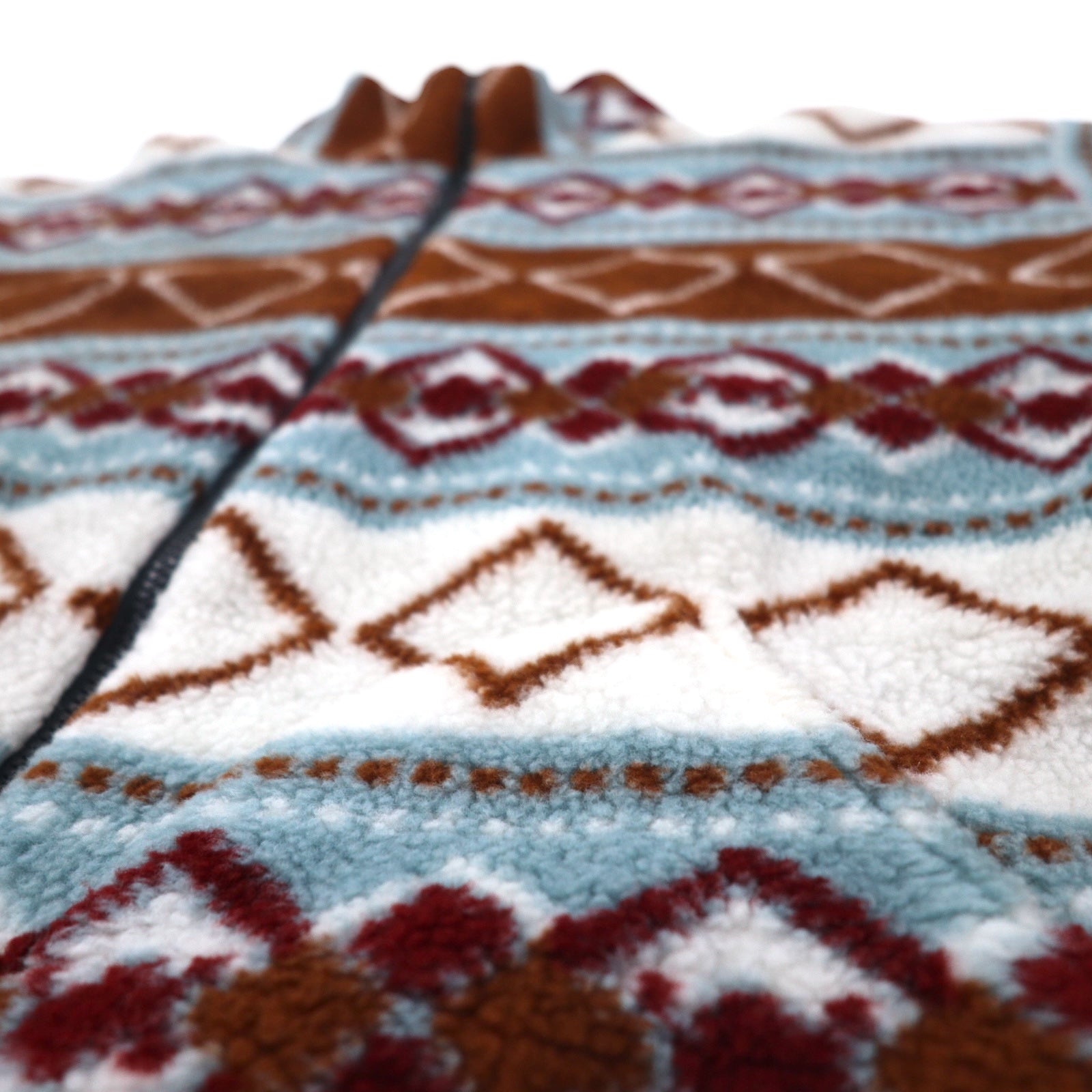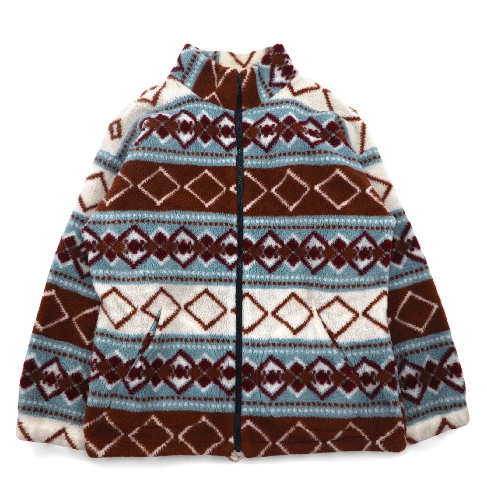 フランス製 90年代 Shinning 総柄 フリースジャケット L ブラウン ブルー B.AZOULAY