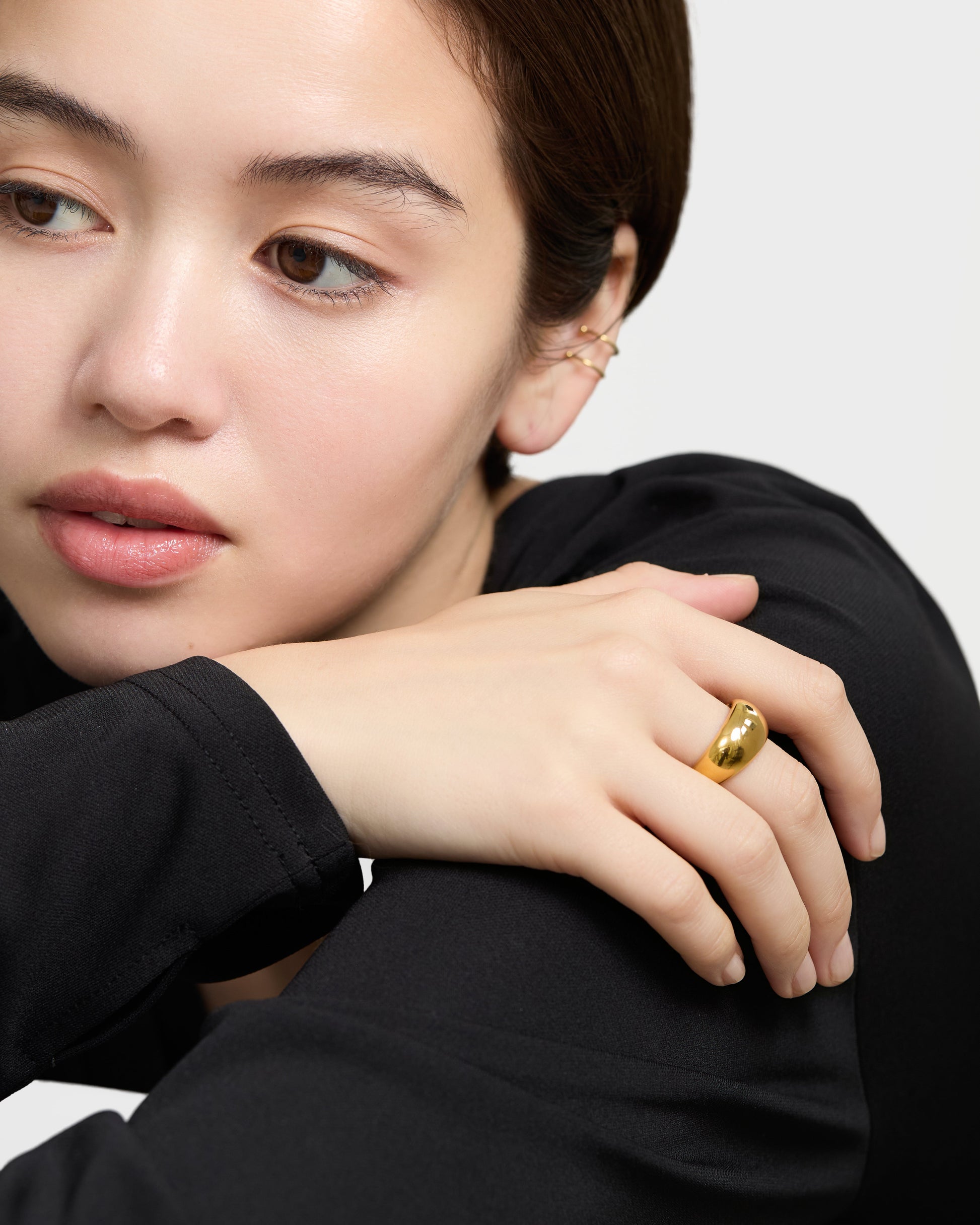 丸みを帯びた立体フォルムが美しく映えるボリュームリング。