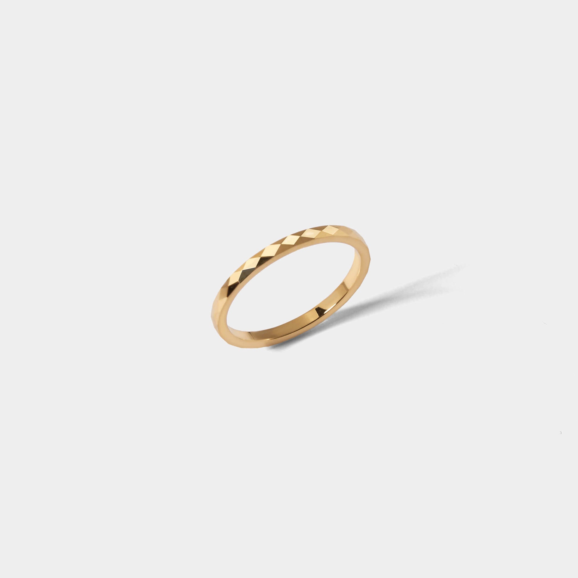 繊細な凹凸を施したスタッドパターンが、光を受けて静かにきらめくマイルドスタッドリング。