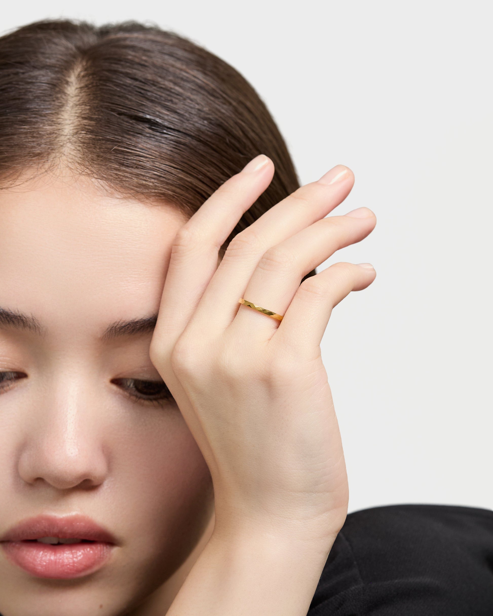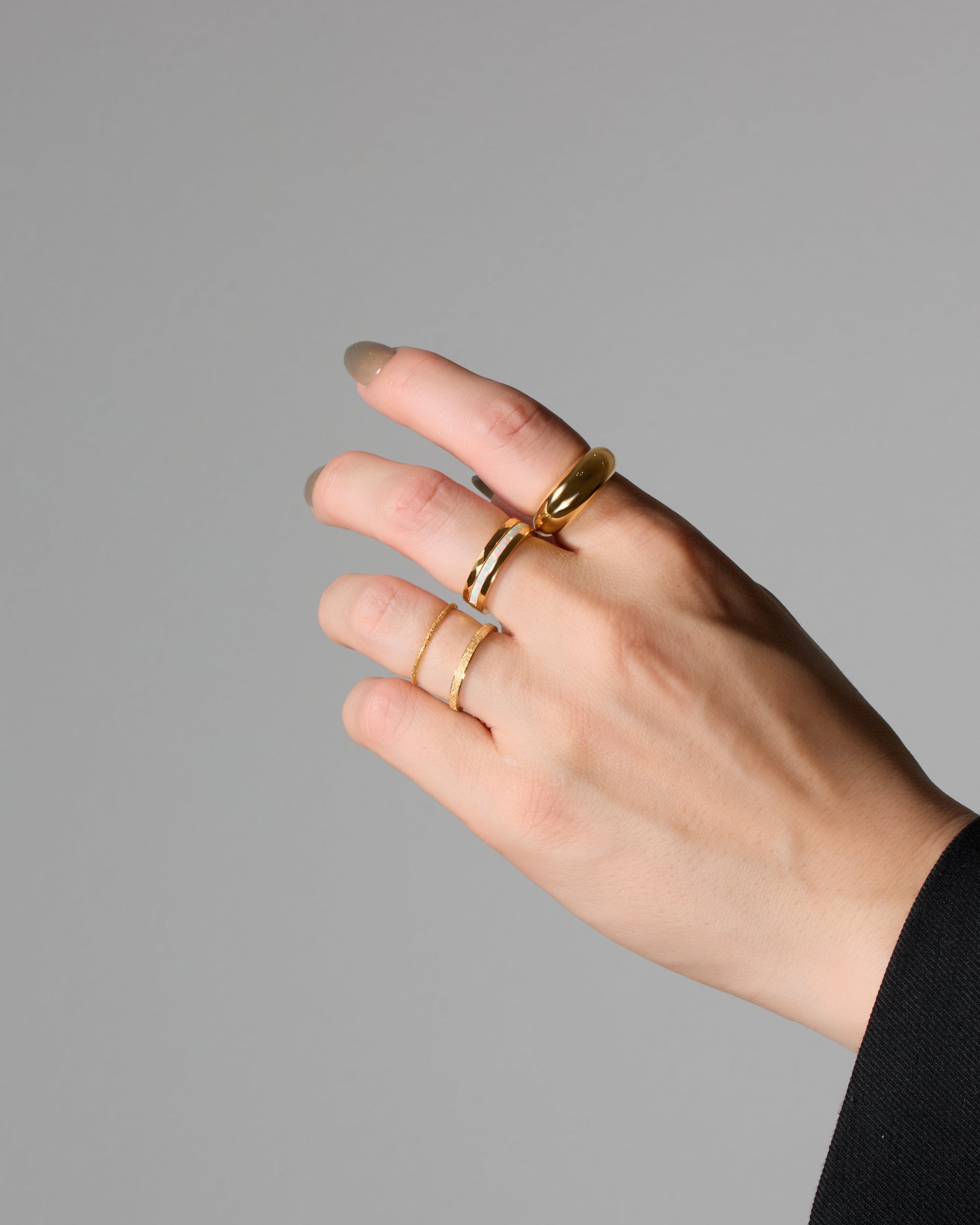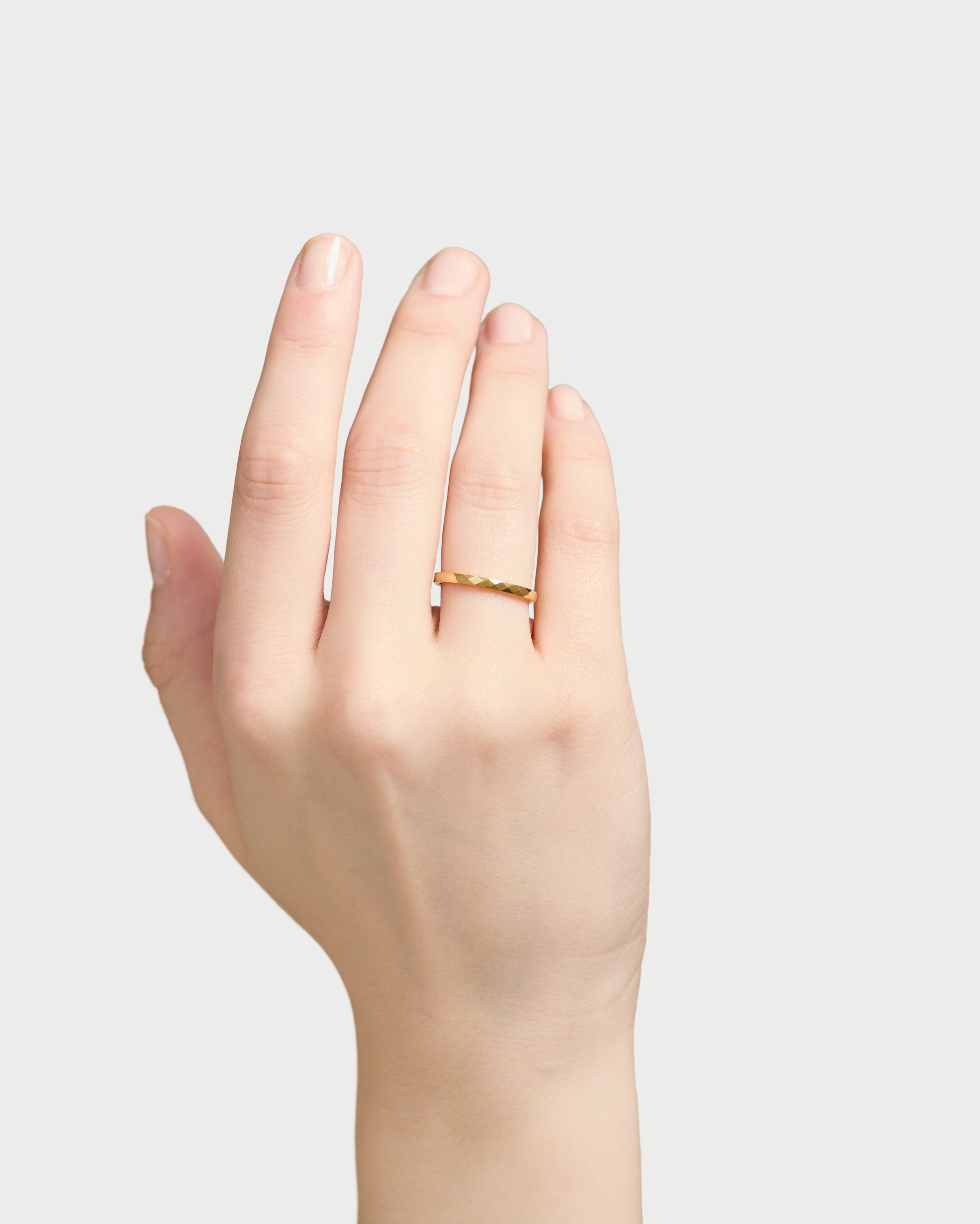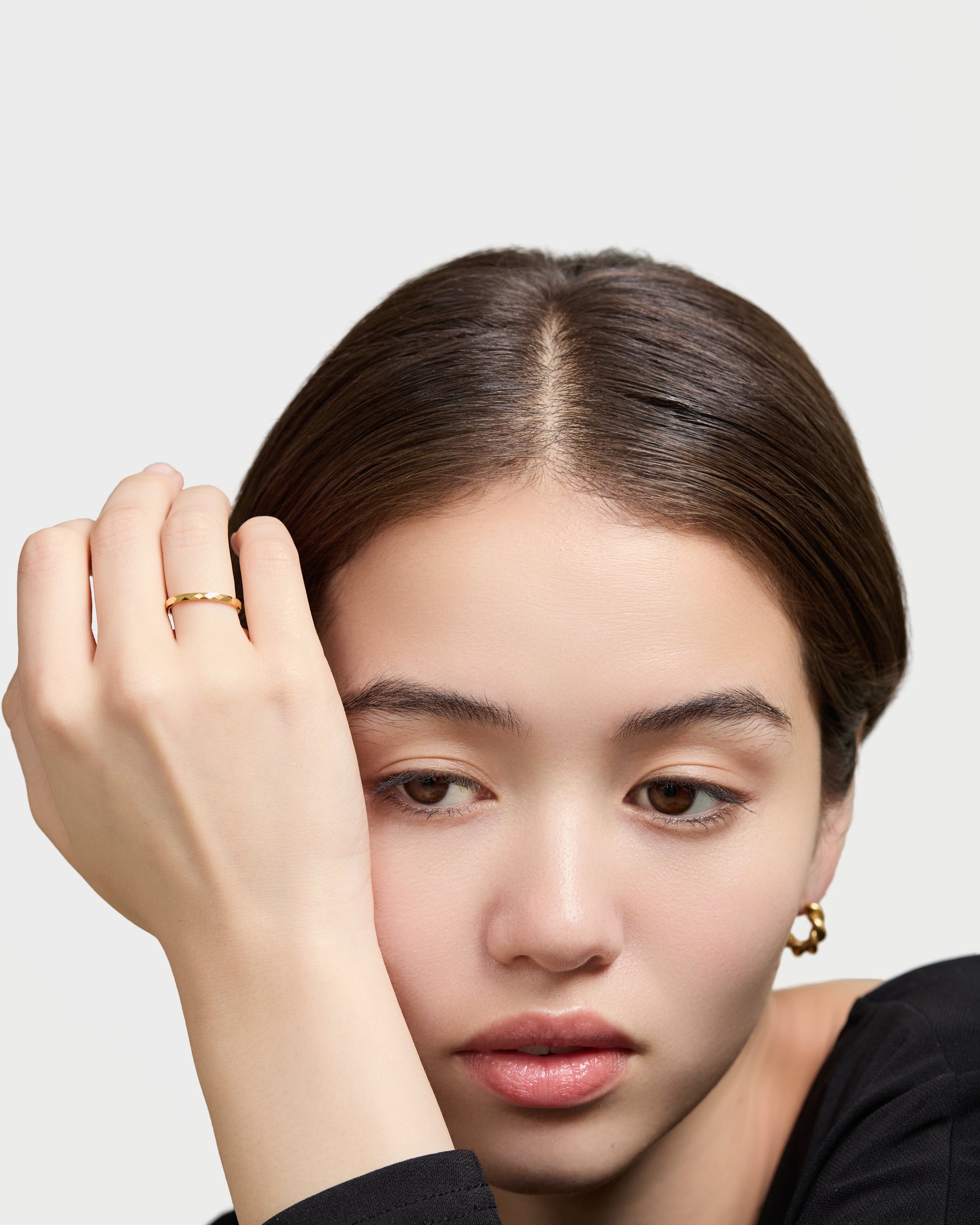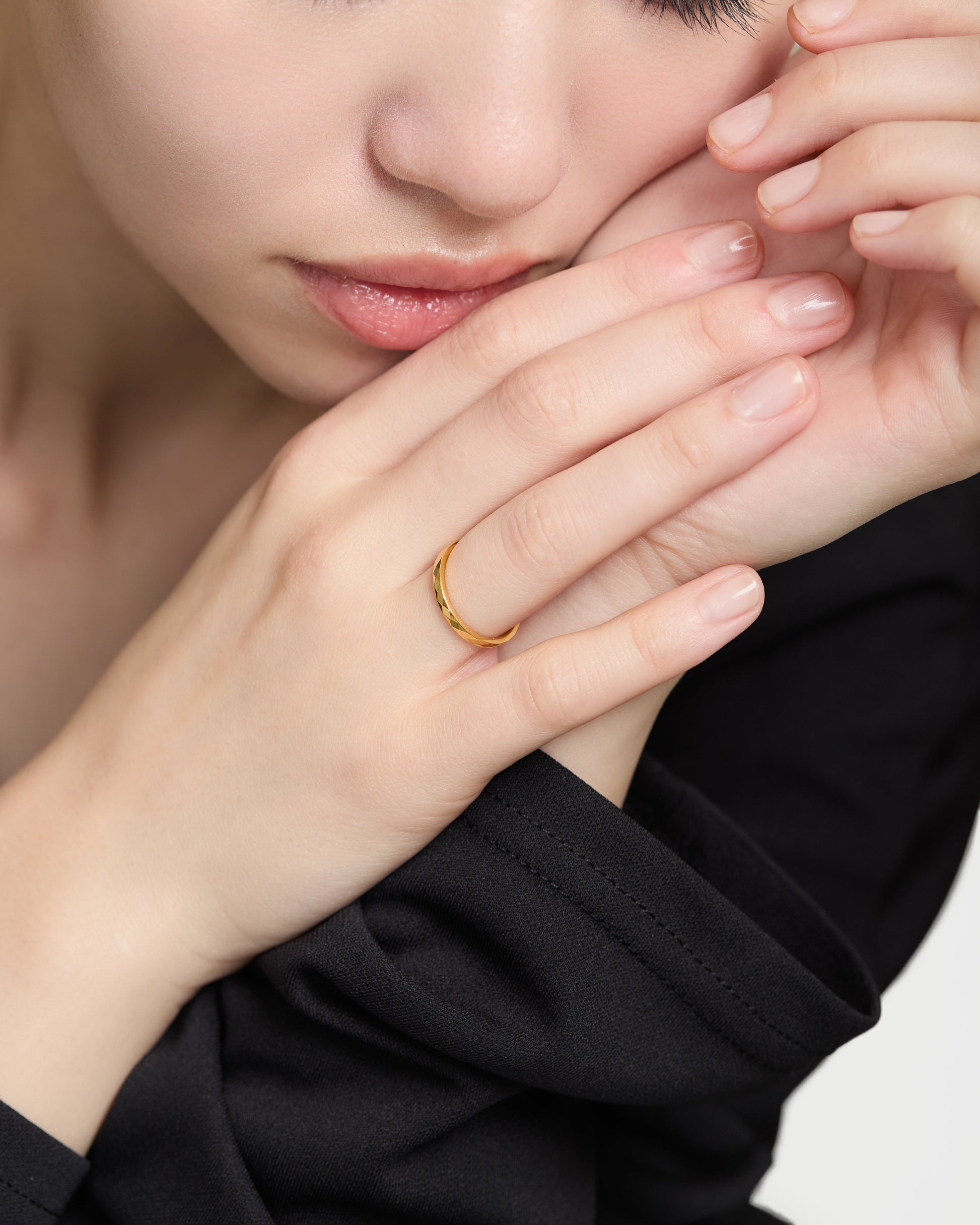 ひとつで纏めても、他のリングとのレイヤードを楽しんでも美しいバランスに。