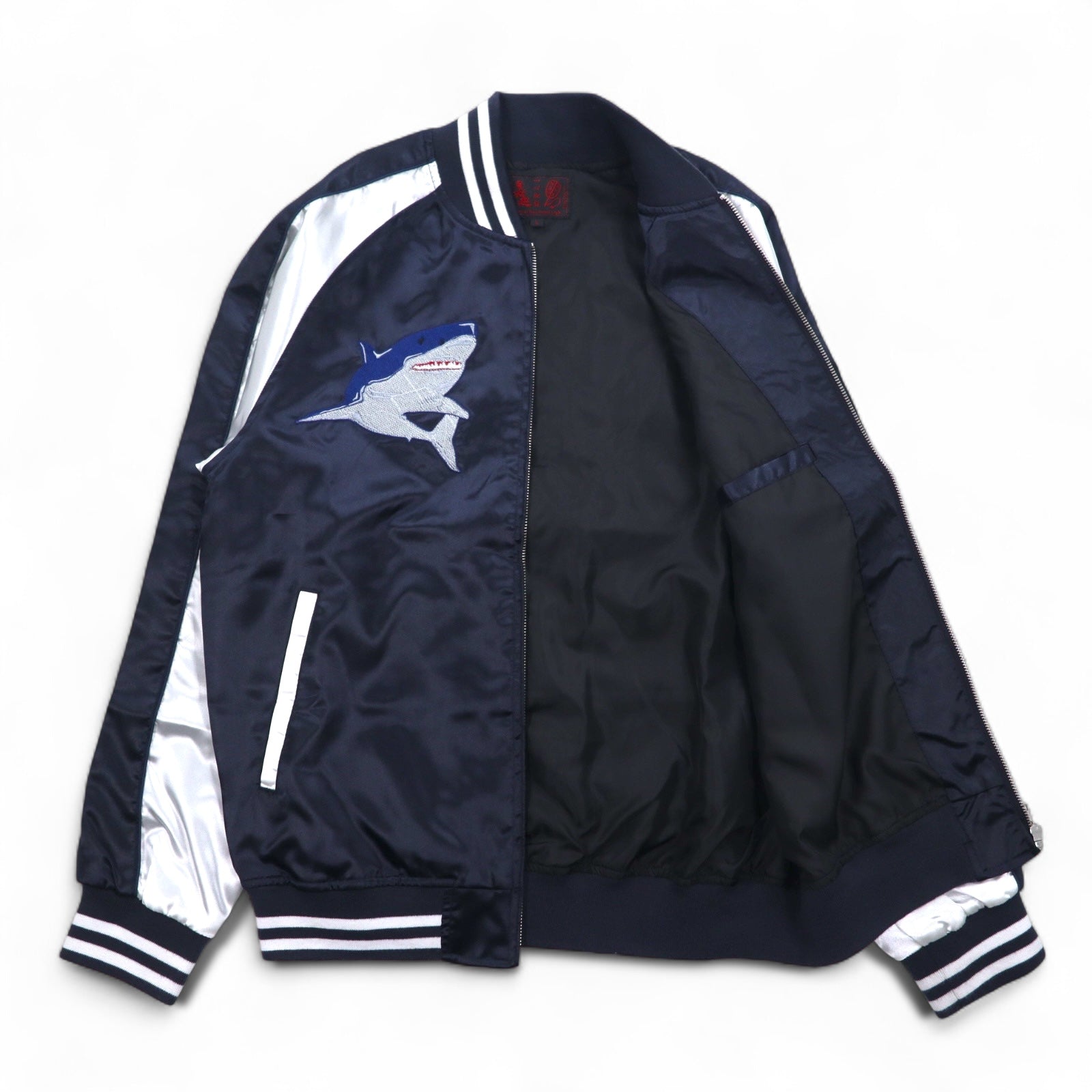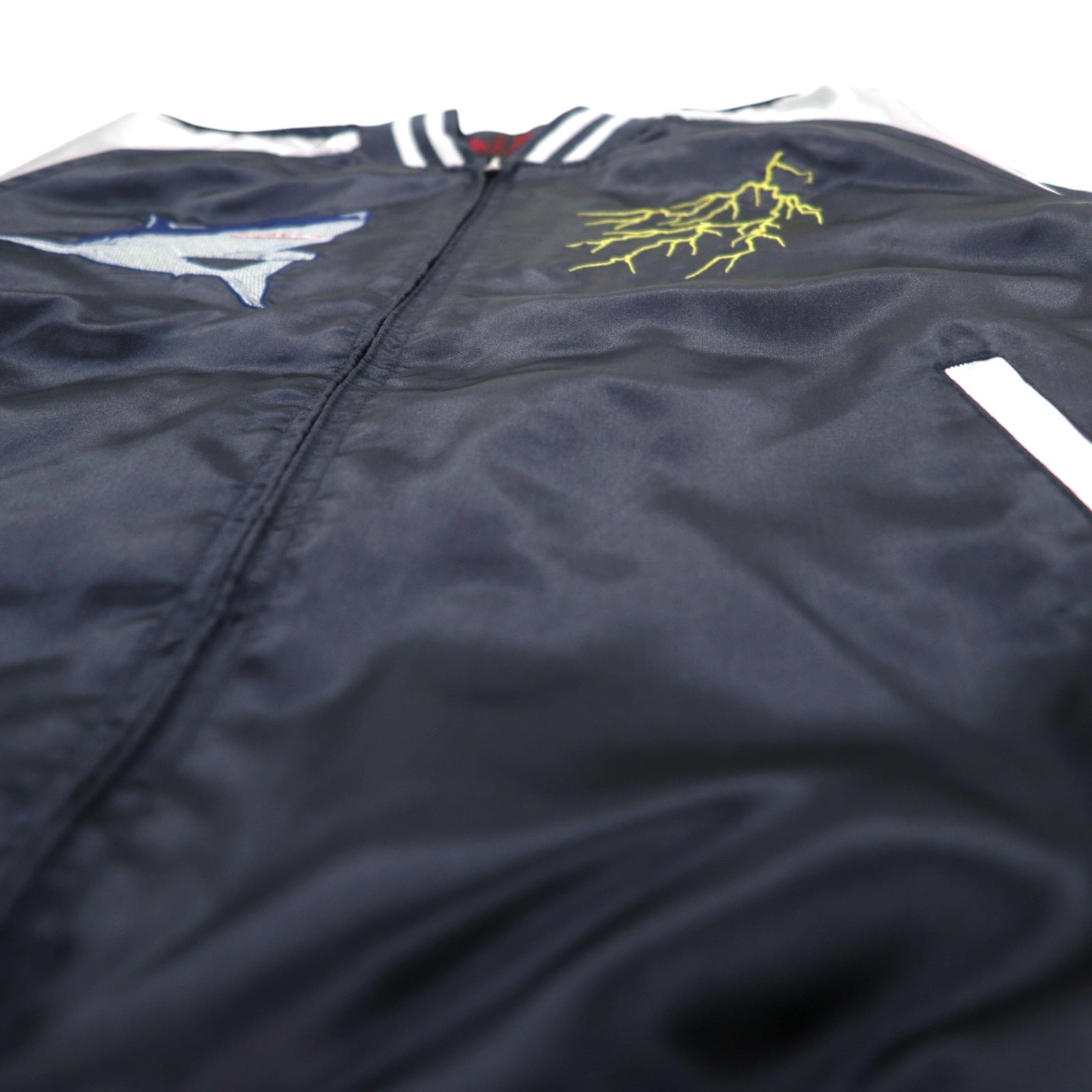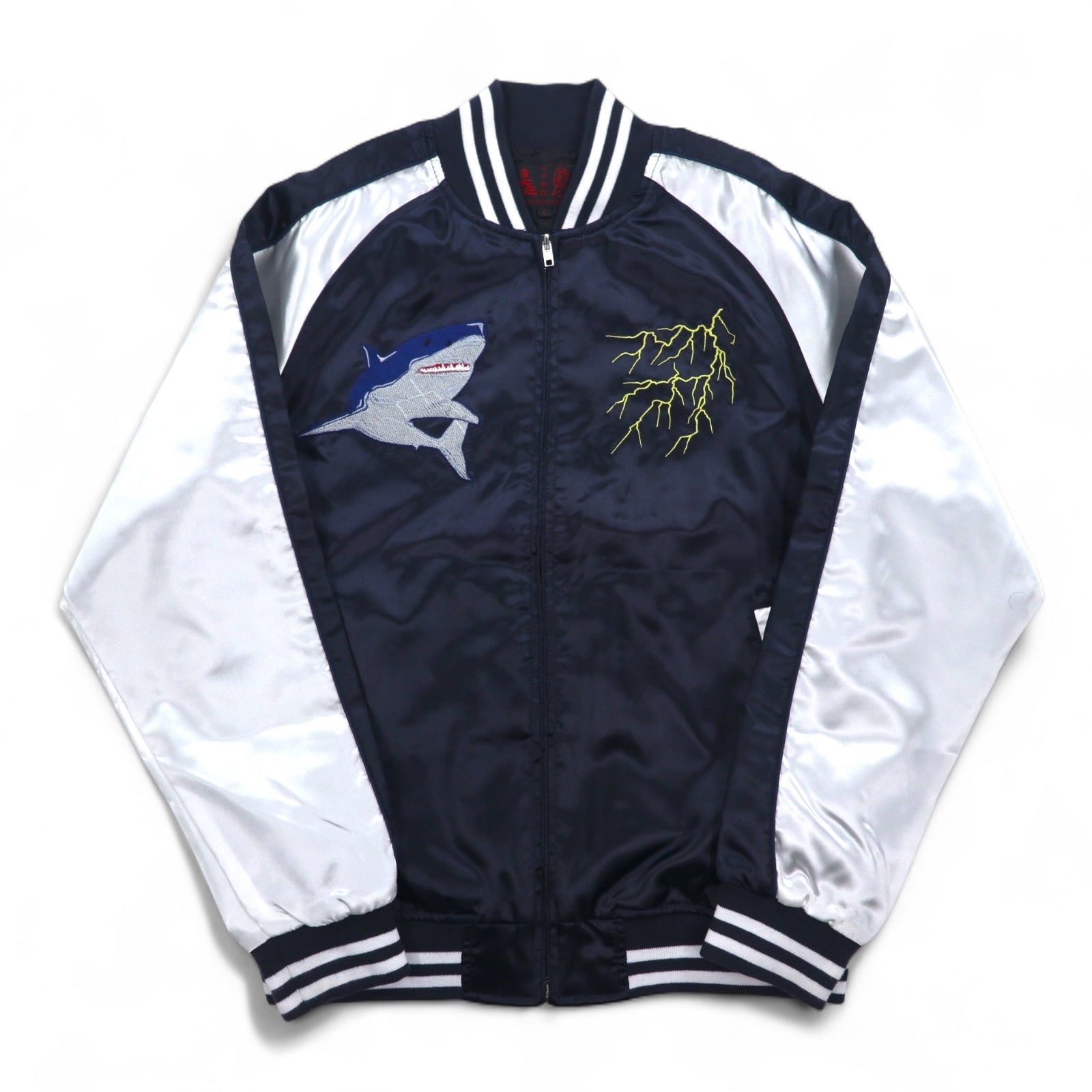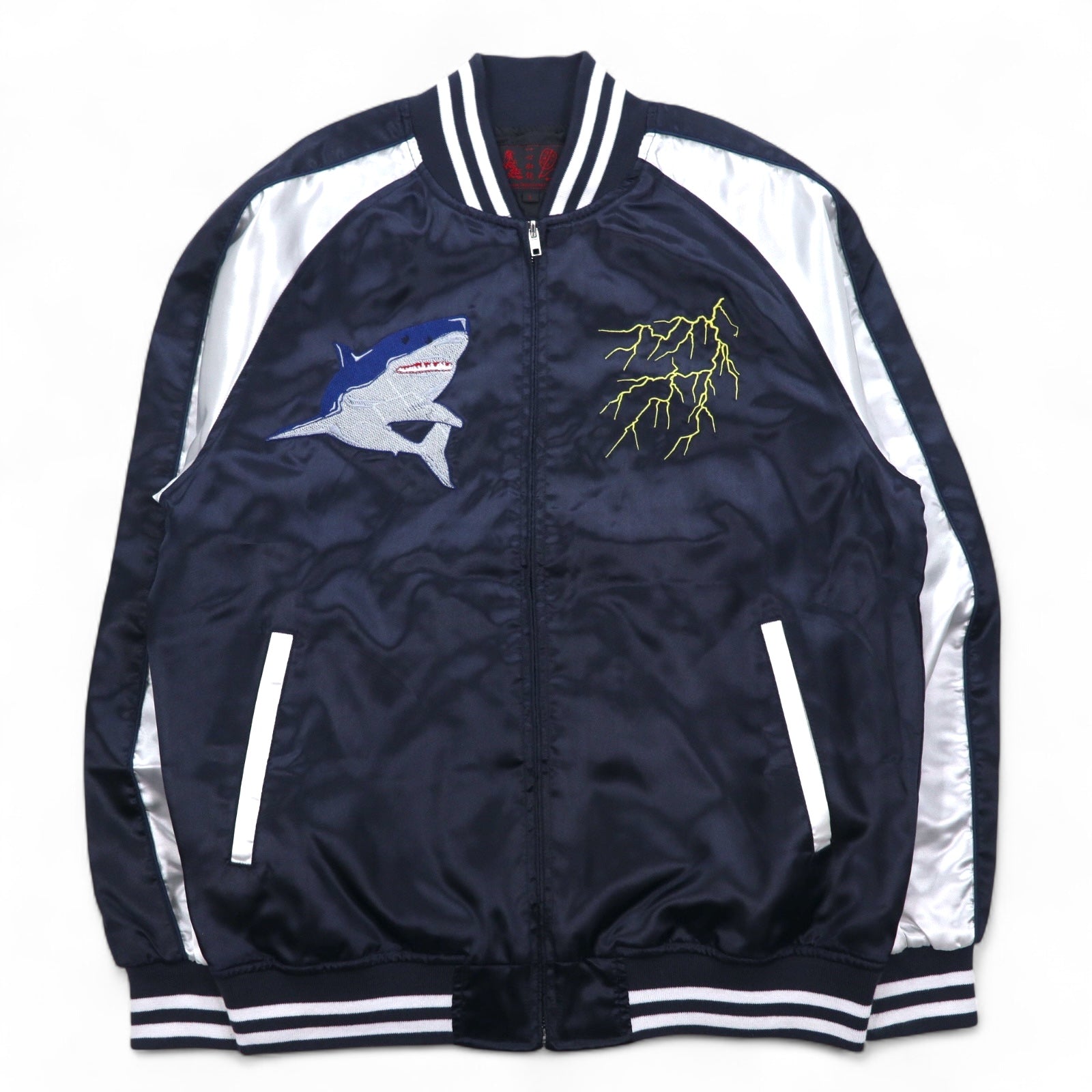 一心如鏡 スカジャン L ブラック シルバー ポリエステル サメ 龍 刺繍 53103