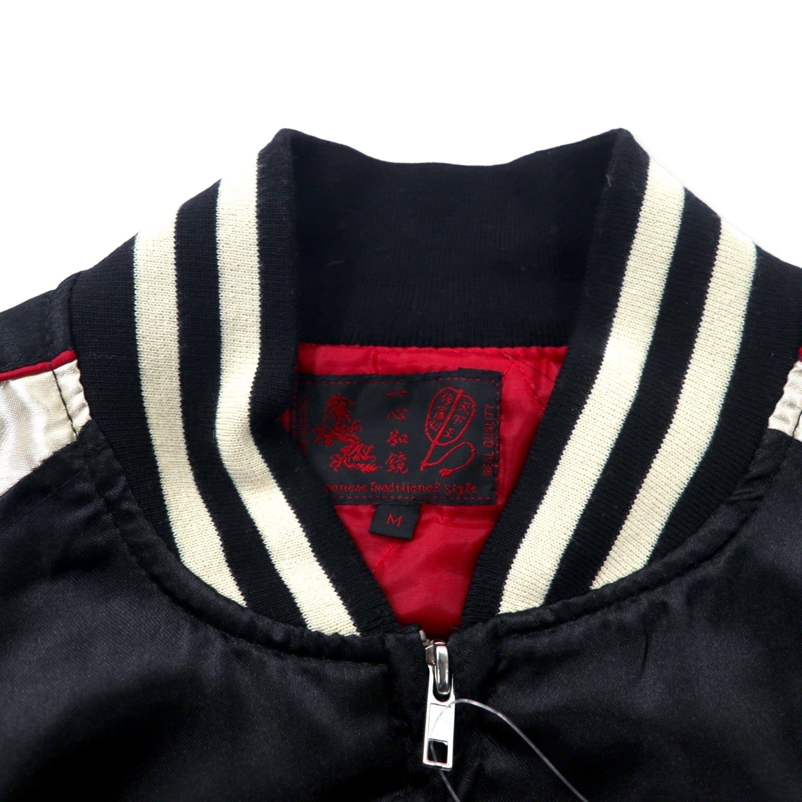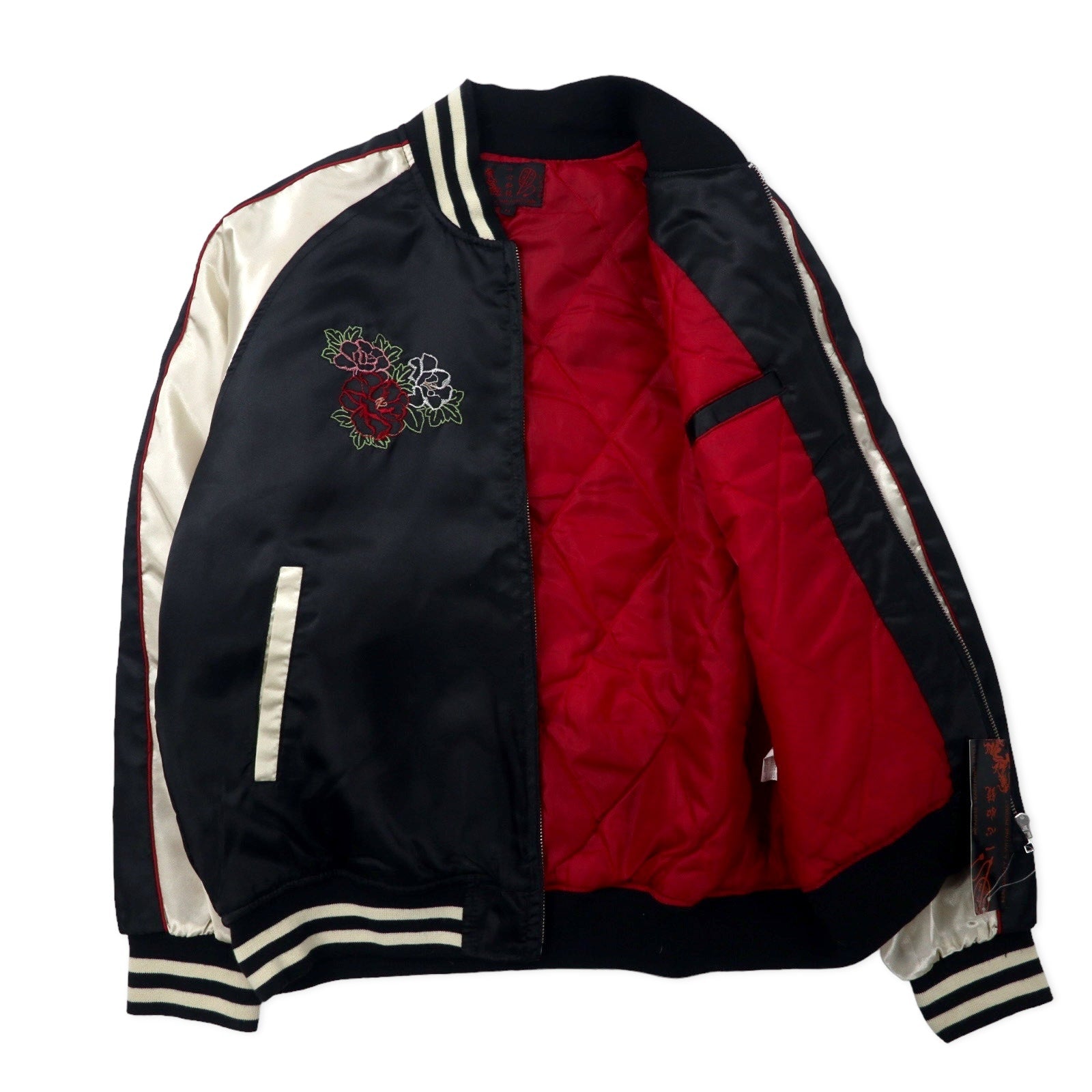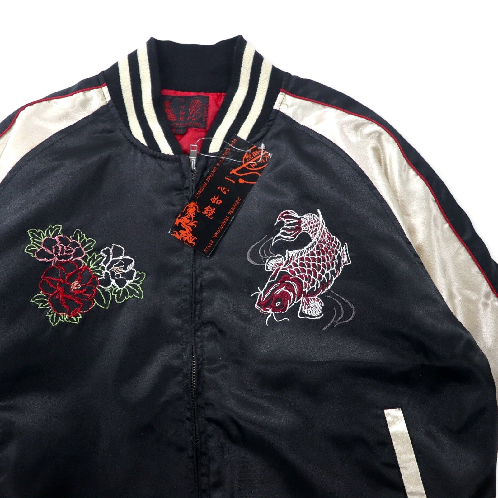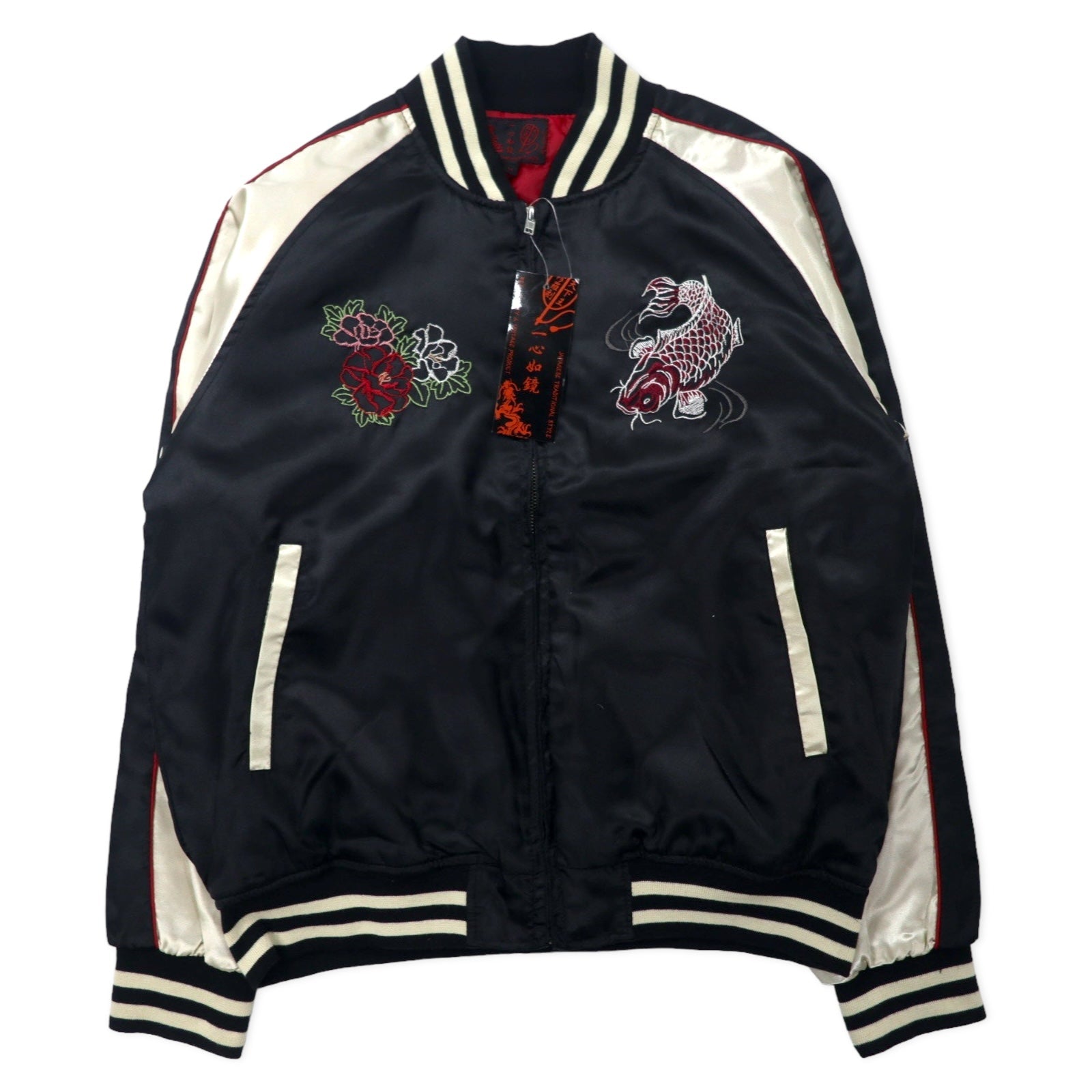 一心如鏡 スカジャン M ブラック ポリエステル キルティングライナー 錦鯉 ハイビスカス 刺繍 未使用品