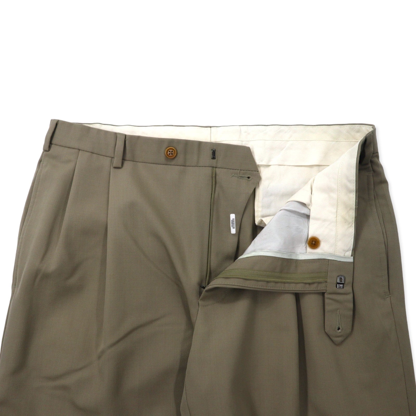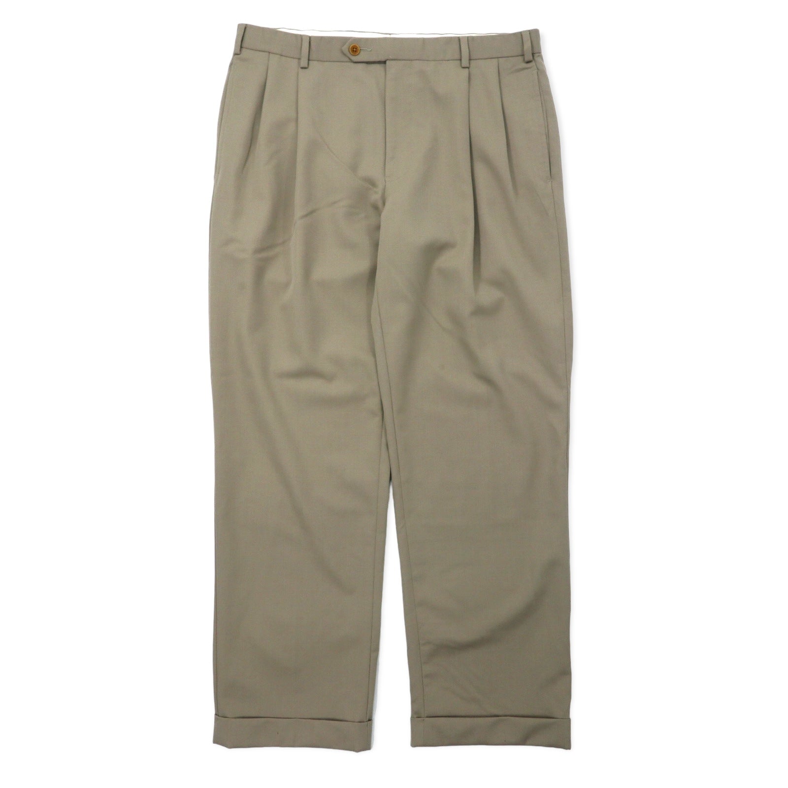 346 BROOKS BROTHERS 2タック ワイド スラックスパンツ 36 ベージュ ウール MADISON FIT