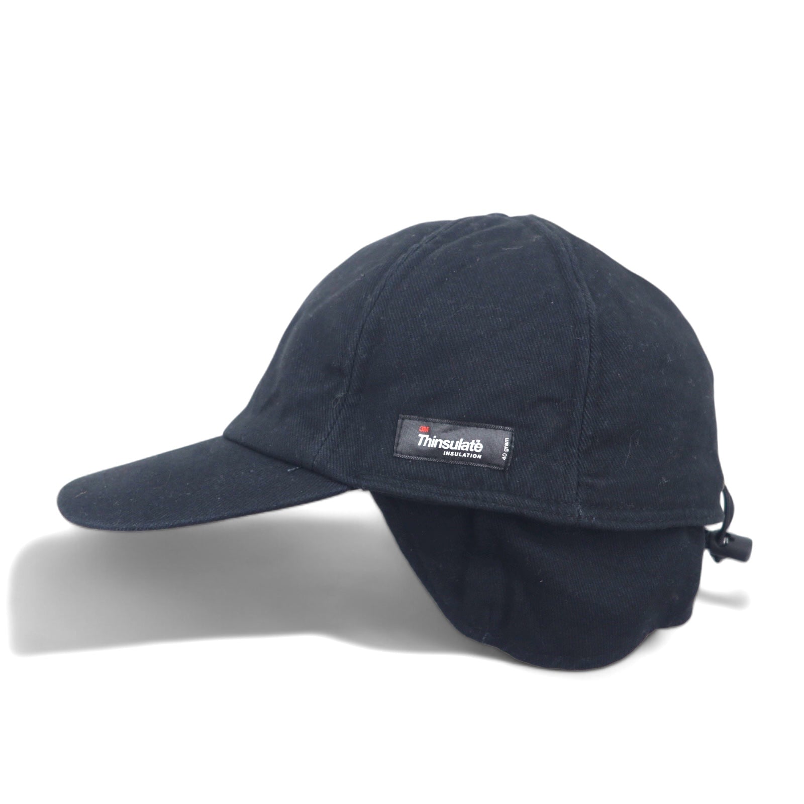 3M Thinsulate INSULATION Teflon ベースボールキャップ L ブラック コットン 中綿 耳あて イヤーフラップ 裏地フリース ドローコード 未使用品