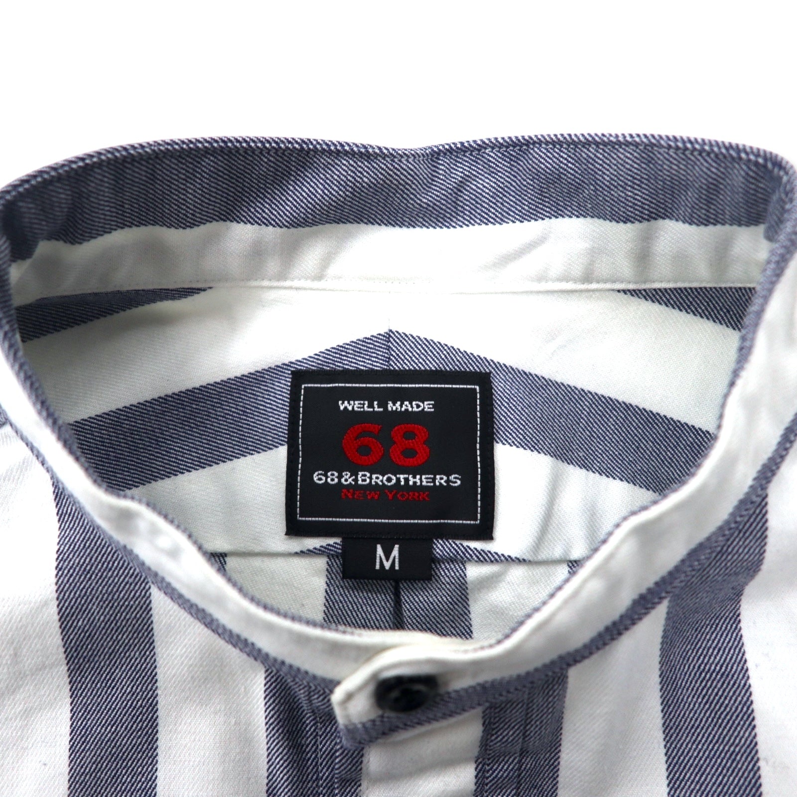 68 & BROTHERS バンドカラーシャツ M ホワイト ストライプ コットン 日本製