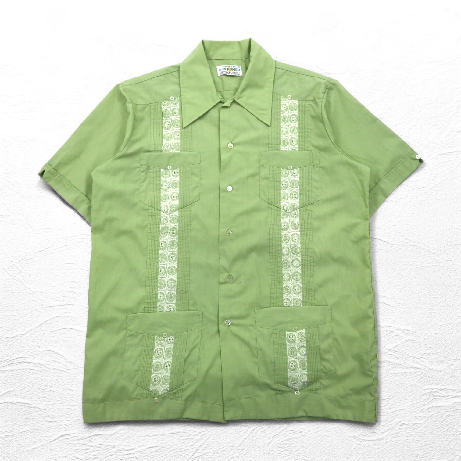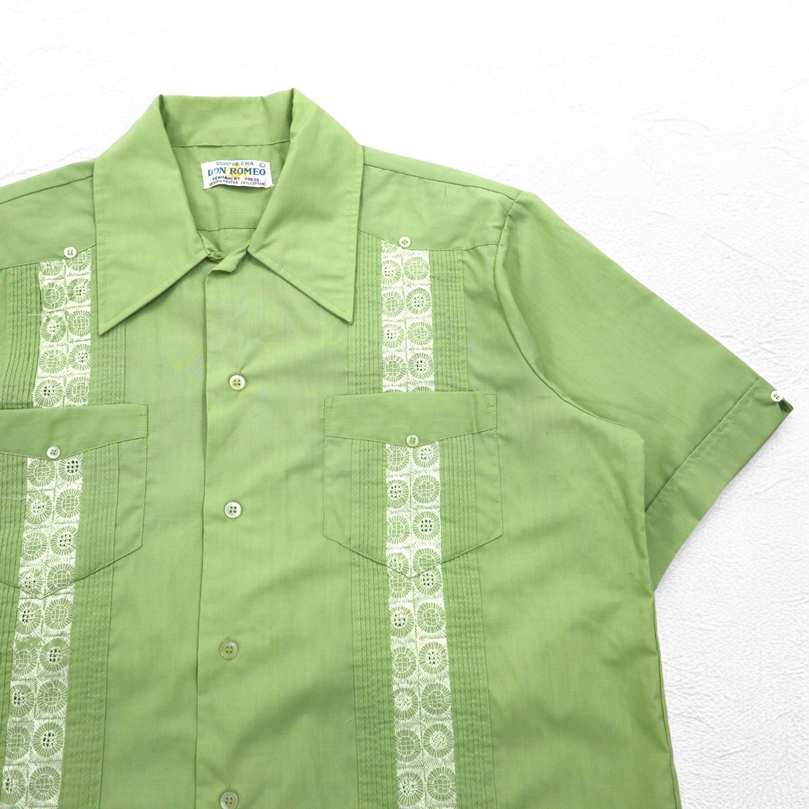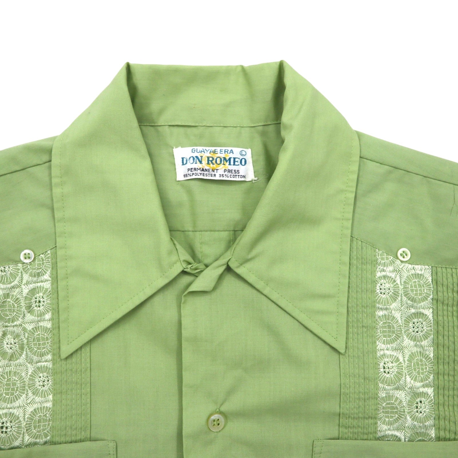 70年代 DON ROMEO キューバシャツ L グリーン ポリエステル コットン マルチポケット