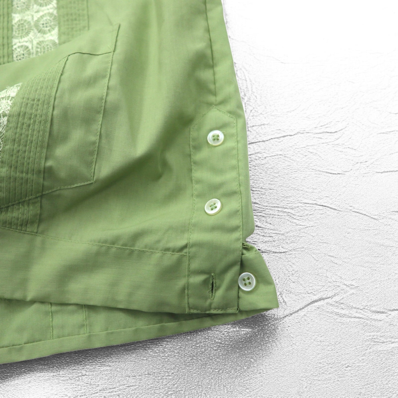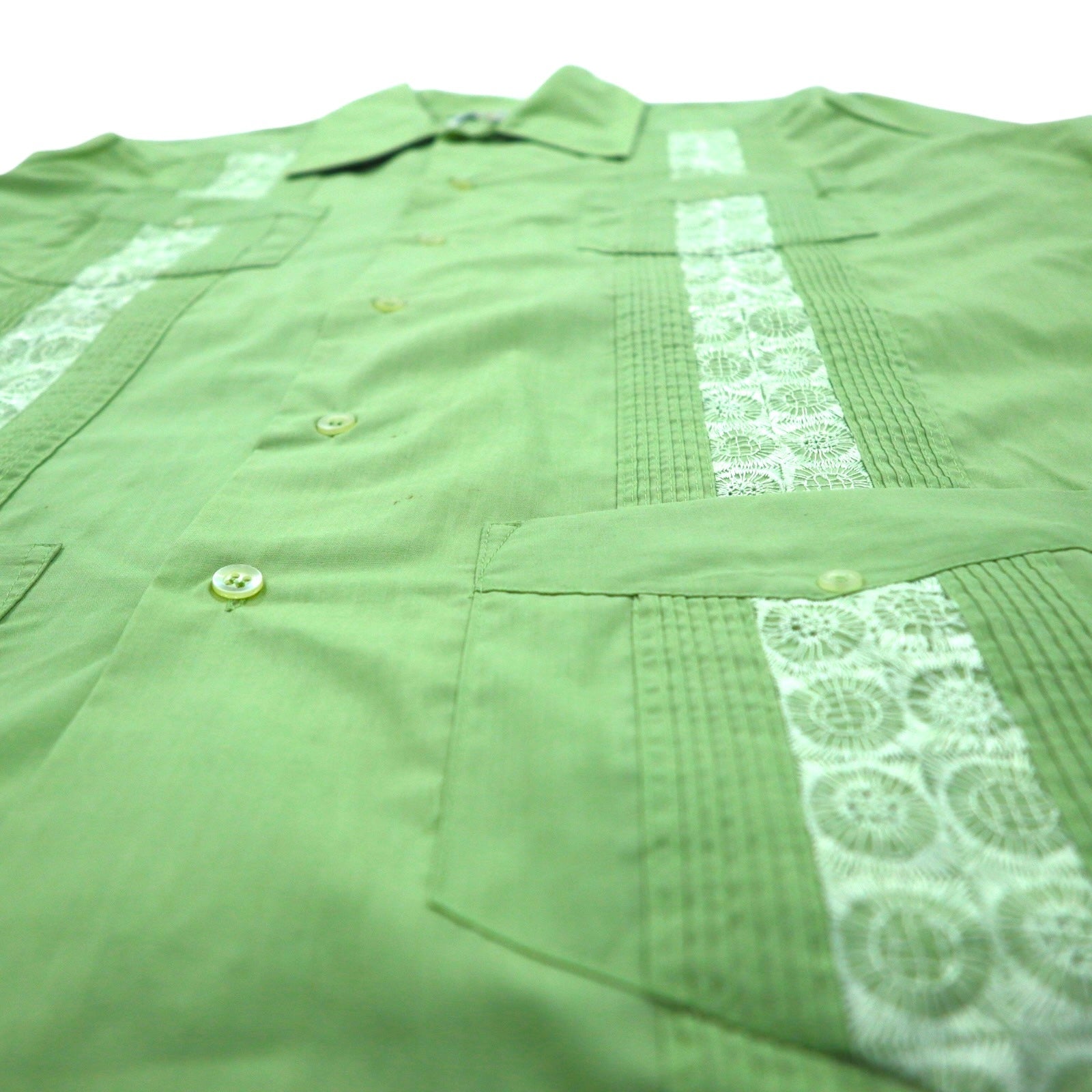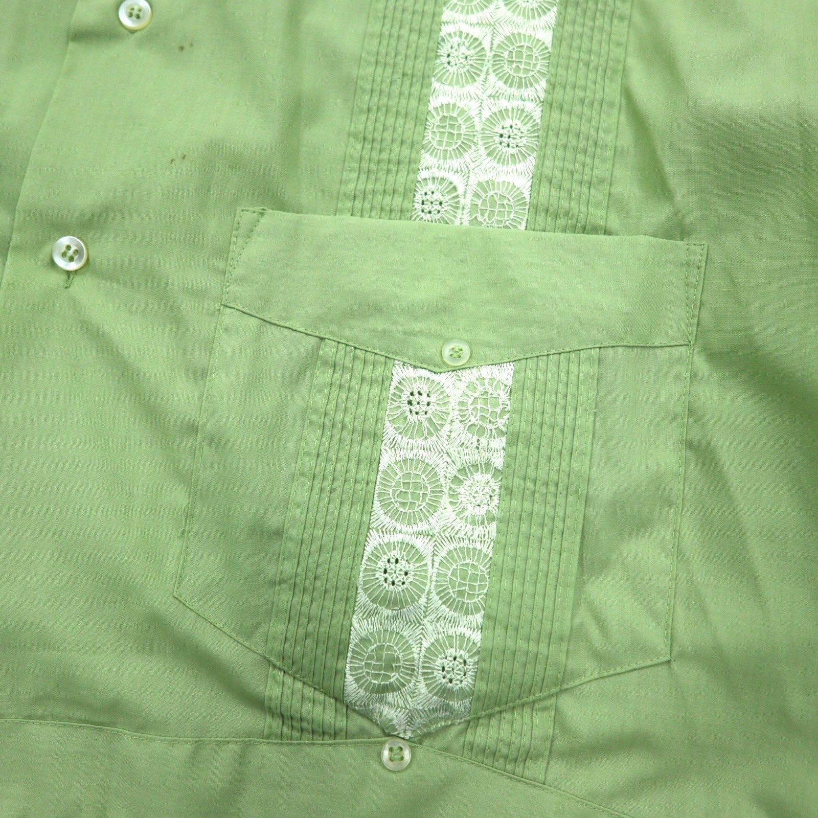 70年代 DON ROMEO キューバシャツ L グリーン ポリエステル コットン マルチポケット