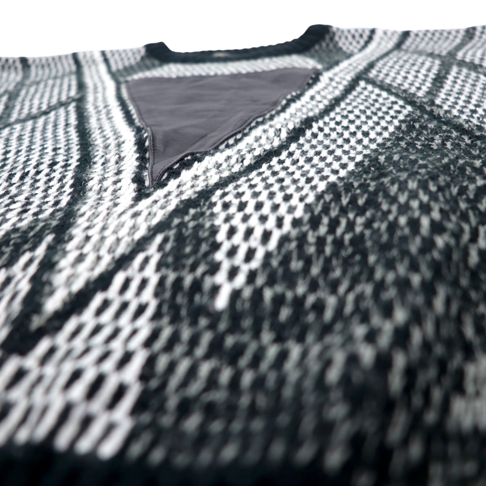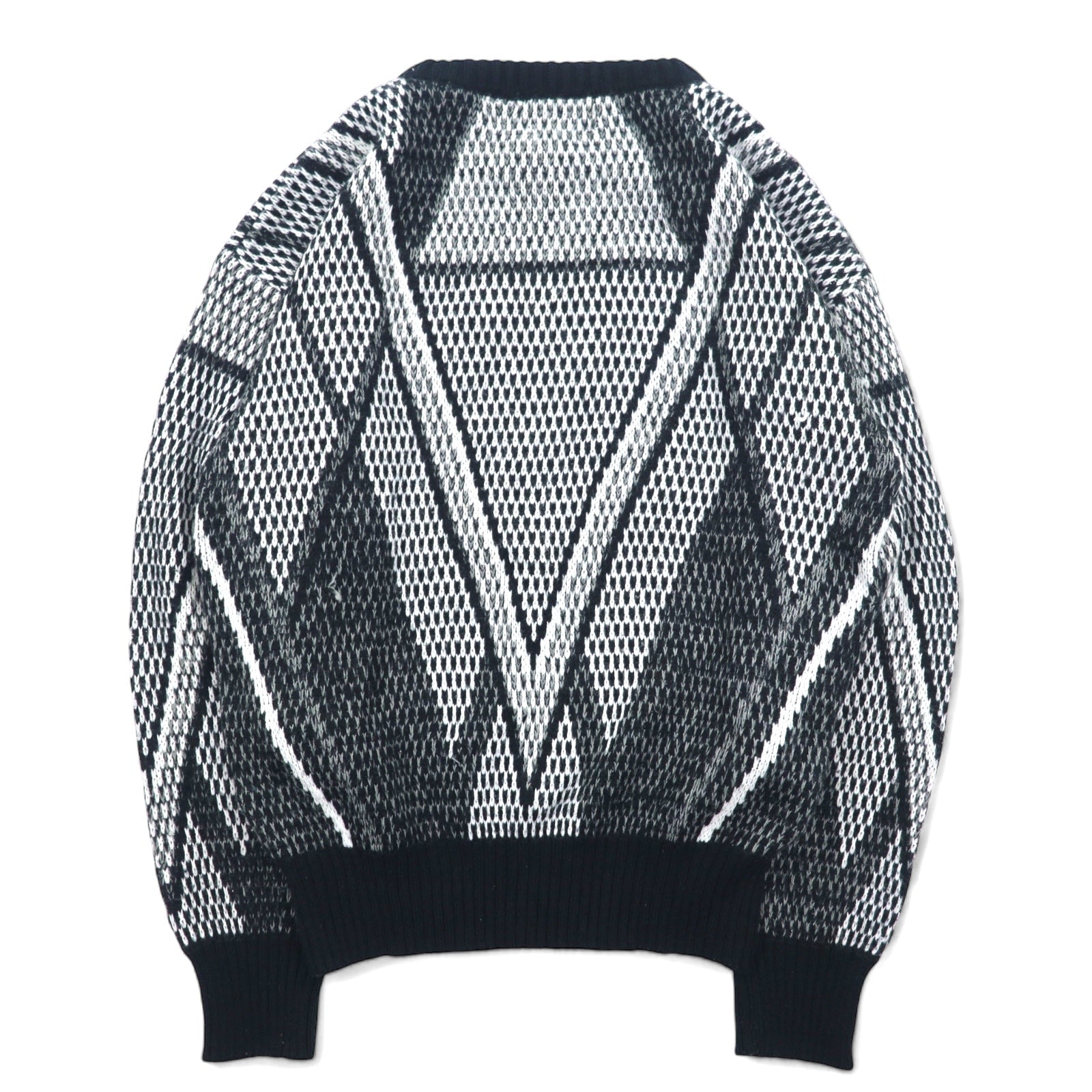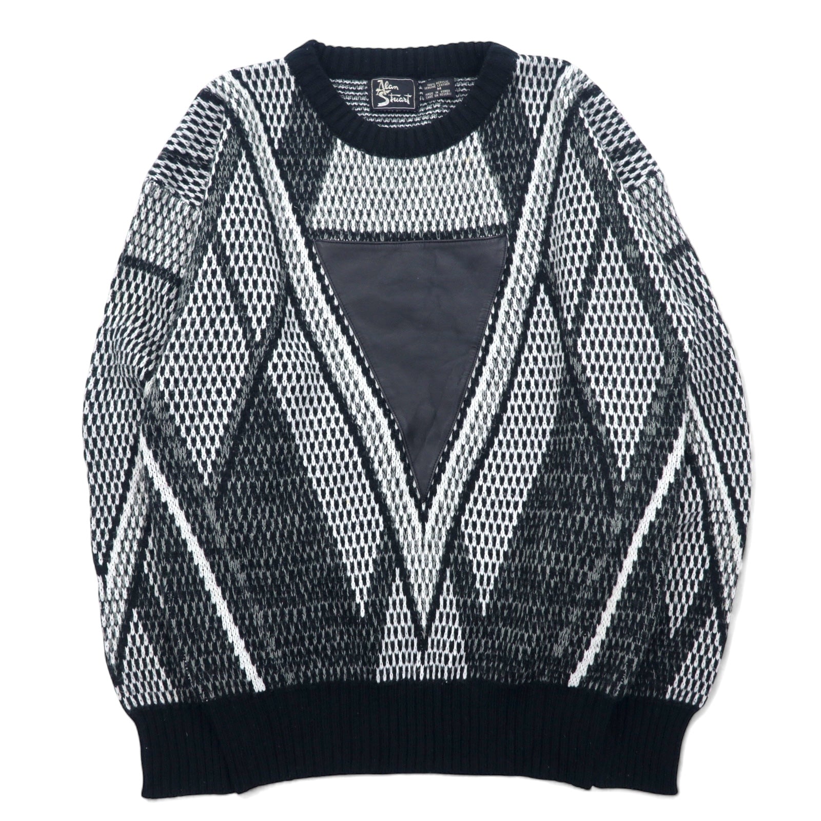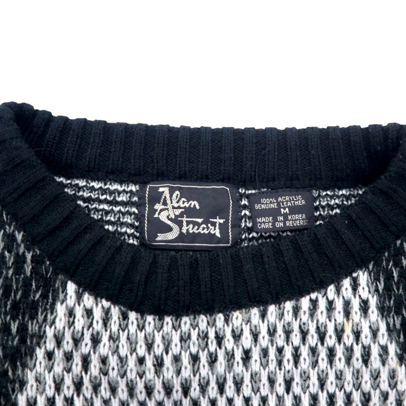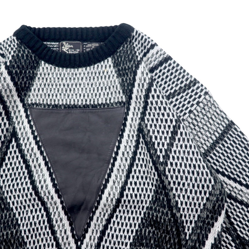 90年代 Alan Stuart 総柄 ニット セーター M ブラック グレー アクリル 幾何学柄 レザー切替