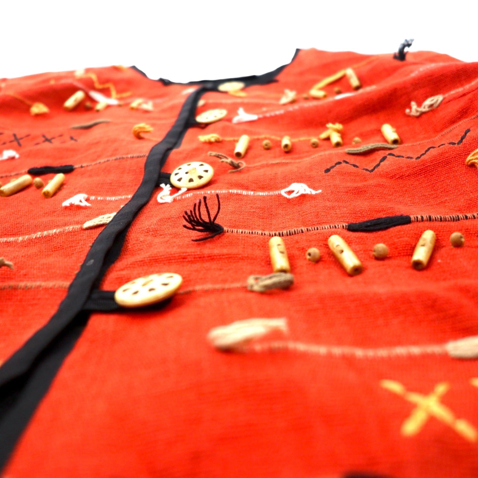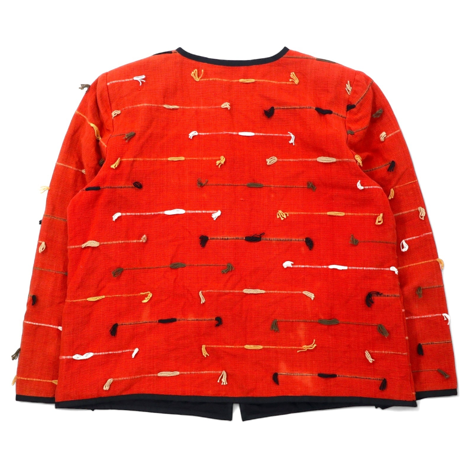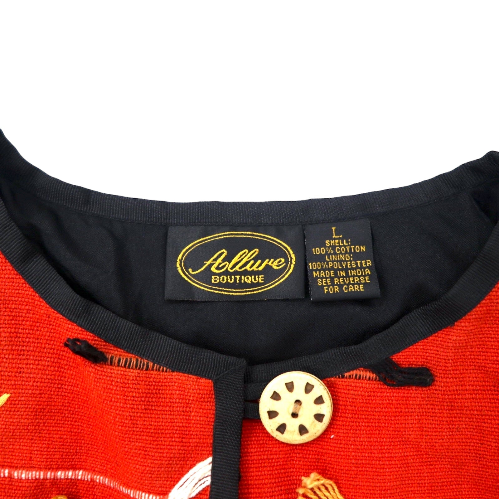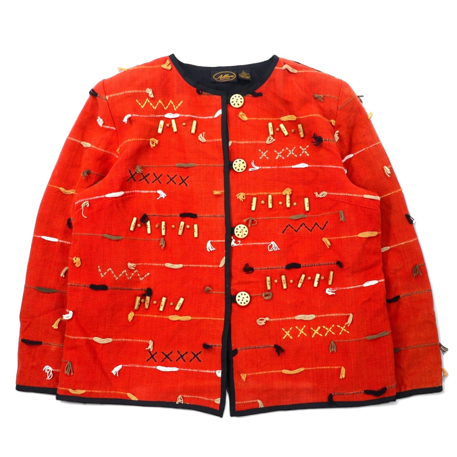 90年代 Allure BOUTIQUE レトロ デザイン刺繍 ノーカラージャケット L オレンジ コットン