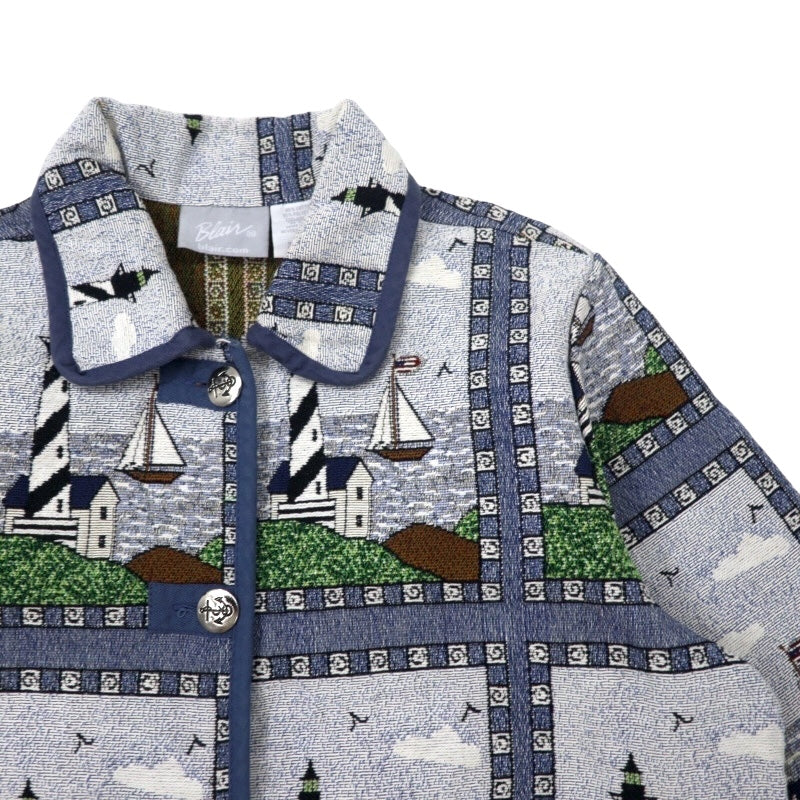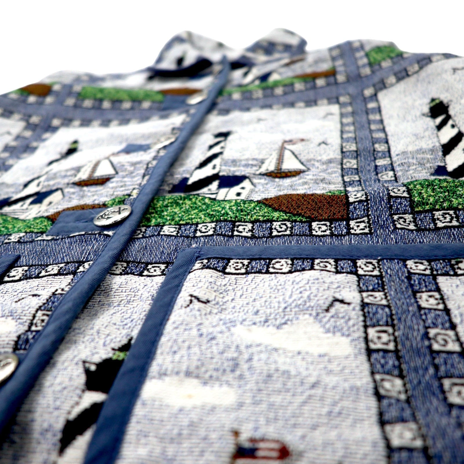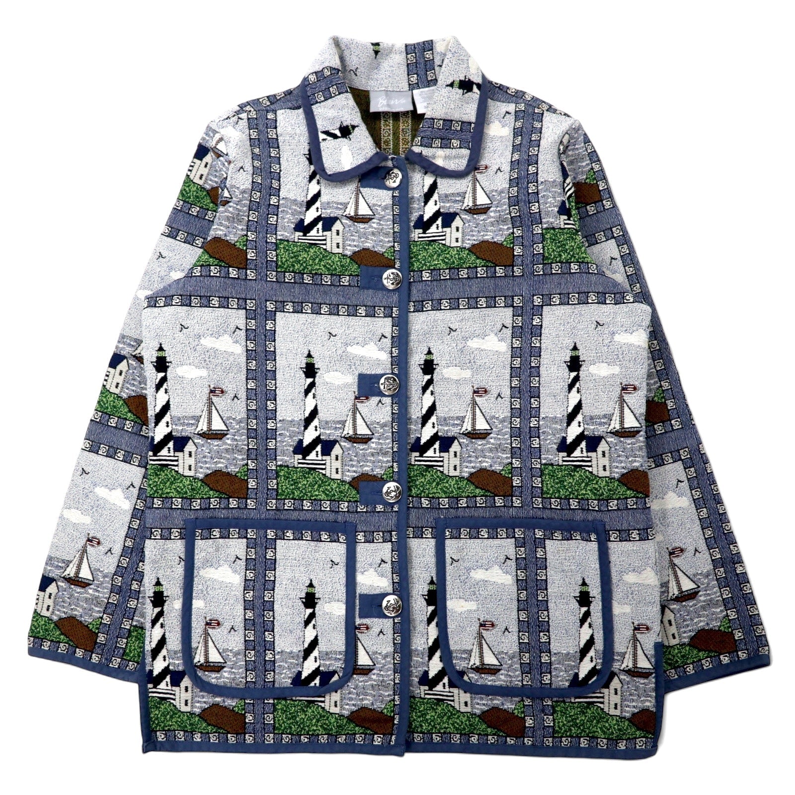 90年代 Blair ゴブラン織 ジャガード ジャケット M ブルー 総柄 灯台 コットン