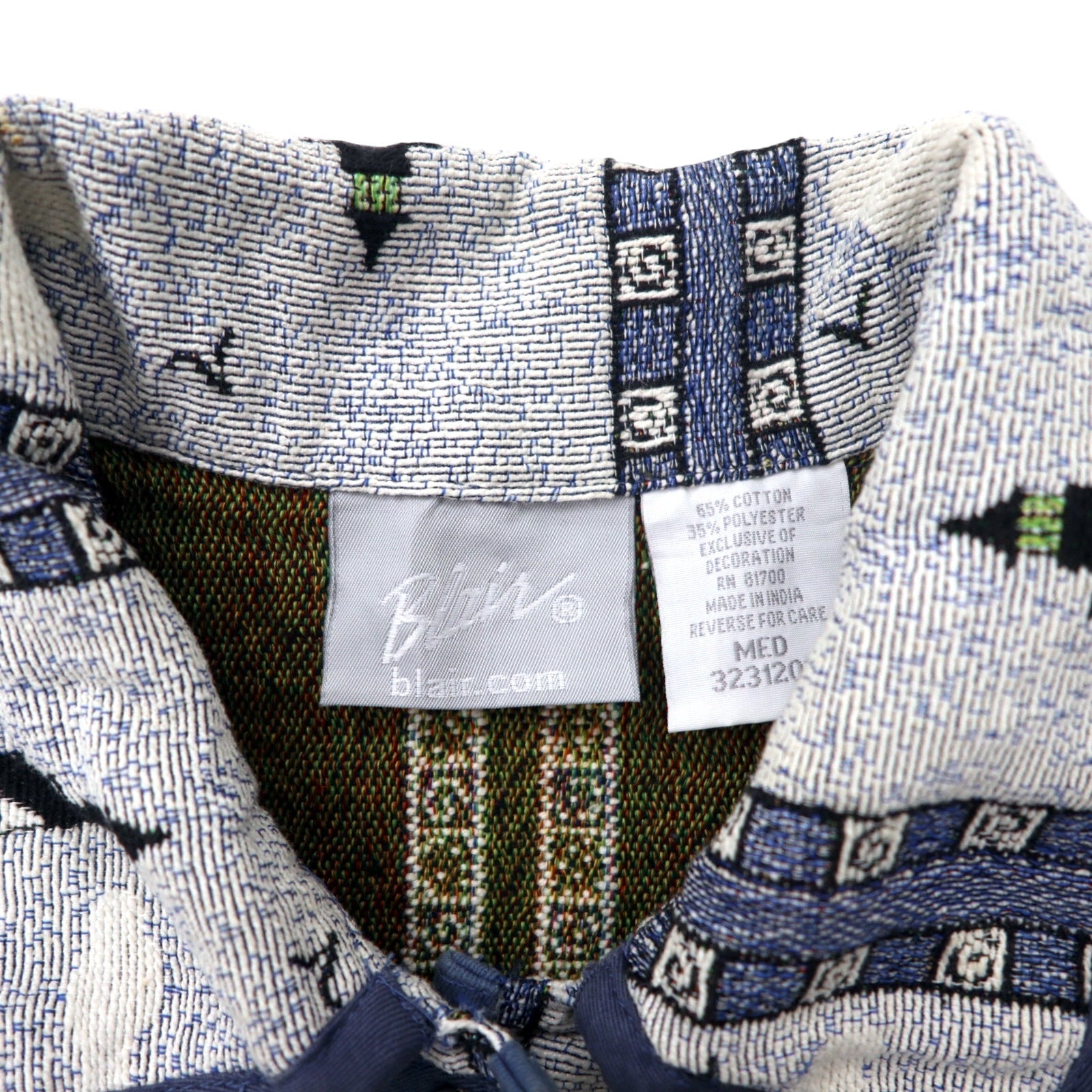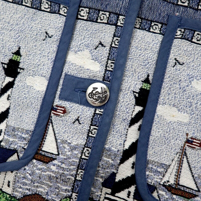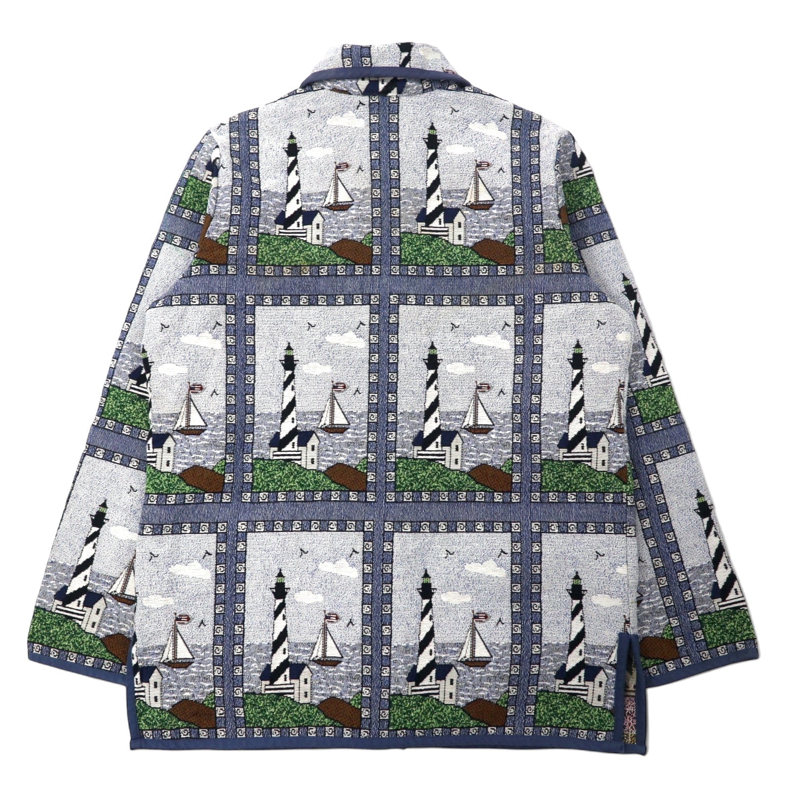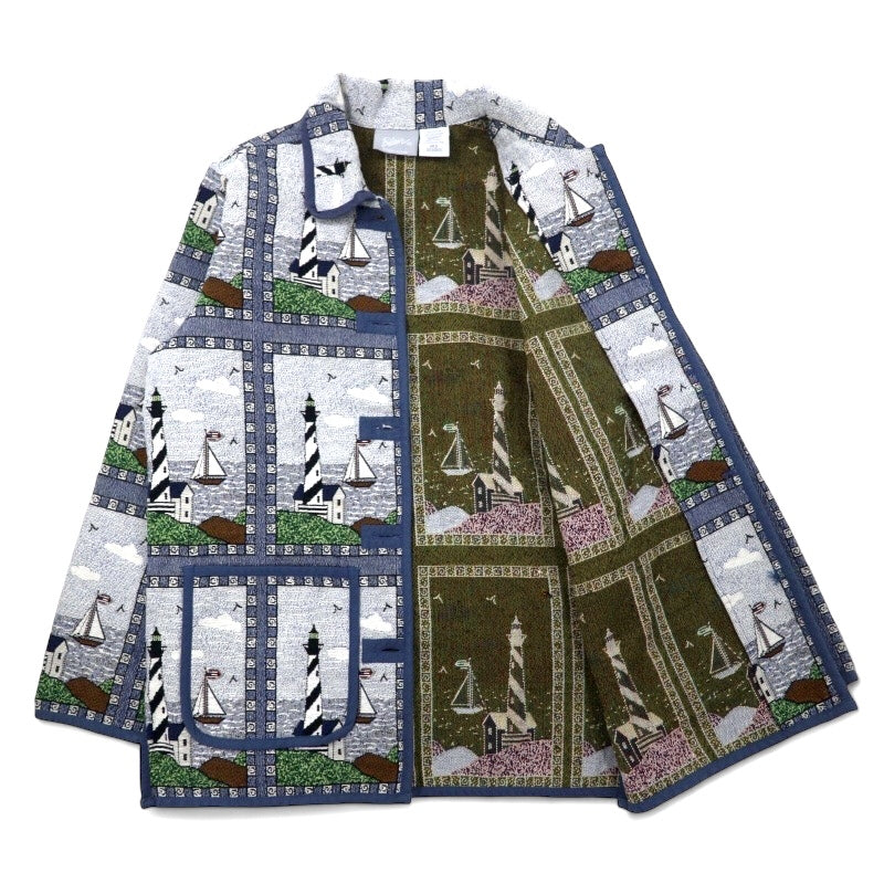 90年代 Blair ゴブラン織 ジャガード ジャケット M ブルー 総柄 灯台 コットン