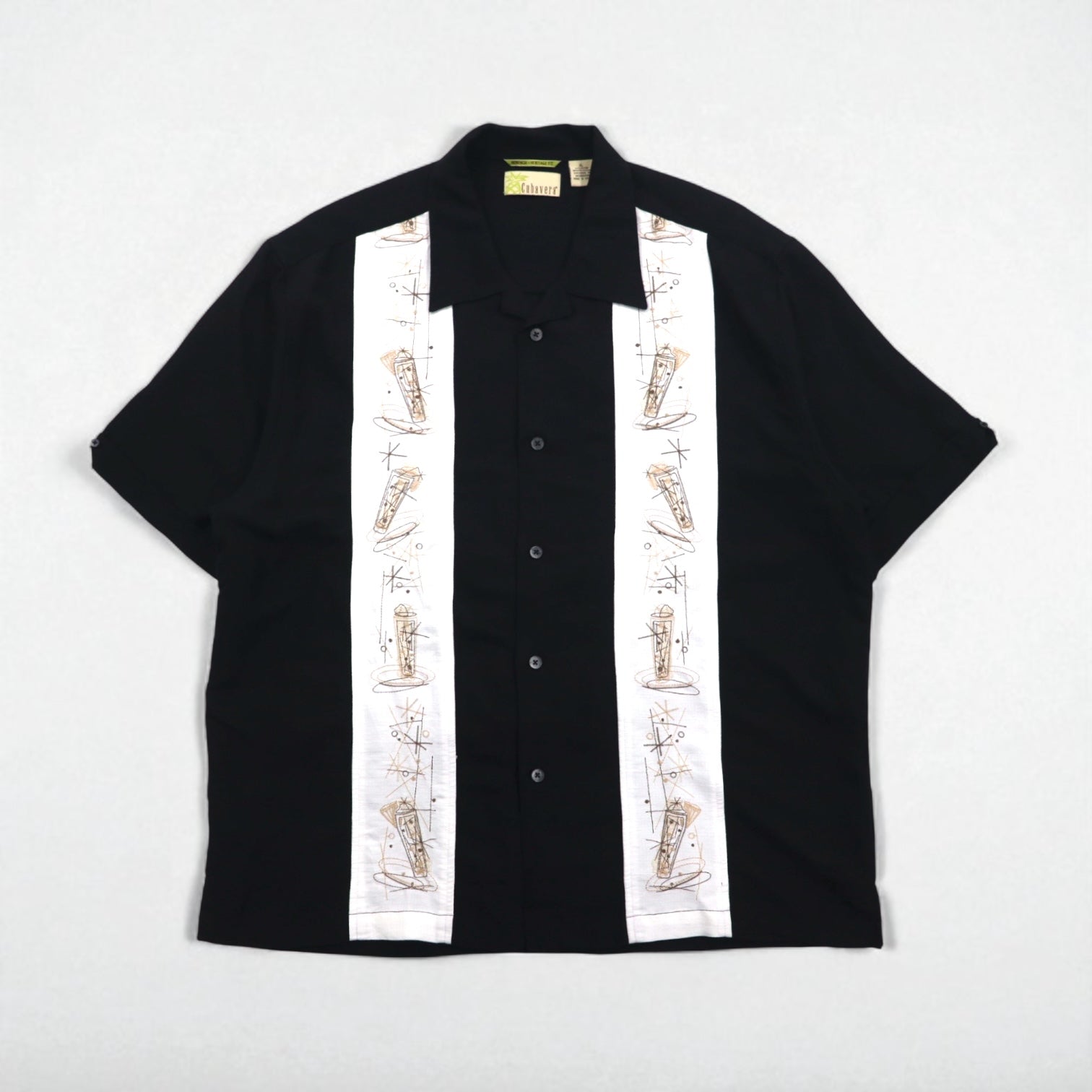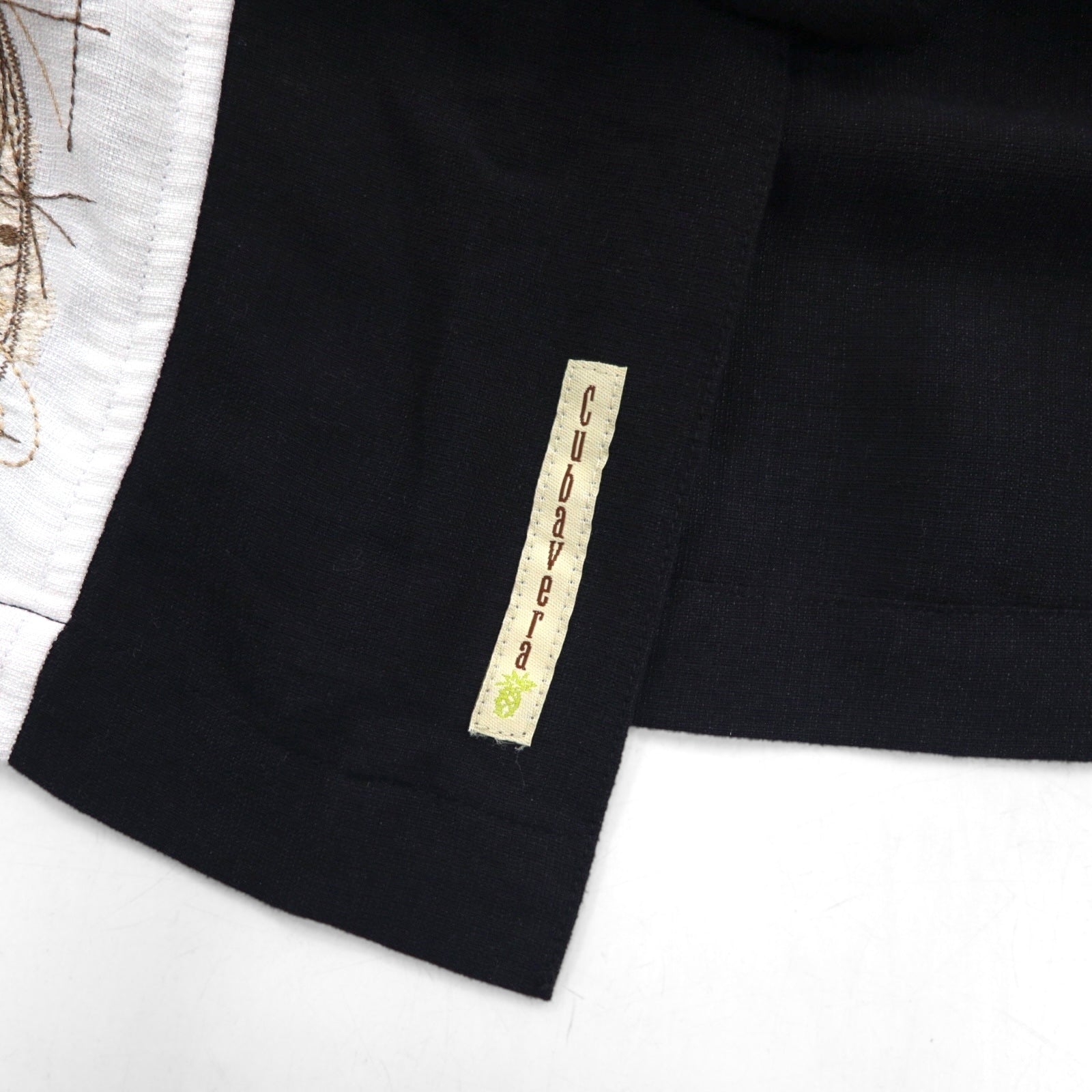 90年代 Cubavera オープンカラー キューバシャツ XL ブラック レーヨン ボックス ラインデザイン 開襟 HERITAGE FIT 刺子 刺繍