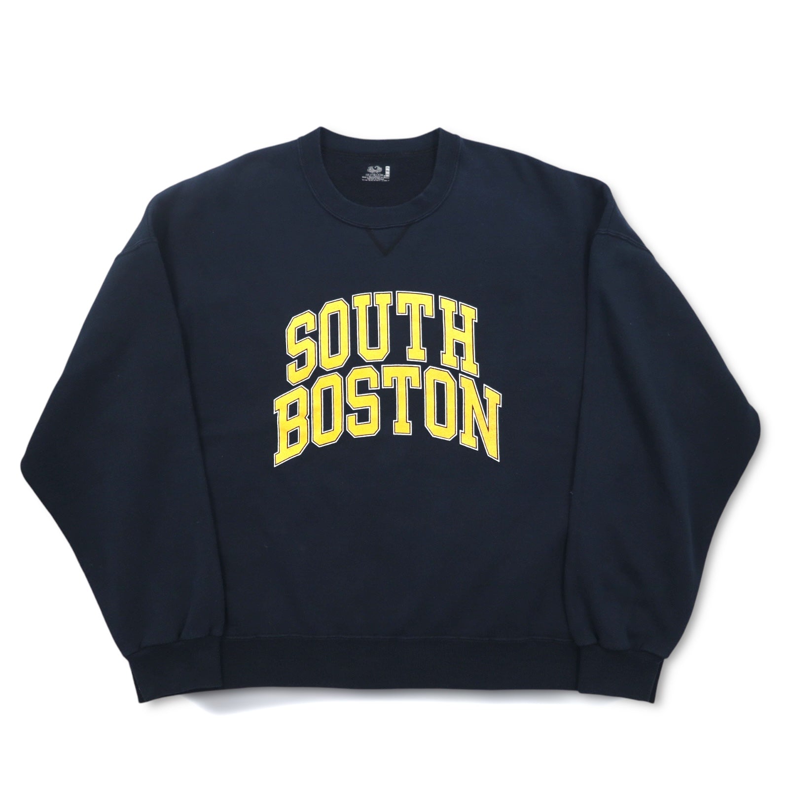90年代 FRUIT OF THE LOOM カレッジプリント スウェット 3XL ネイビー SOUTH BOSTON アーチロゴ 前V メキシコ製