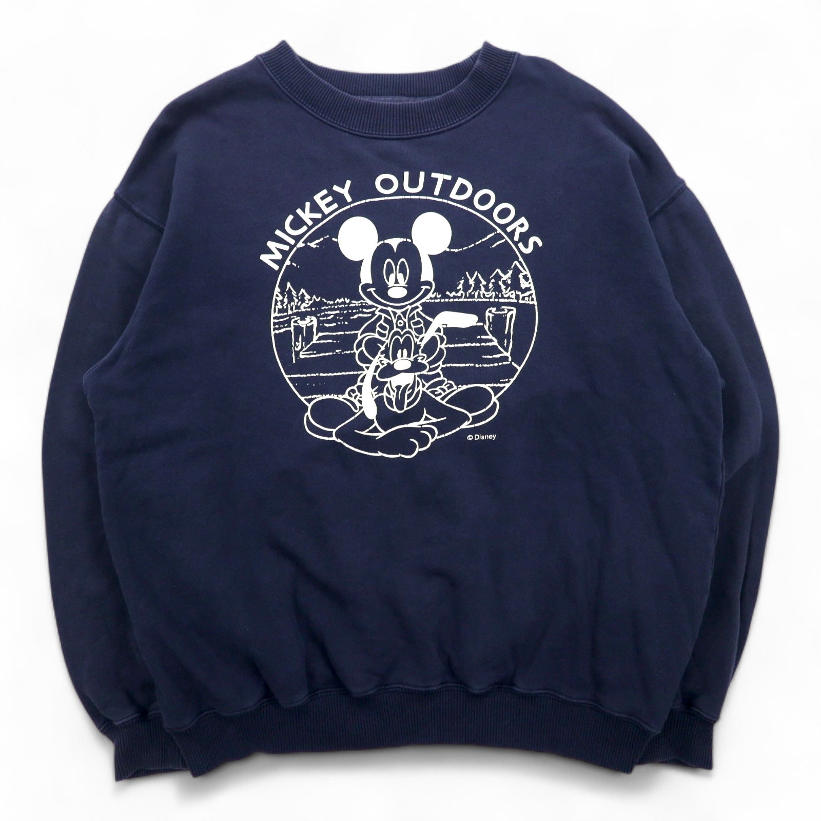 90年代 LOGOS × Disney キャラクタープリント スウェット S ネイビー ミッキー MICKEY OUTDOORS