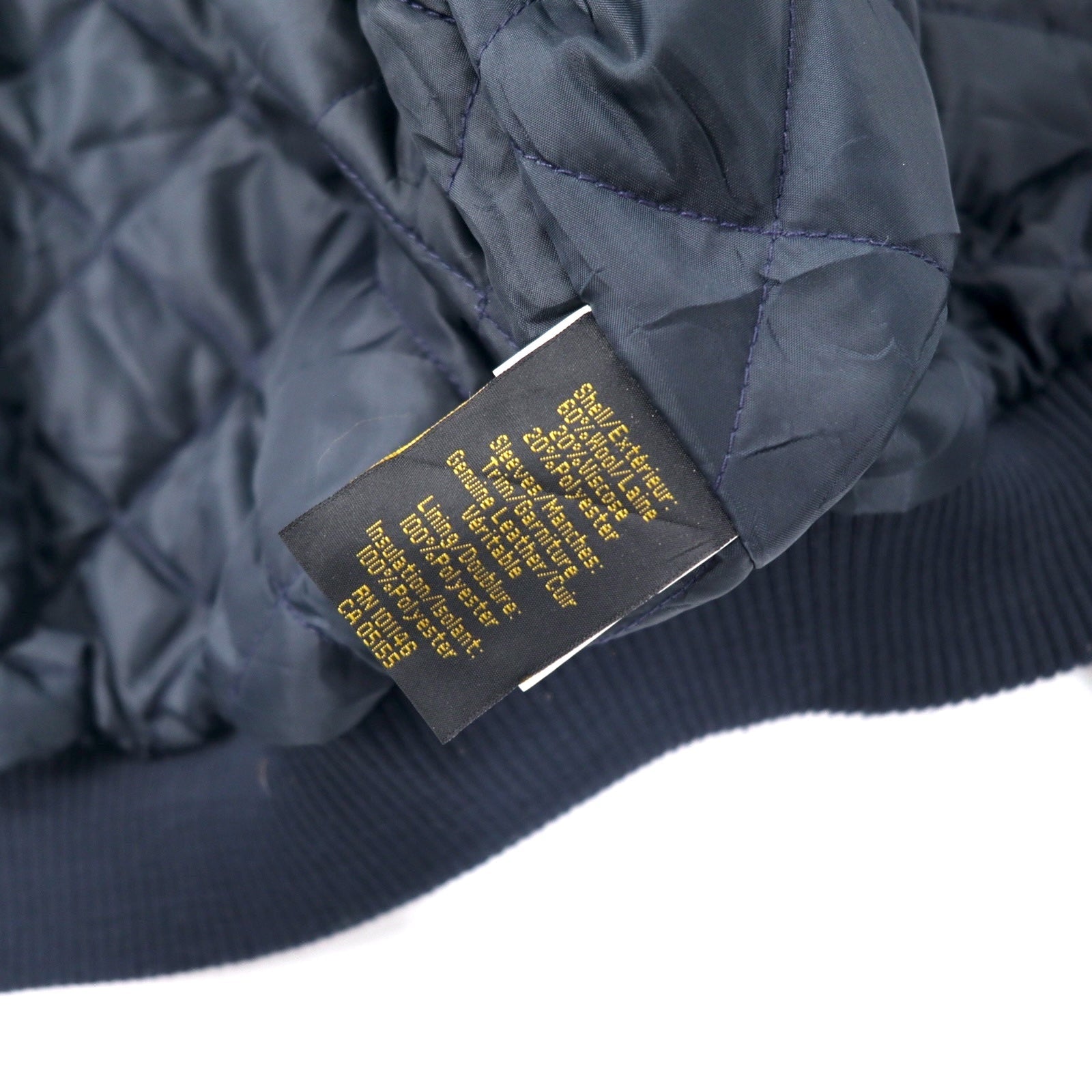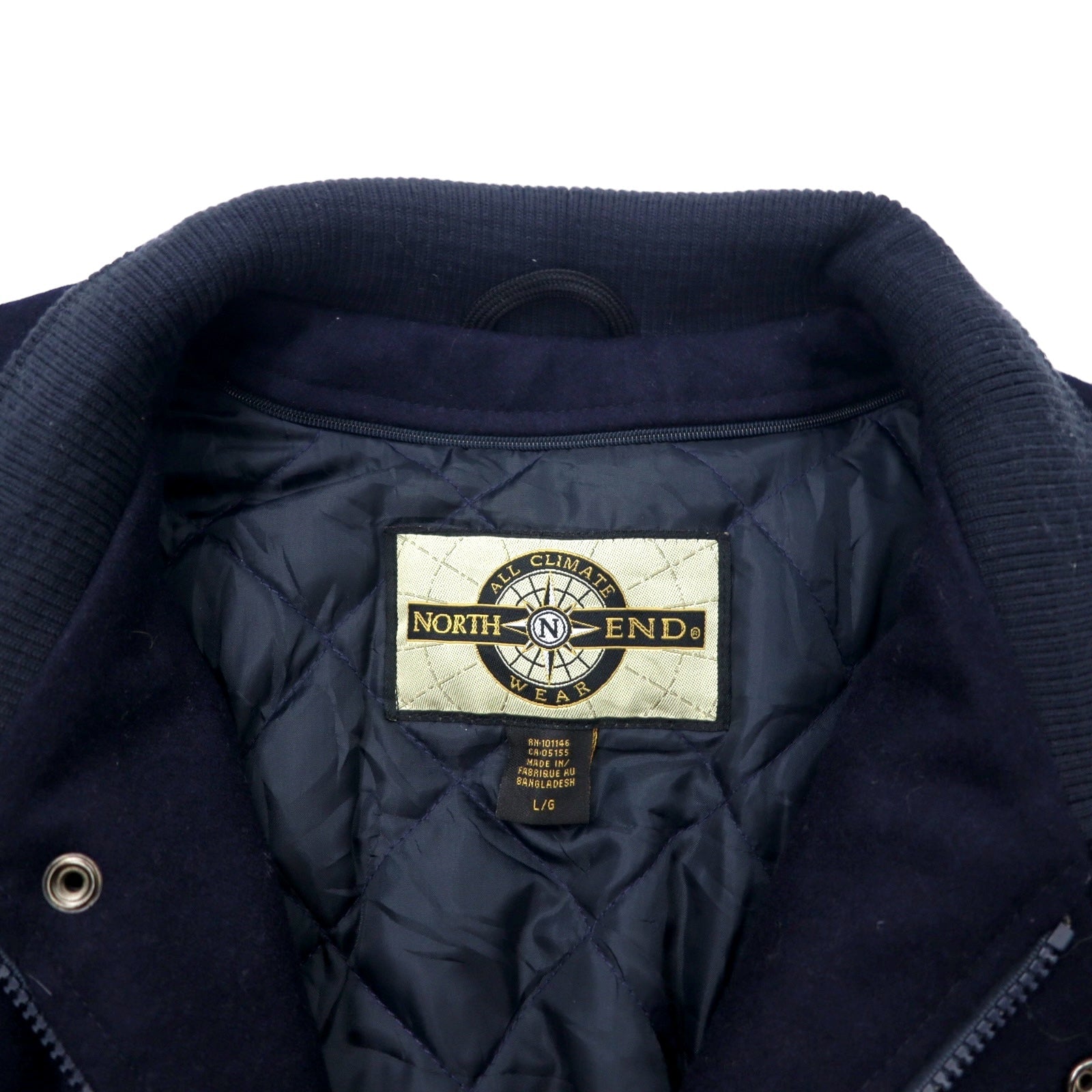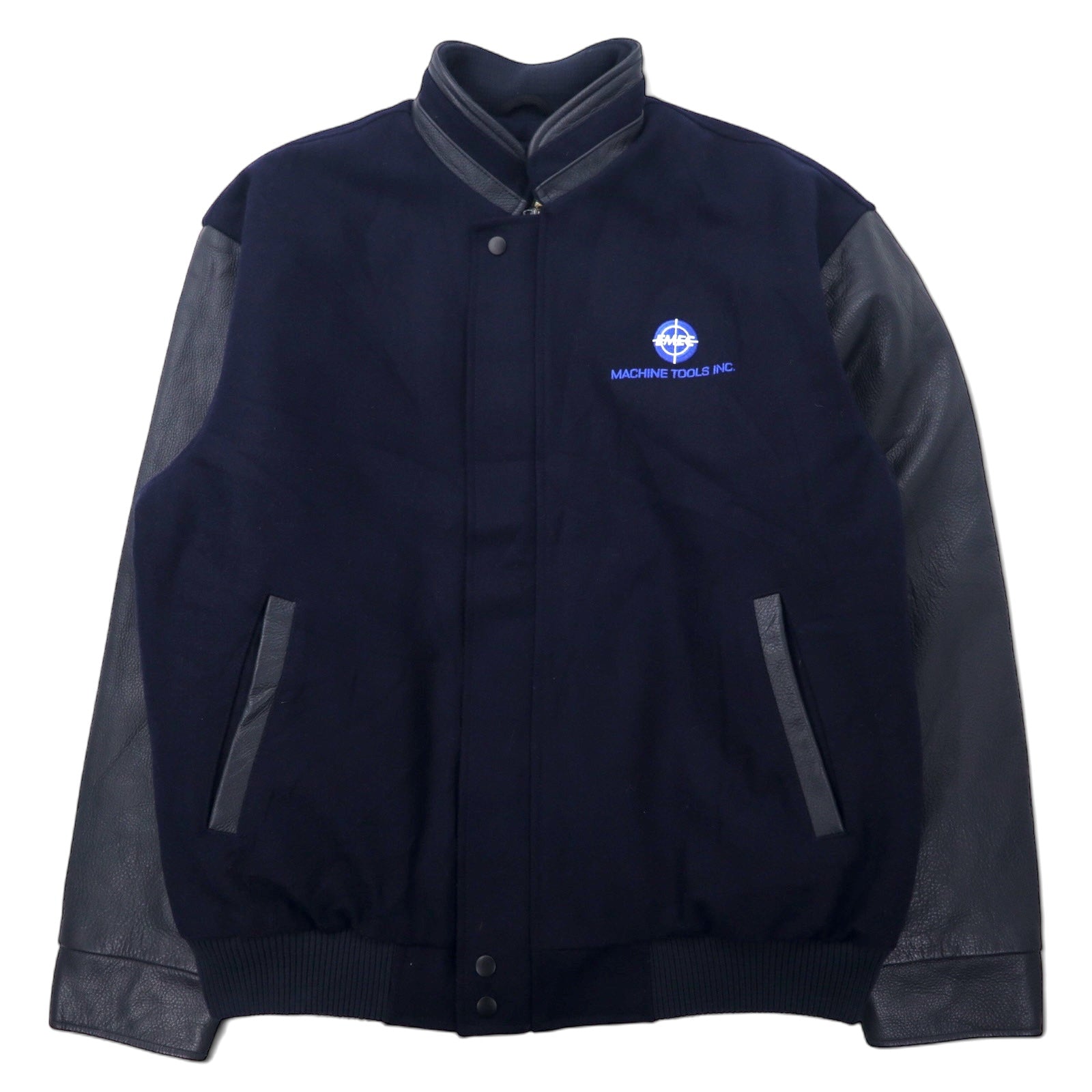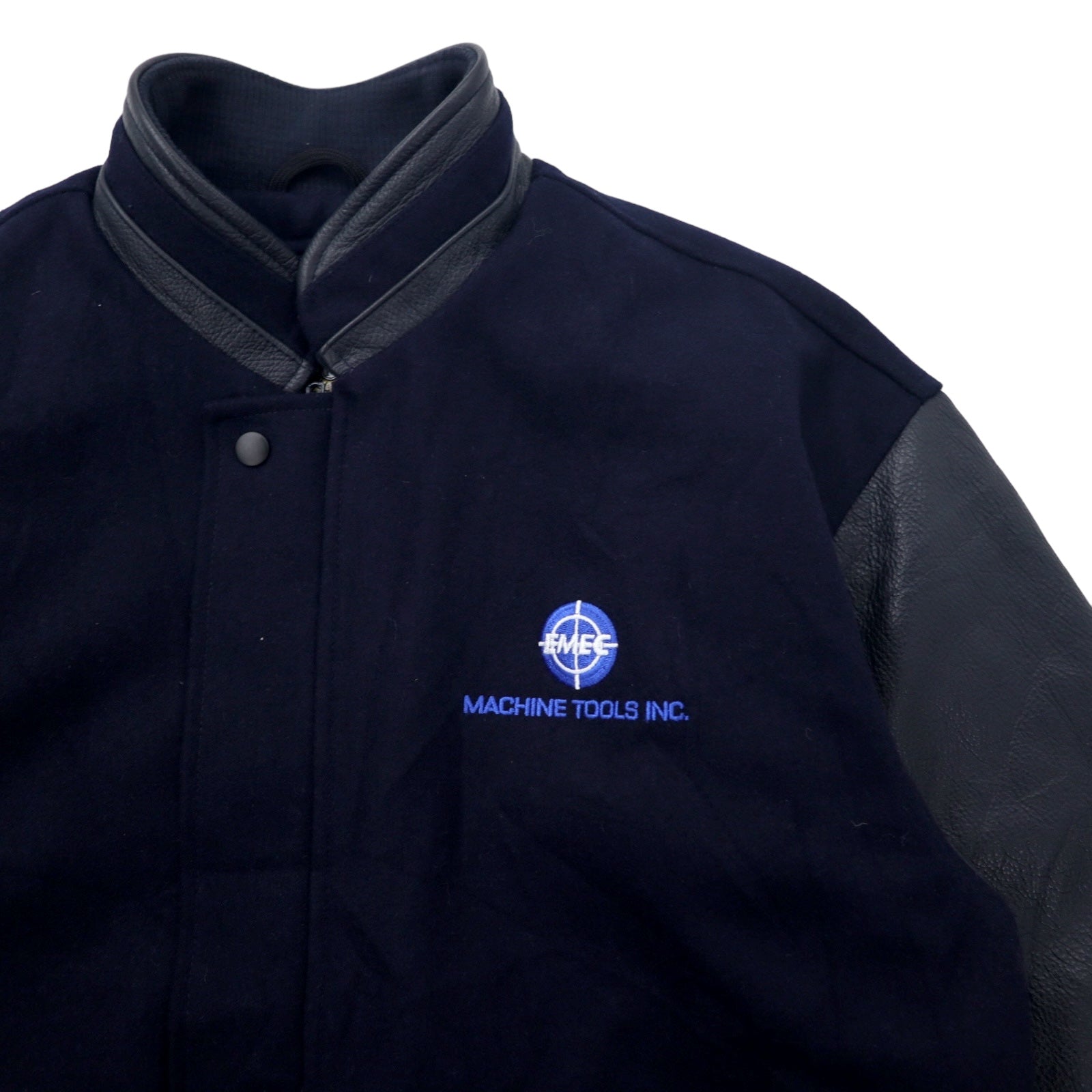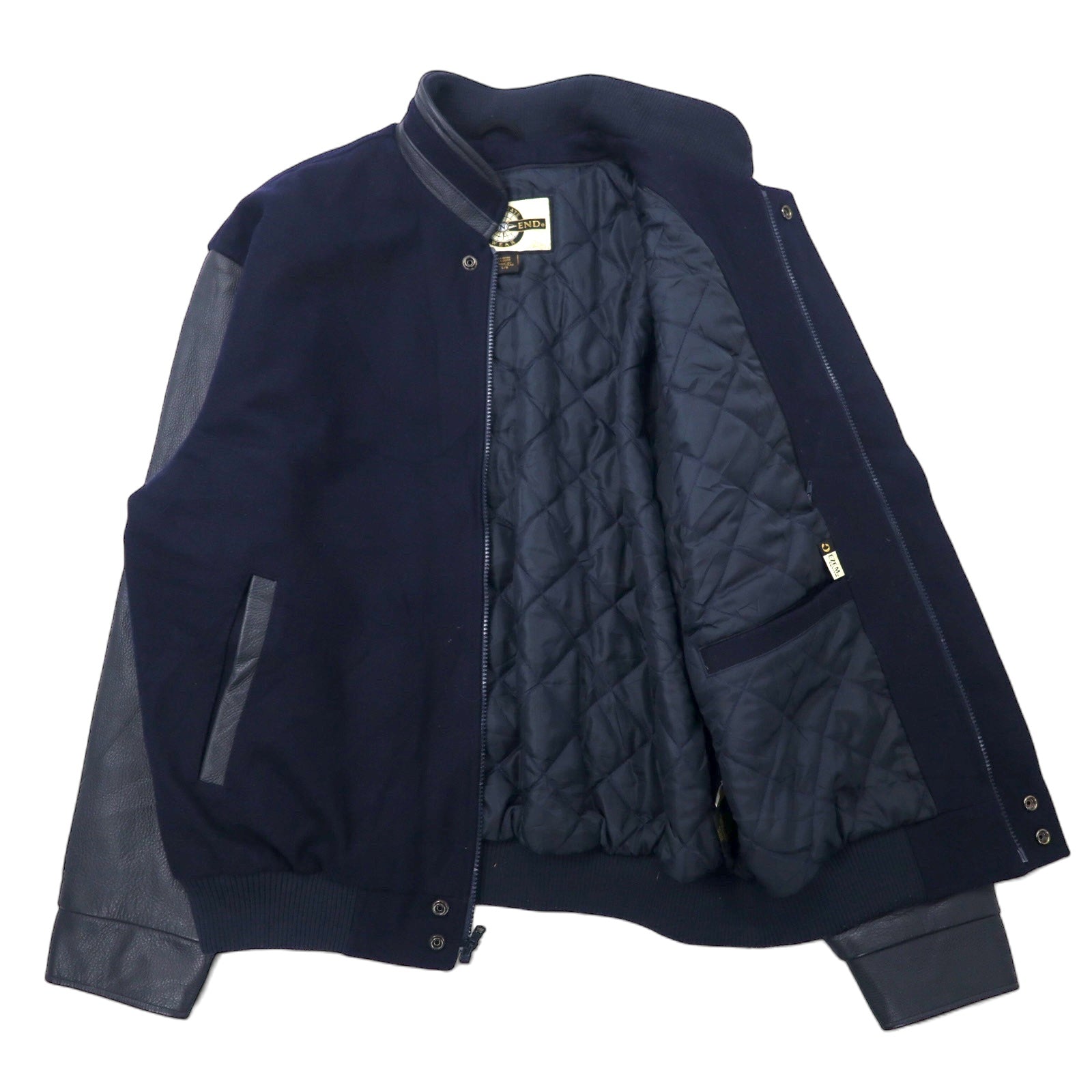 90年代 NORTH END 袖レザー スタジャン L ネイビー ウール キルティングライナー着脱式 中綿 EZEM SYSTEM