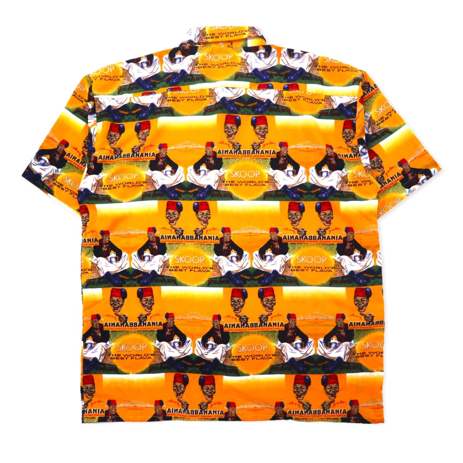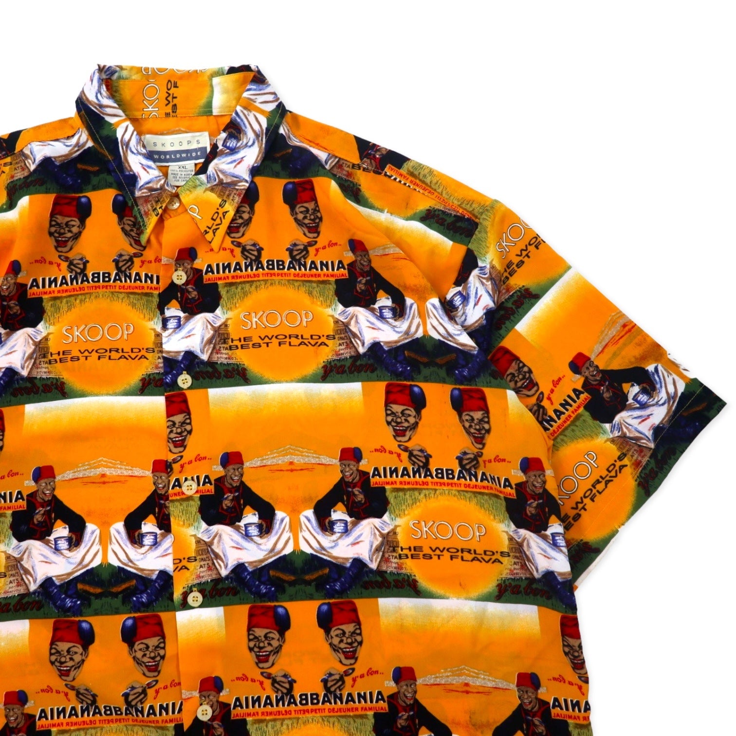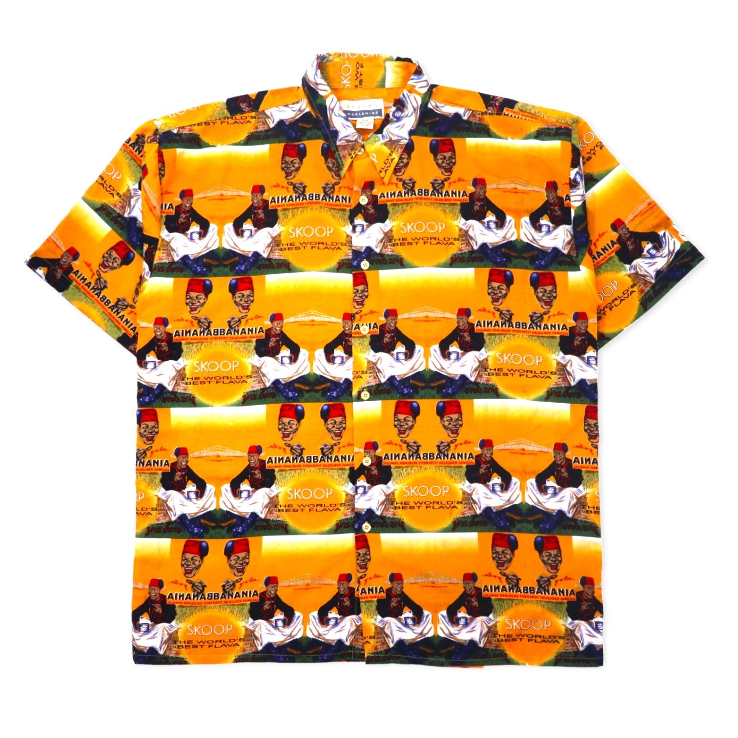 90年代 SKOOPS WORLDWIDE 総柄 グラフィック シャツ アロハシャツ XXL イエロー ポリエステル ビッグサイズ