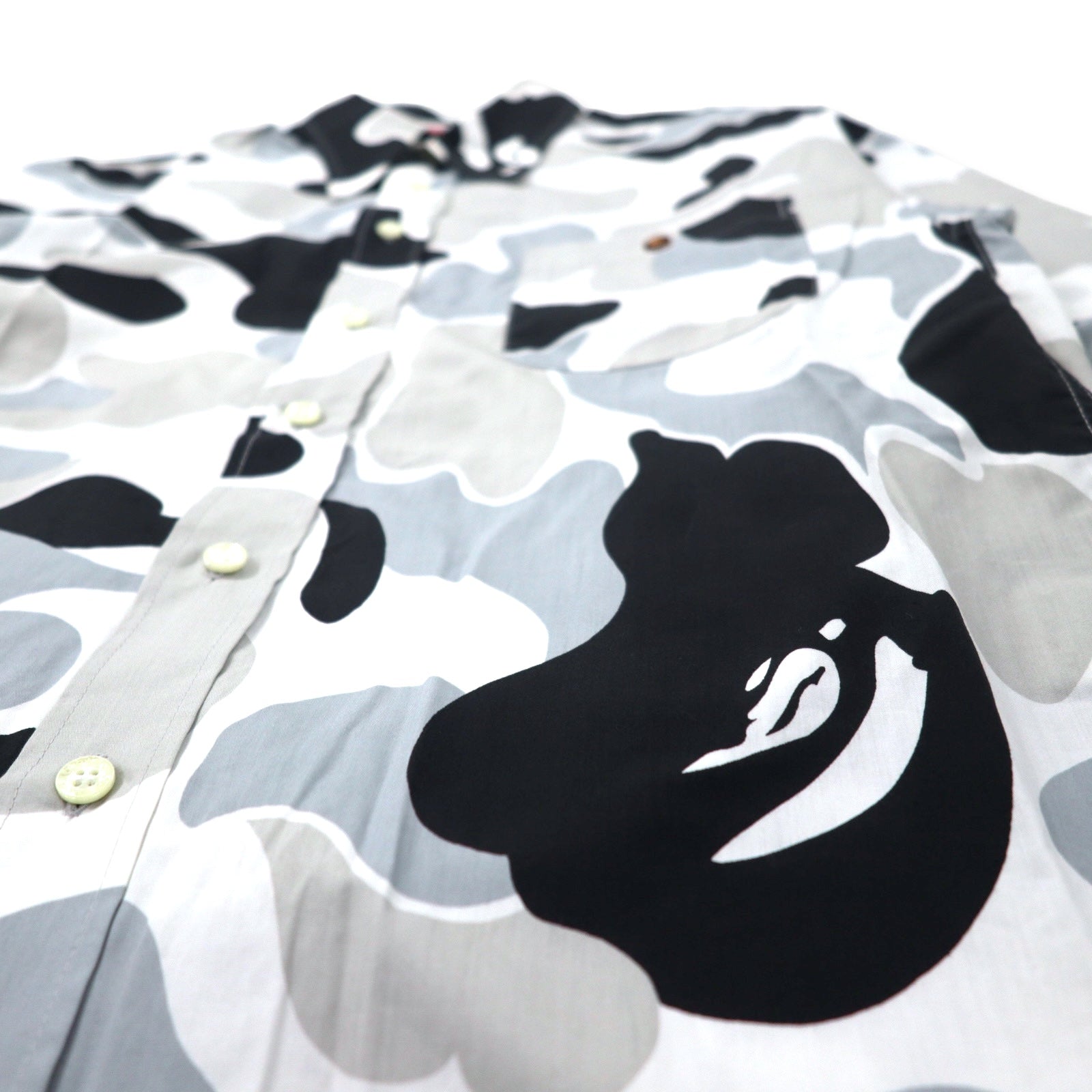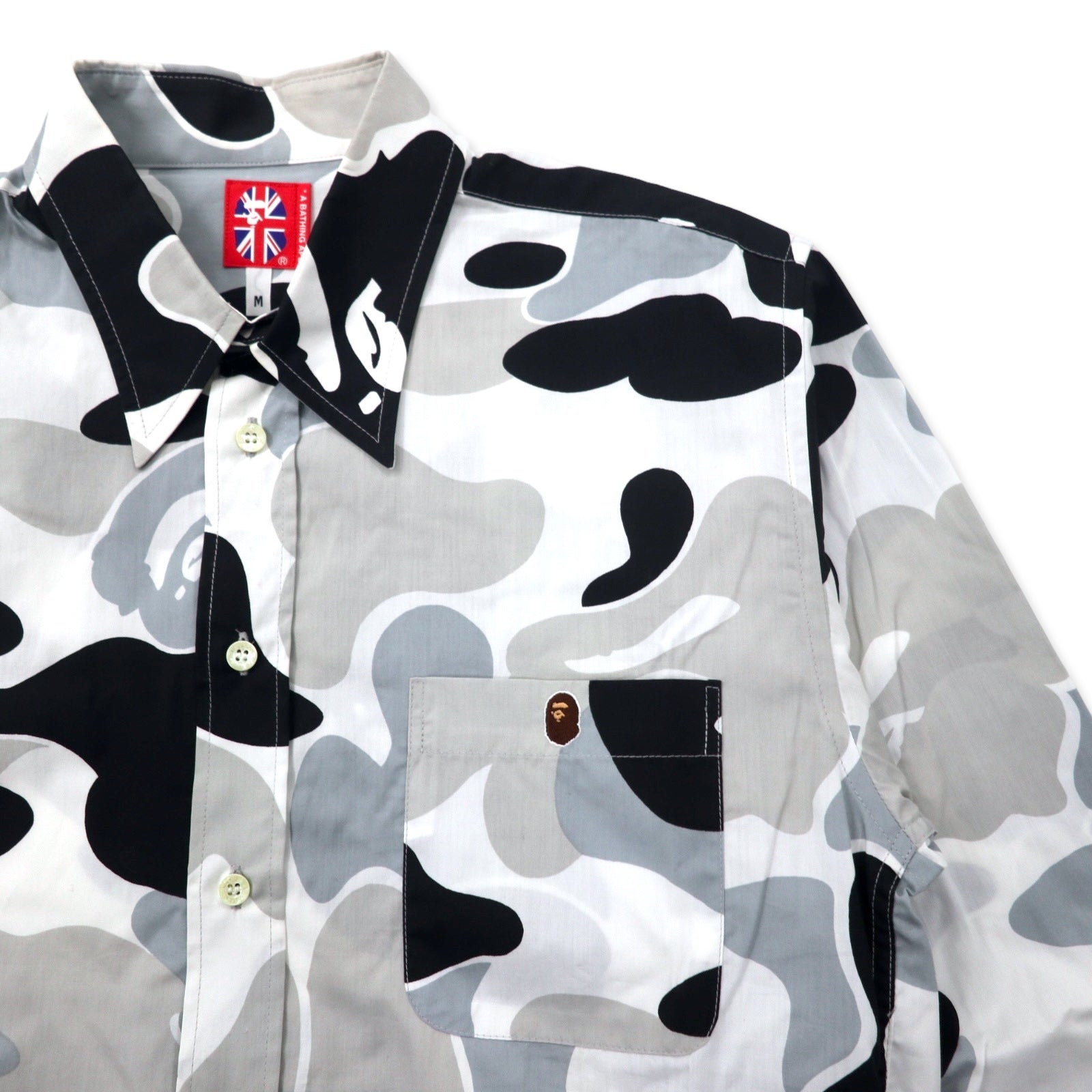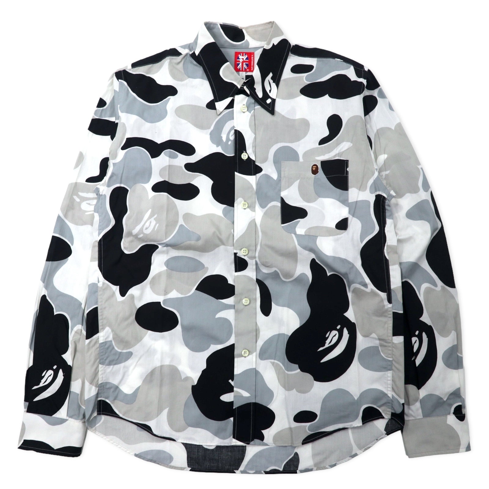 A BATHING APE カモフラ シャツ M ホワイト グレー 猿カモ コットン 日本製