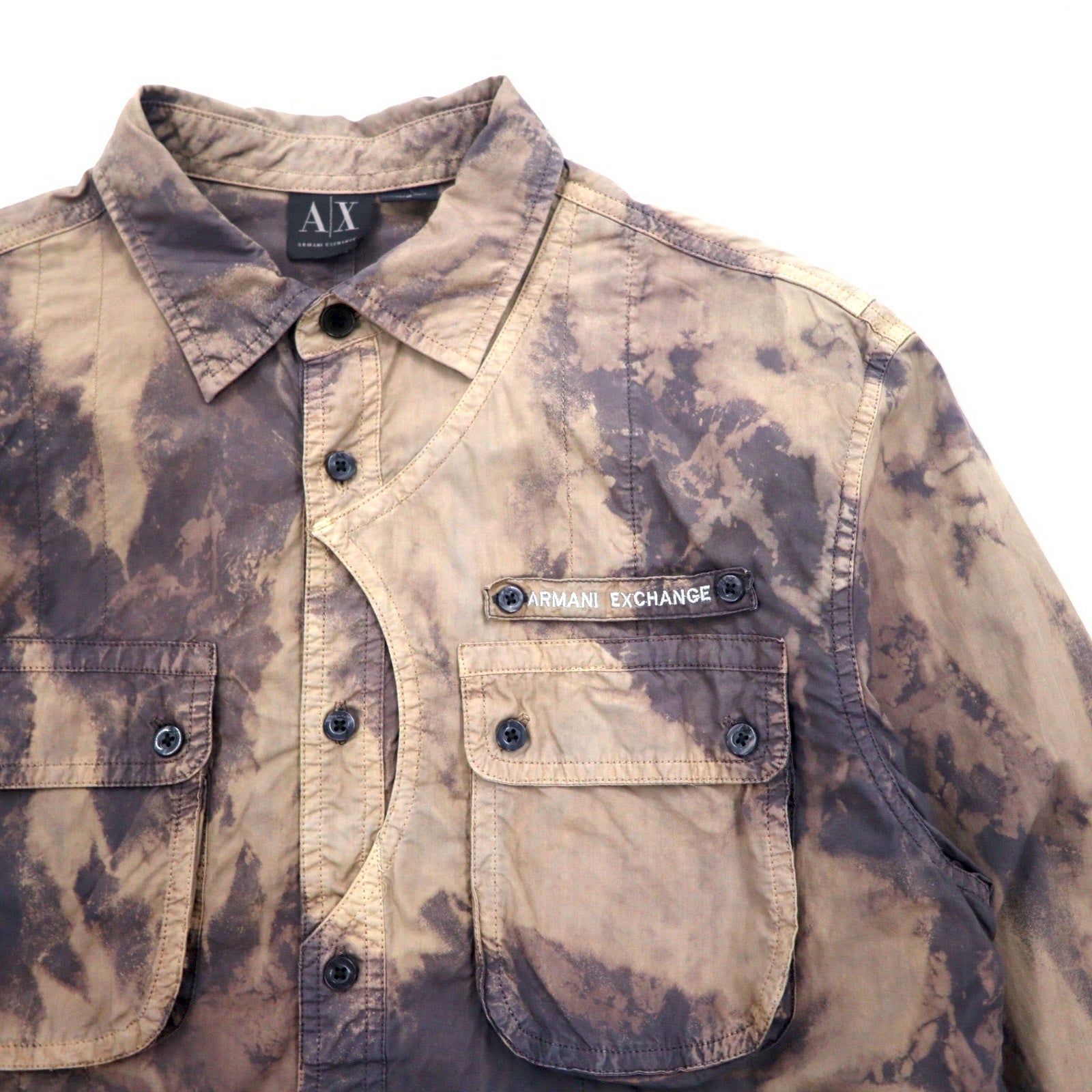 A|X ARMANI EXCHANGE タイダイ ブリーチ加工 ユーティリティシャツ M グレー ミリタリー フラップポケット