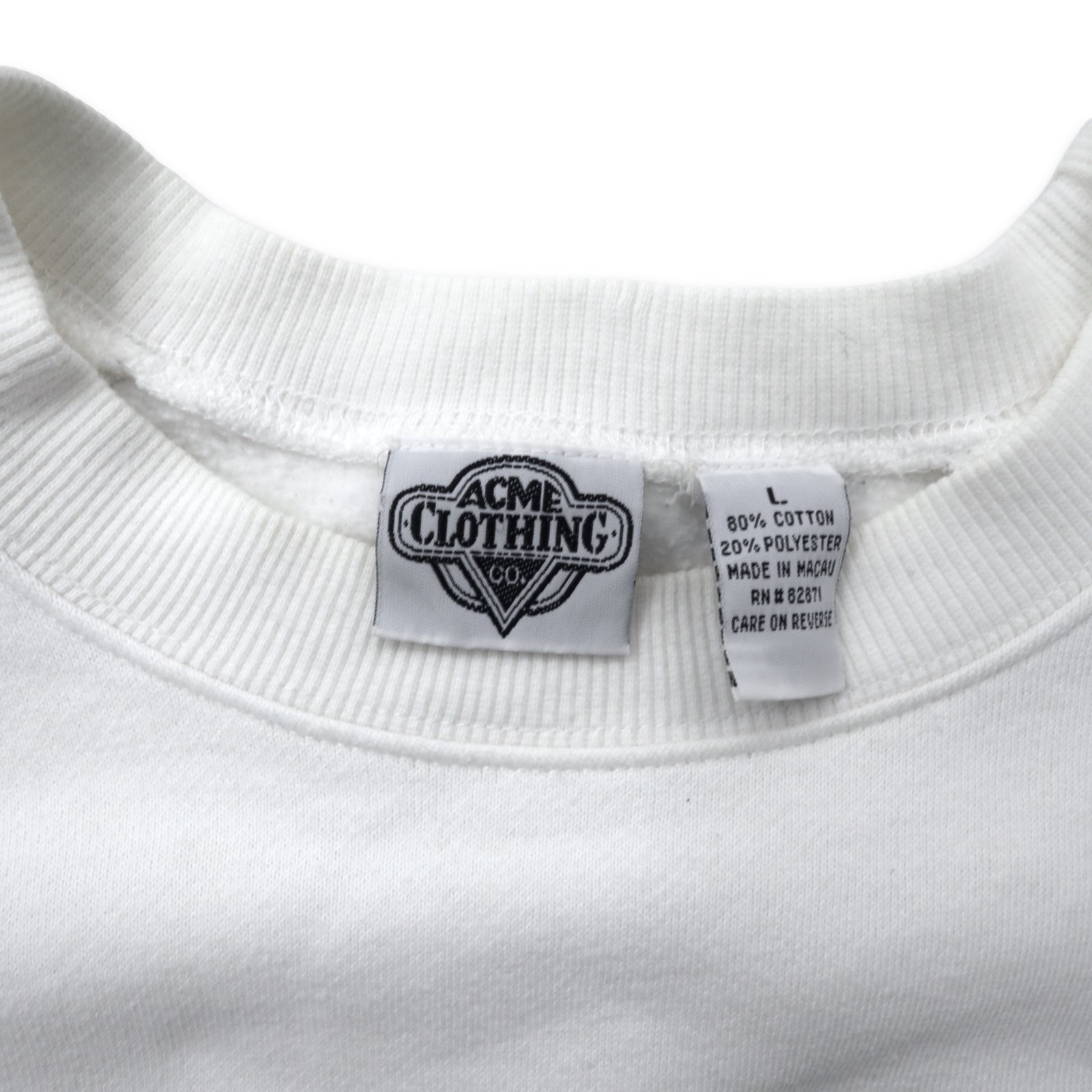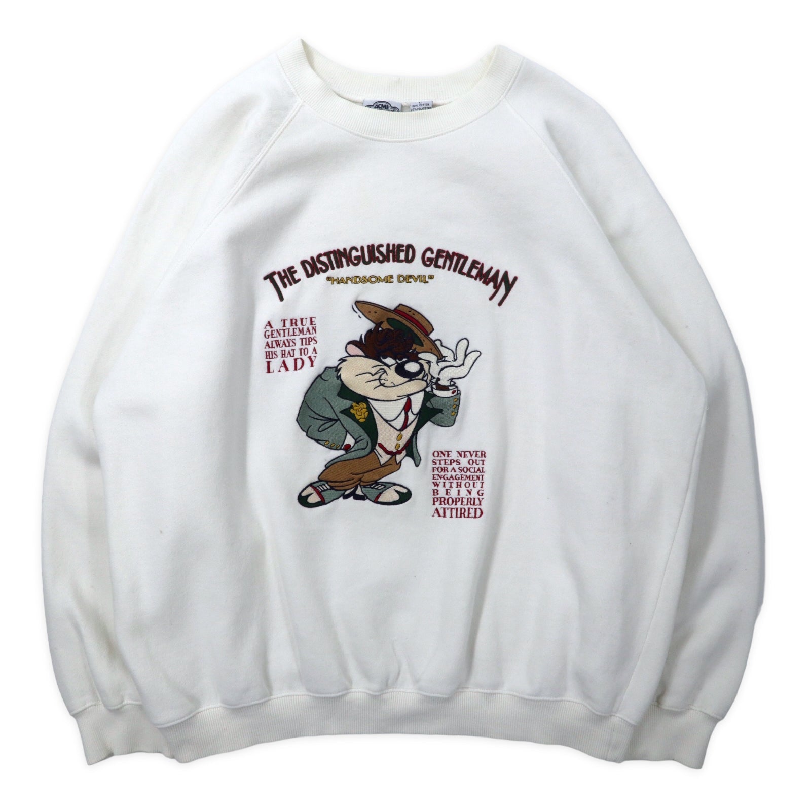 ACME CLOTHING × Warner Bros. 90年代 ルーニーチューンズ キャラクター 刺繍 スウェット L ホワイト コットン LOONEY TUNES