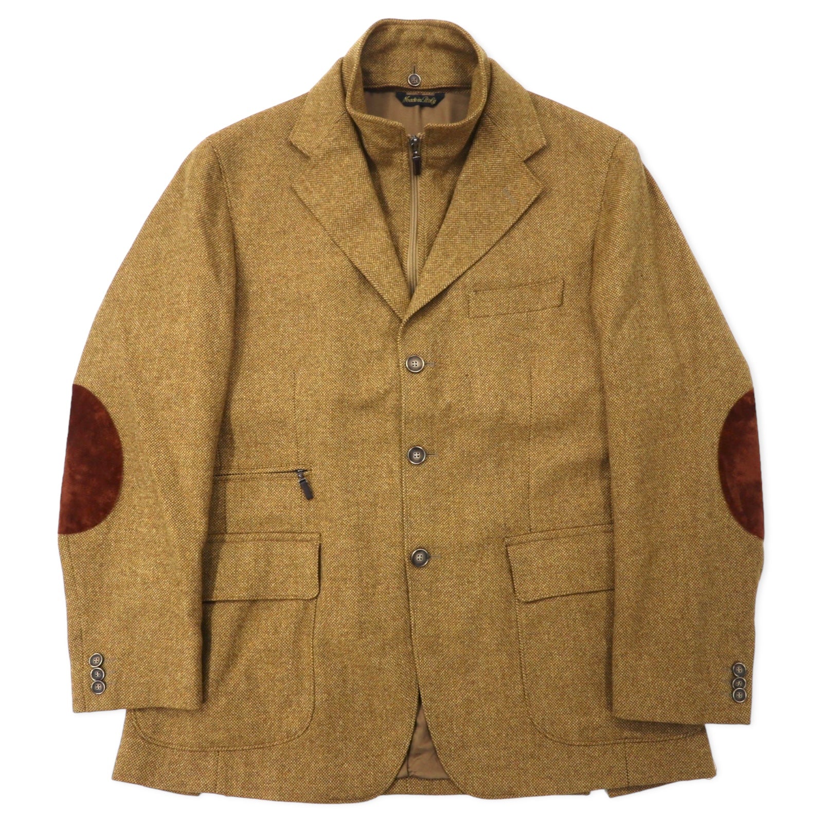 ACQUAVIVA イタリア製 レイヤードデザイン テーラードジャケット 50 ベージュ ウール シルク混 LANIFICIO PURO エルボーパッチ 襟着脱式 2WAY