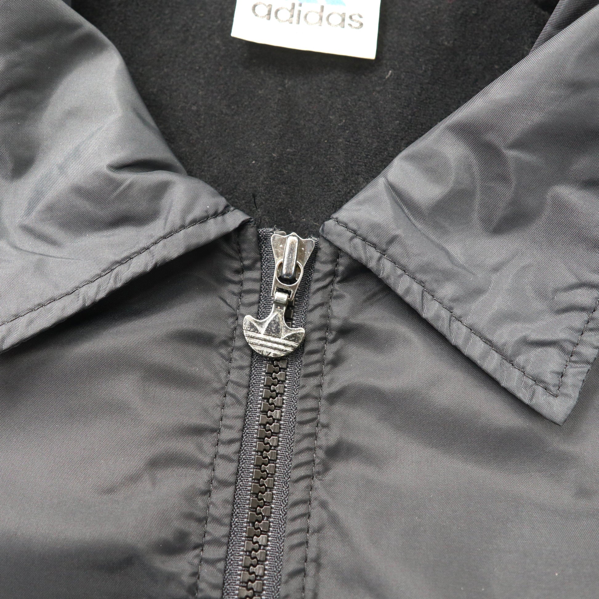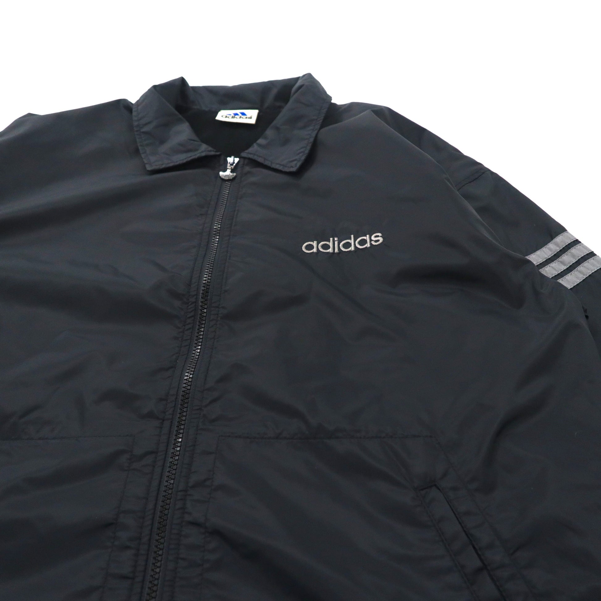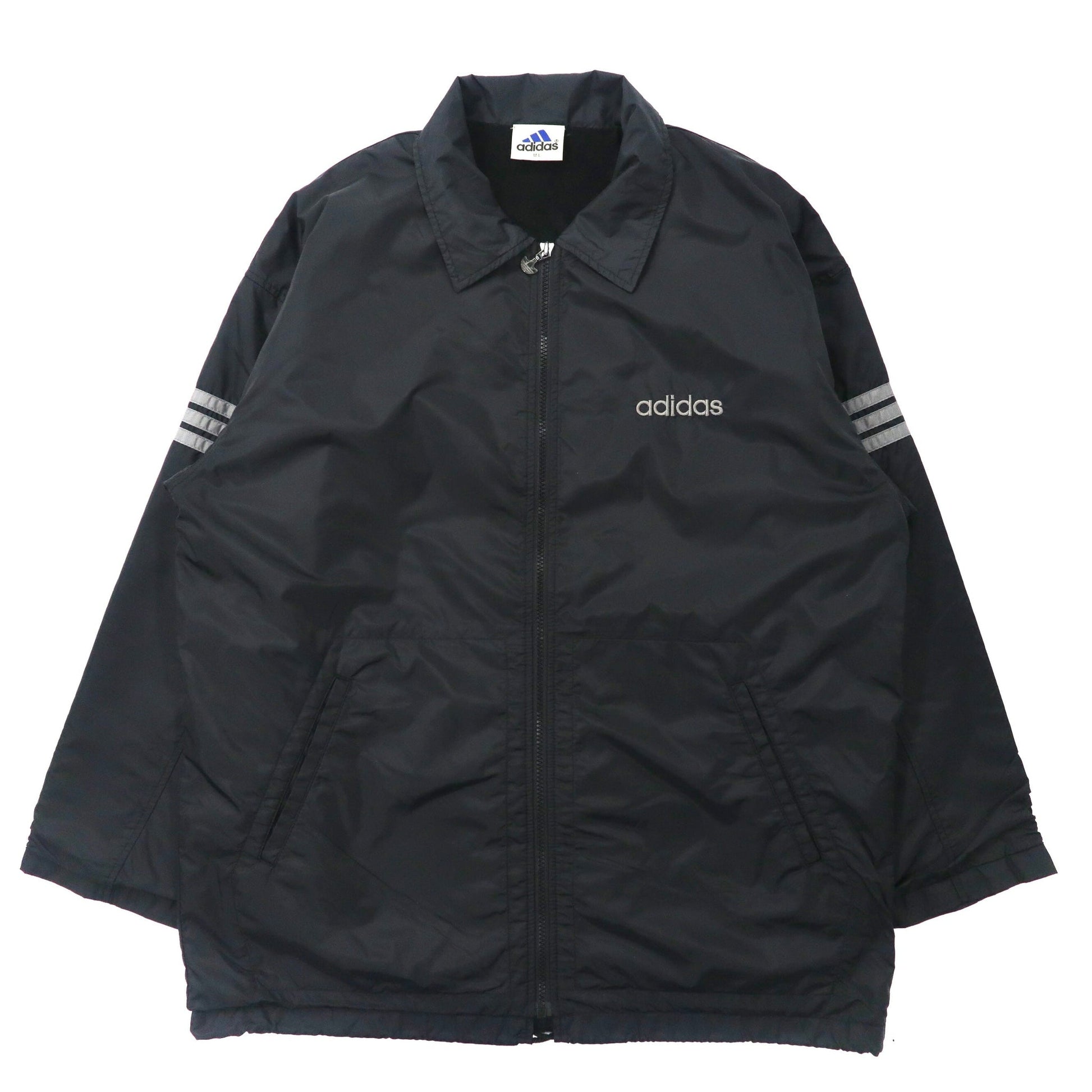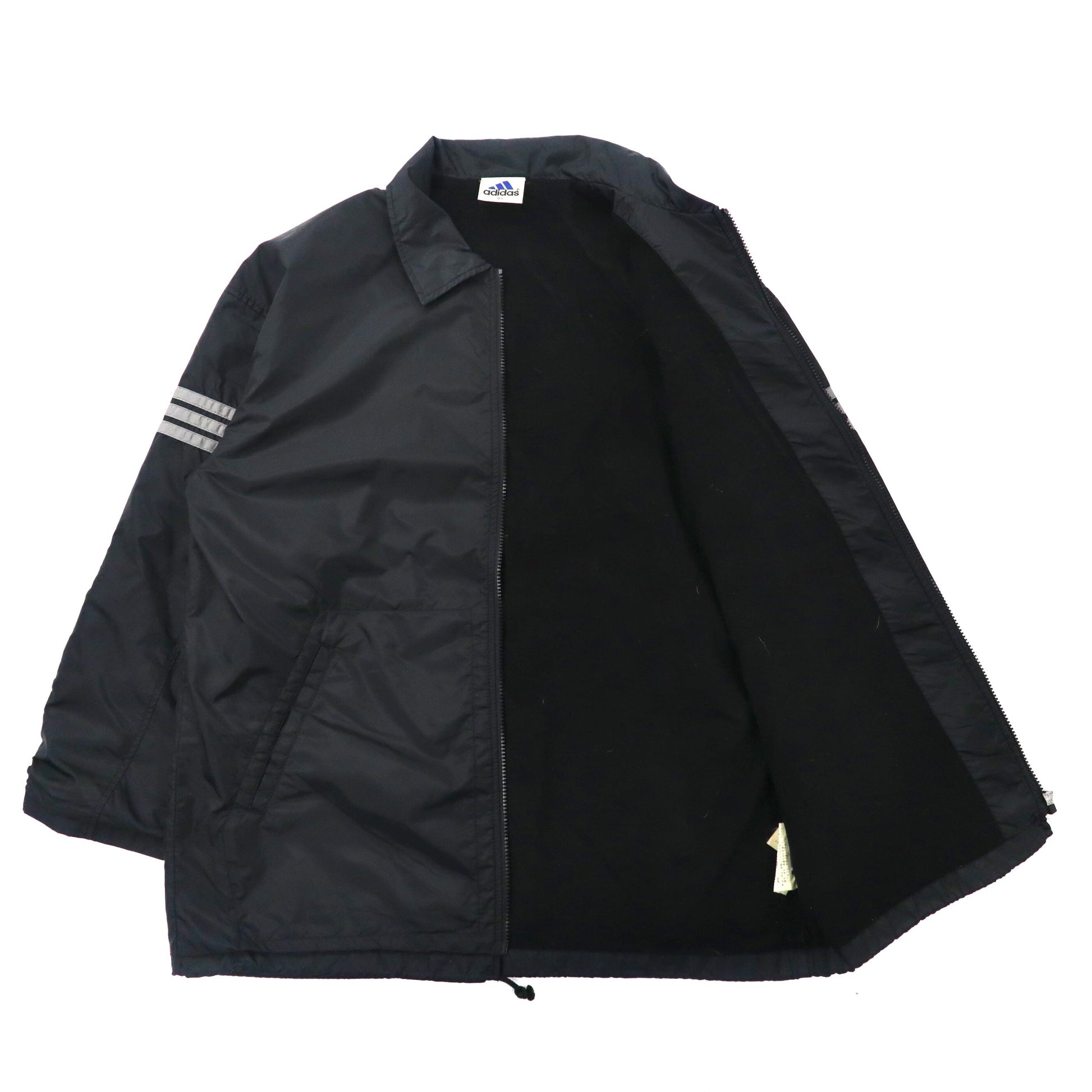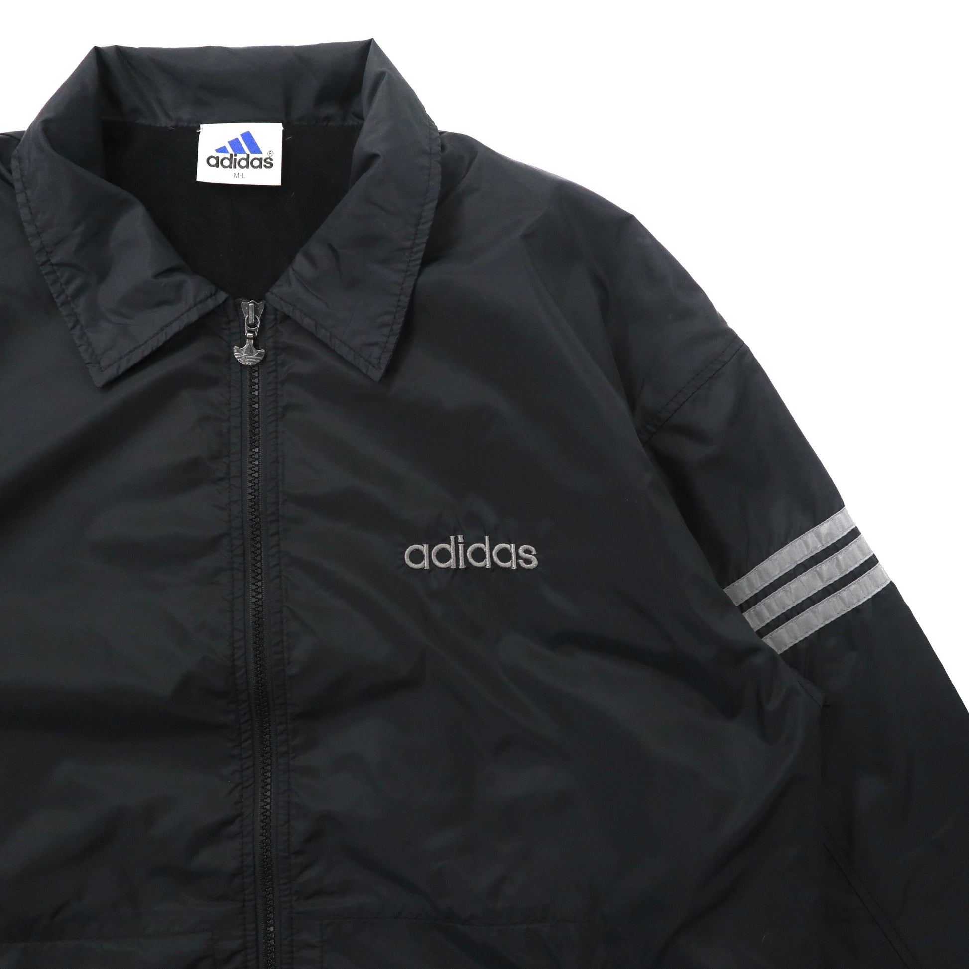 adidas ジップアップ コーチジャケット M-L ブラック ナイロン 裏地フリース ビッグサイズ デサント社 90年代
